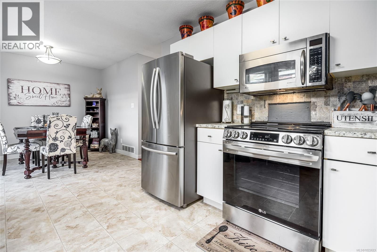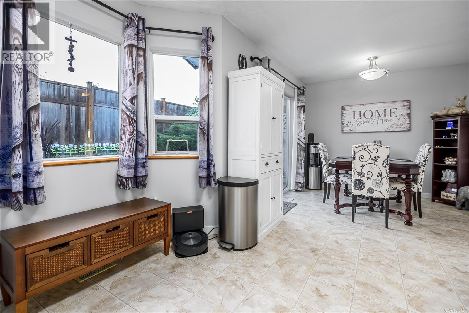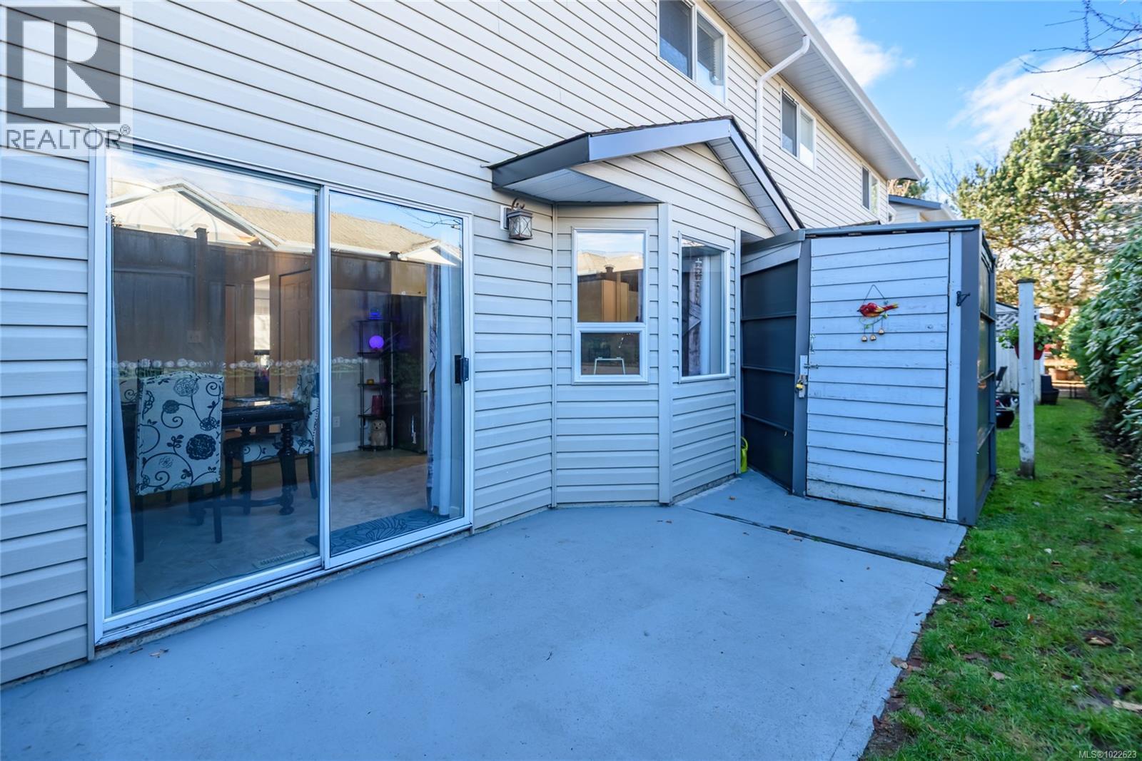 Centrally located in the Arbor Village complex, this 3 bedroom, 2 bathroom townhouse offers 1,459 sqft of well-planned living space in the heart of Comox. The main level features a spacious living and dining area with laminate flooring, a natural gas fireplace, and large windows that provide consistent natural light throughout the day. The renovated kitchen includes stainless steel appliances, generous counter space, and an oversized dining nook that functions well for everyday family use. A 2-piece bathroom and dedicated laundry area with additional storage complete the main floor. Sliding glass door off the kitchen provide access to a private, partial privacy perimeter fenced patio with a storage shed, offering practical outdoor space without extensive maintenance requirements. The upper level includes three comfortably sized bedrooms and a full 4-piece bathroom, with updated flooring, trim, and fresh paint completed in 2021. The home is heated by a natural gas forced-air furnace, includes a gas hot water tank, washer and dryer, and has had the Poly-B plumbing replaced. Two dedicated parking stalls are located directly in front of the unit, allowing easy access and day-to-day convenience. The family-oriented complex is within walking distance to schools, parks, trails, grocery stores, and local services. No dogs permitted but 2 cats are allowed. This property provides the size and functionality of many single-family homes while offering lower maintenance responsibilities and a more accessible price point, making it well suited for first-time buyers, investors, or those seeking efficient, centrally located living in Comox. (30256605)