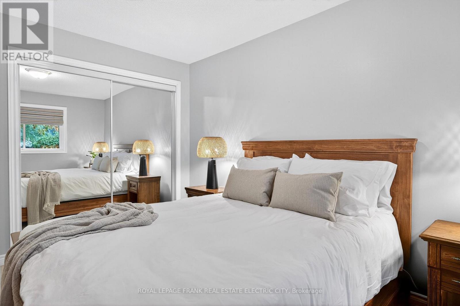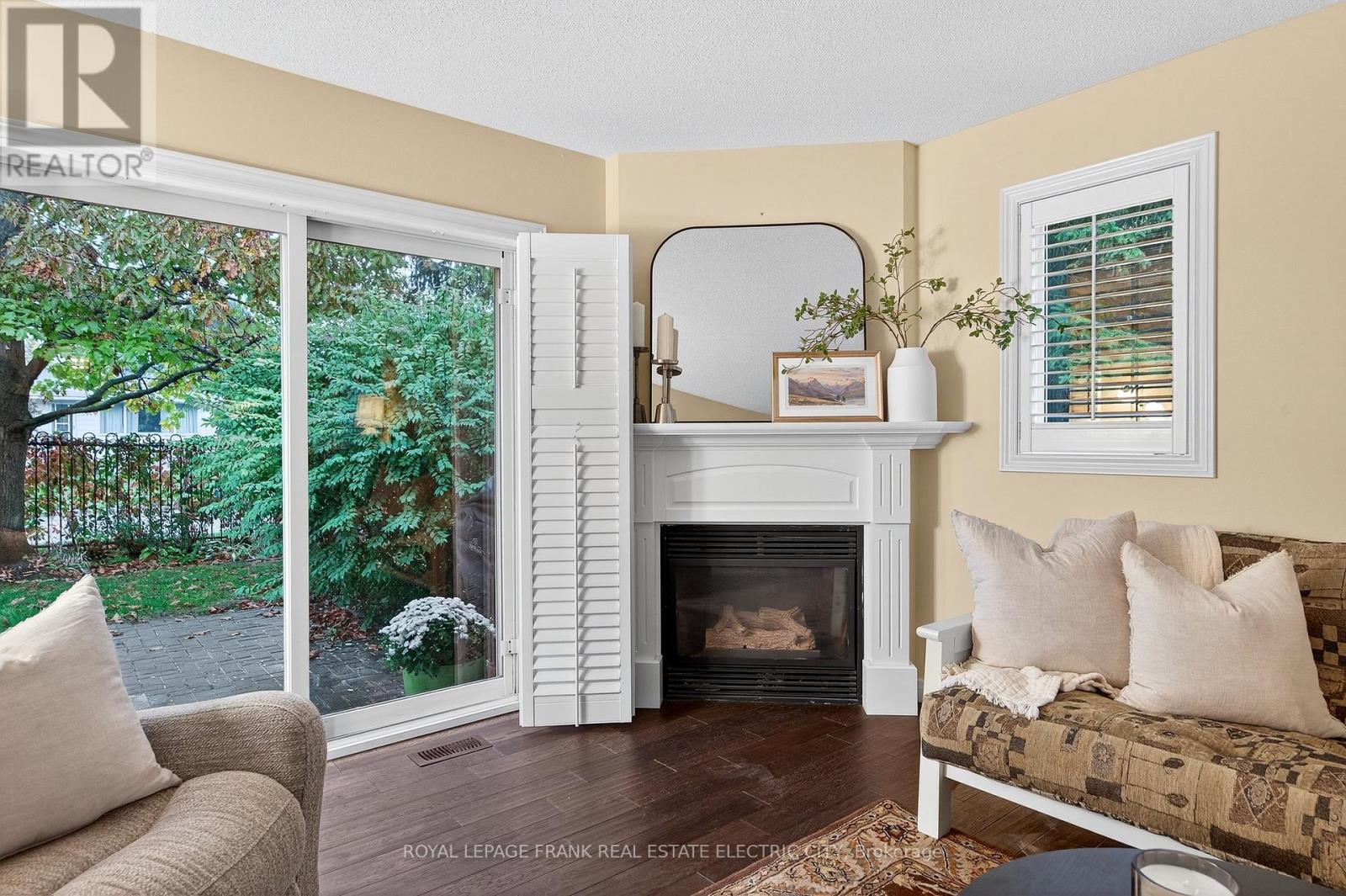 This beautifully updated end-unit condominium townhome offers stylish main-level living in a sought-after Lakefield development. The home features hand-scraped hardwood flooring throughout the main areas and updated low-pile carpet in the primary bedroom. The open-concept design provides a bright and welcoming flow, with a modern kitchen showcasing granite counters, updated appliances, and a peninsula adjoining the dining area and living room. A cozy gas fireplace anchors the living room, where patio doors lead to a private outdoor space perfect for relaxing or entertaining. The spacious primary bedroom includes direct access to an updated four-piece bathroom, while a second bedroom provides flexibility for guests or a home office. Thoughtful upgrades throughout include California shutters, custom blinds, and quality finishes that elevate the homes comfort and appeal. The convenience of a main floor laundry and utility room enhance the functionality of the space. The crawlspace offers an abundance is storage while the attached garage provides covered parking and potential space for tinkering. End units in this desirable development are rarely available. Enjoy an easy, maintenance-free lifestyle within walking distance to the river and all the amenities that charming Lakefield has to offer. (41914720)