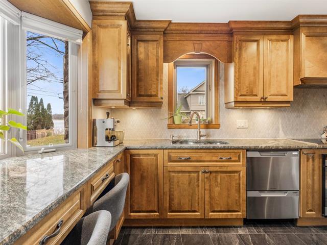 Charming two-storey home located in Pierrefonds with beautiful water views. Features a lovely kitchen with wood cabinetry, granite countertops, and heated floors. Bright dining area with calming water views. Two bedrooms upstairs and two additional bedrooms in the finished basement. Enjoy the balcony and peaceful surroundings. Ideally located near parks, waterfront areas, schools, and everyday amenities. A warm and inviting home offering comfort, location, and lifestyle. (49617407)