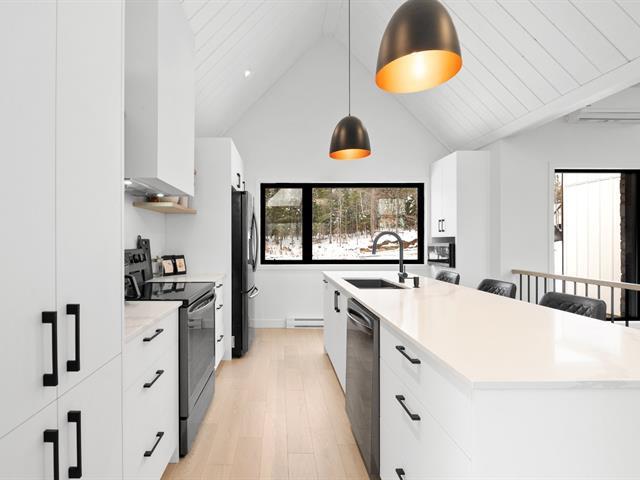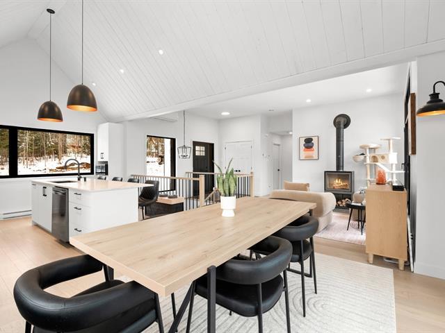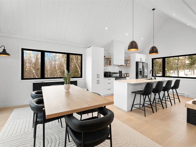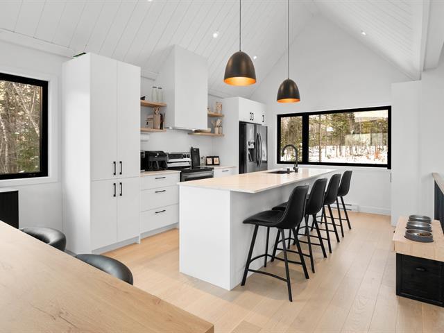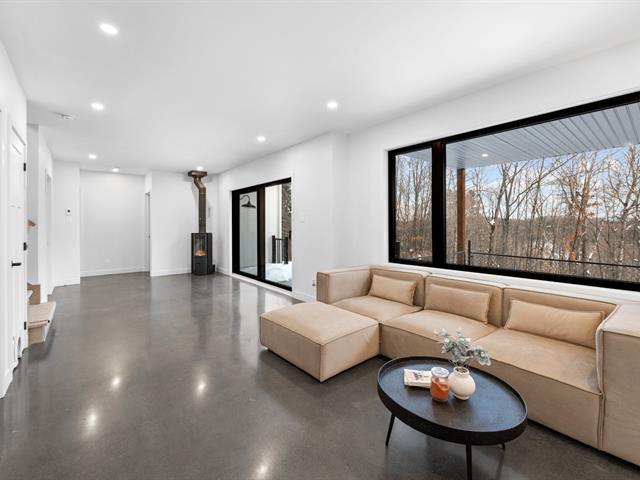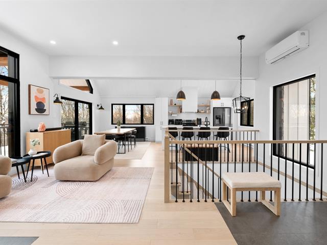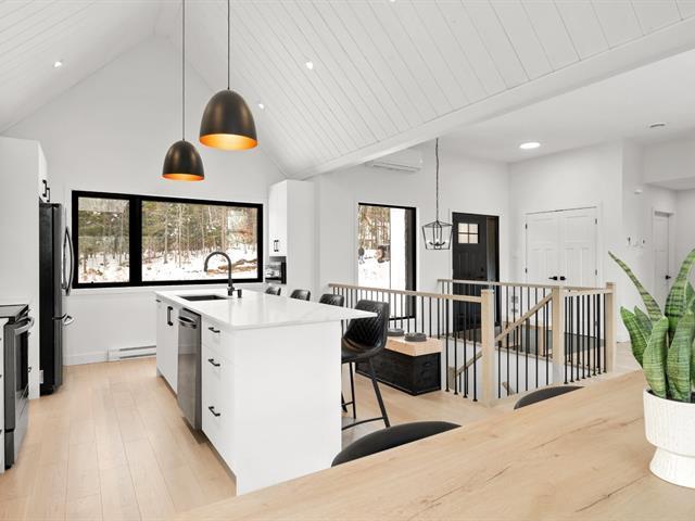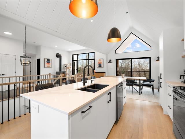 Magnifique propriété de construction 2023 au style farmhouse moderne. Les plafonds cathédrales dans la cuisine et la salle à manger, ornés de boiseries blanches, créent une impression spectaculaire et chaleureuse. De grandes fenêtres offrent une vue imprenable sur le boisé environnant. Aire ouverte avec immense îlot central et comptoirs de quartz, offrant luxe et fonctionnalité avec un rangement abondant. Le rez-de-jardin, entièrement en béton époxy, propose une vaste pièce polyvalente baignée de lumière naturelle. Une grande terrasse couverte prolonge la salle à manger vers l'extérieur. Idéale pour couple ou famille! *Coup de Coeur assuré* (56228011)