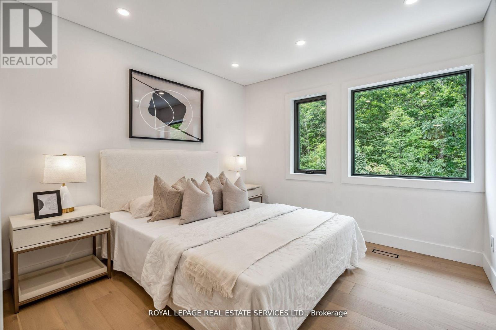 Welcome to a rare offering in one of Joshua Creek's most sought-after enclaves-an elegant contemporary residence tucked on a private, wooded lot that exudes both serenity and sophistication. Designed for those who appreciate refined living without compromise, this exceptional home blends modern comfort with timeless style. Featuring five spacious bedrooms plus a versatile main-floor office or guest suite, and six beautifully appointed bathrooms, every inch of this home is crafted with care. Soaring cathedral ceilings and expansive windows fill the space with natural light, while the open-concept layout creates an effortless flow ideal for family life and entertaining alike. The thoughtfully curated interior showcases quality craftsmanship, refined finishes, and a calm, minimalist aesthetic that feels both warm and elevated. Outside, a landscaped paradise awaits-complete with an interlocking stone walkway, charming pergola, and lush gardens that frame a tranquil backyard retreat backing onto a scenic walking trail. Perfectly positioned on a quiet street yet moments from top-rated schools, boutique shops, fine dining, and major highways including the 403 and QEW, this home offers the ideal blend of privacy and accessibility. Meticulously maintained and move-in ready, this Joshua Creek masterpiece invites you to experience modern luxury at its finest-a home where every detail speaks of comfort, elegance, and enduring style. (41915651)