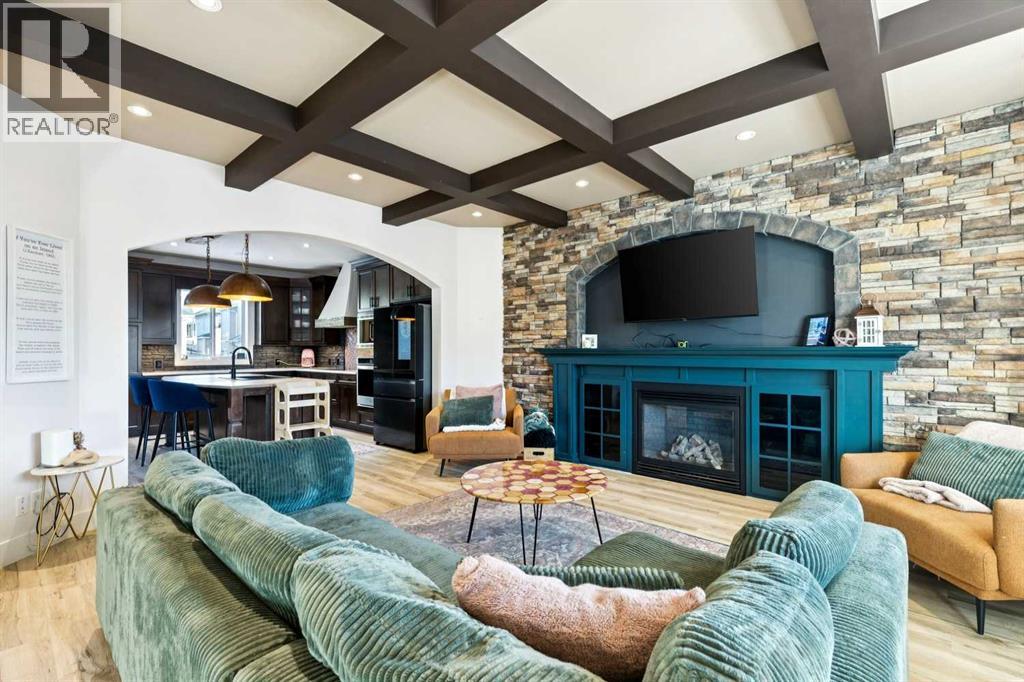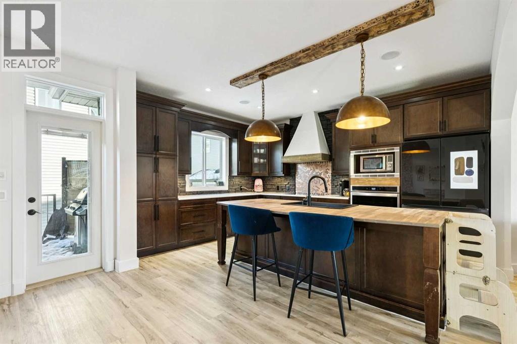 ***$24K PRICE IMPROVEMENT!!***OPEN HOUSE SUNDAY JANUARY 18TH 2PM-4PM*** Welcome to this exceptional two-storey detached home in the highly sought-after Canals of Airdrie, offering over 2,100 sq ft of living space plus a fully self-contained carriage house(one bedroom/one bathroom/717 sq ft) above a triple car garage—perfect for multi-generational living, guests, or added flexibility.The main home features 4 bedrooms and 3 bathrooms, including a spacious main-level bedroom ideal for a home office or guest room. The entire main level is carpet-free, finished with luxury vinyl plank flooring throughout most of the home for a clean, modern feel.At the heart of the home is a gorgeous chef’s kitchen, complete with a large butcher block island, built-in oven, decorative hood fan, and stainless steel appliances—a dream setup for cooking and entertaining. The living room impresses with its beam ceiling and striking floor-to-ceiling rock fireplace wall, creating a warm and inviting space.Upstairs, retreat to the large primary bedroom (14’ x 16’) featuring a luxurious 5-piece ensuite with double sinks, a walk-in shower with bench, jacuzzi tub, and a spacious walk-in closet. The secondary bedrooms are all generously sized, making this home ideal for families.The carriage house offers its own full kitchen, living room, bedroom, and bathroom, providing incredible versatility—think grandparents, adult children, or long-term guests.Recent updates include new LVP flooring, new fridge, dishwasher, washer & dryer, new toilet in the ensuite, and a new hot water tank in the main house.Located directly across the street from the Canals, you’ll love the scenic pathways and water views, with Ralph McCall School (K–4) and C.W. Perry Middle School (5–8) nearby. Enjoy the convenience of being just a short drive to Tim Hortons, Sobeys, and other everyday amenities. (31512506)