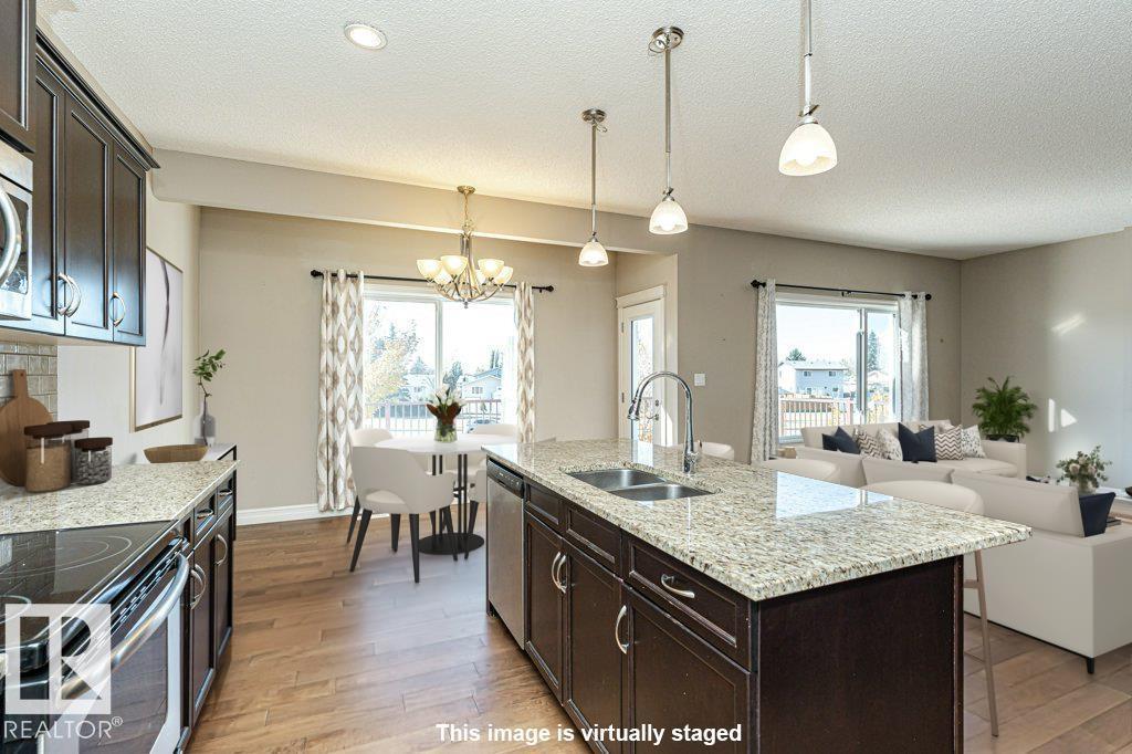 WALK OUT BASEMENT! PIE LOT! SECOND KITCHEN! Welcome to this Landmark Built 2 Storey home located in the Laurel Neighborhood featuring 3+1 Bedrooms, 3.5 Bathrooms, and a Double Attached Garage with UNIQUE SPICE KITCHEN! The main floor showcases an Open Concept design with Chefs Kitchen boasting Granite Countertops, Stainless Steel Appliances, Spacious Island, and Walk Through Pantry. A cozy living room with Gas Fireplace, Main Floor Laundry, dining area, 2 piece bath, and access to the Upper Deck complete the main floor. The upper level features a Bonus Room, 4 piece bath, and 3 bedrooms, including a massive Primary Suite offering Walk In Closet, and 4 piece Ensuite with Soaker Tub. The Fully Finished basement includes a Recreation Room, SECOND KITCHEN, bedroom, 3 piece bath, Plus access to the Private Parklike backyard featuring patio, additional deck space, and garden beds. This exceptional property is ideally located near schools, parks, public transportation and more and is Move In Ready! (33704221)