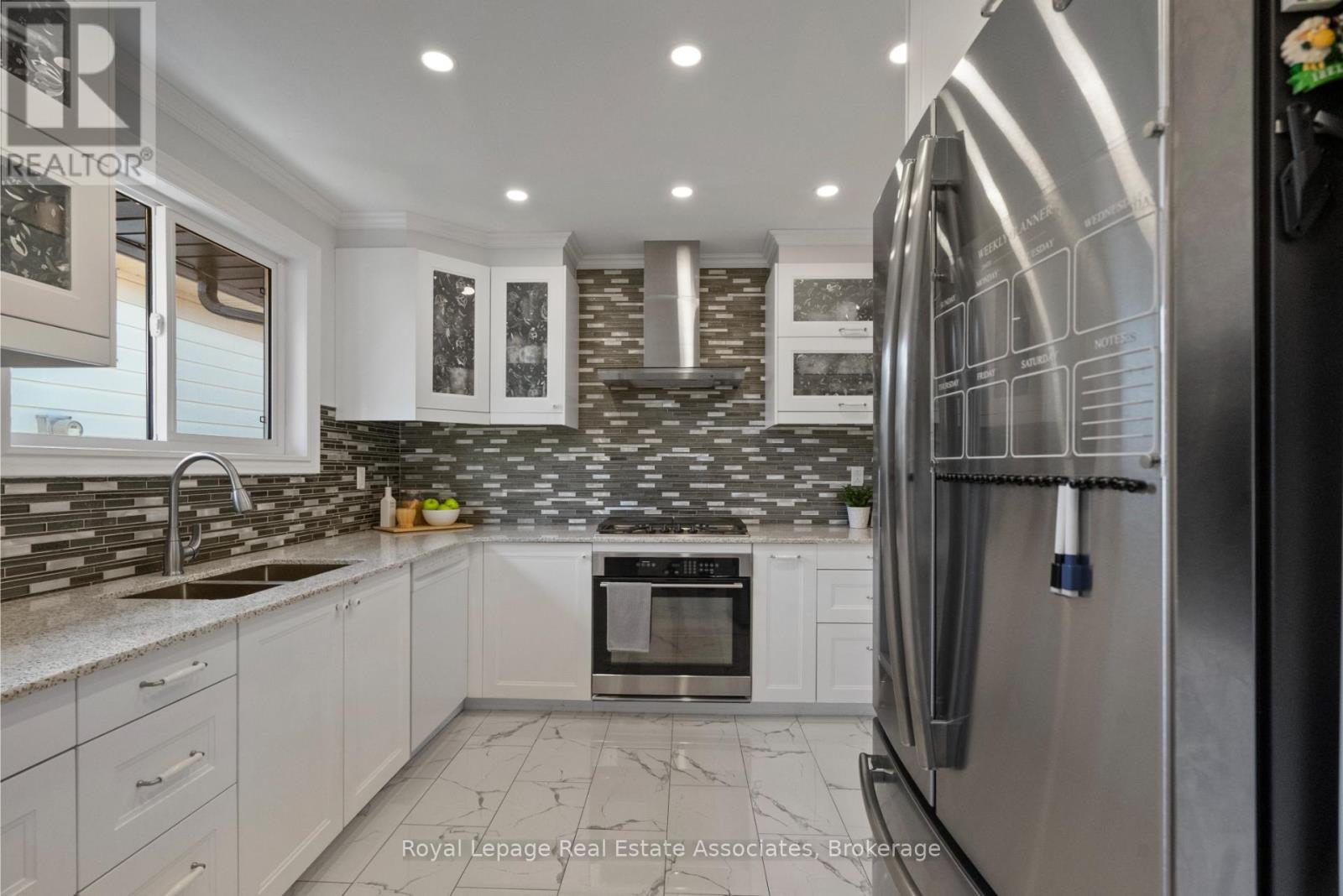 Welcome to this beautifully renovated backsplit in the highly desirable Berrisfield community. This home impresses with modern architectural arches, a gourmet kitchen featuring a custom backsplash, sleek countertops, and stainless steel appliances. Enjoy pot lights throughout, large windows that fill the home with natural light, and a bright open layout perfect for family living. Offering 3 spacious bedrooms plus an additional bedroom and bath on the lower level with a cozy family room.The home also features a versatile gym space that can easily be converted into a second bedroom, home office, or workshop conveniently located off the garage ideal for hobbyists or those seeking extra functional space.Fully equipped with smart Wi-Fi controls, this house offers ultimate convenience including Wi-Fi-enabled switches, garage door, and entrance access all easily managed right from your cellphone. (41916458)