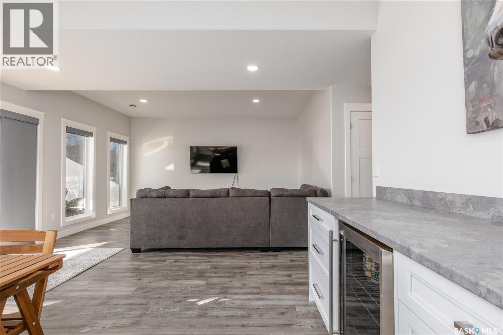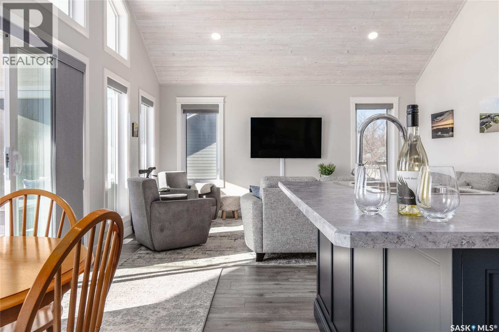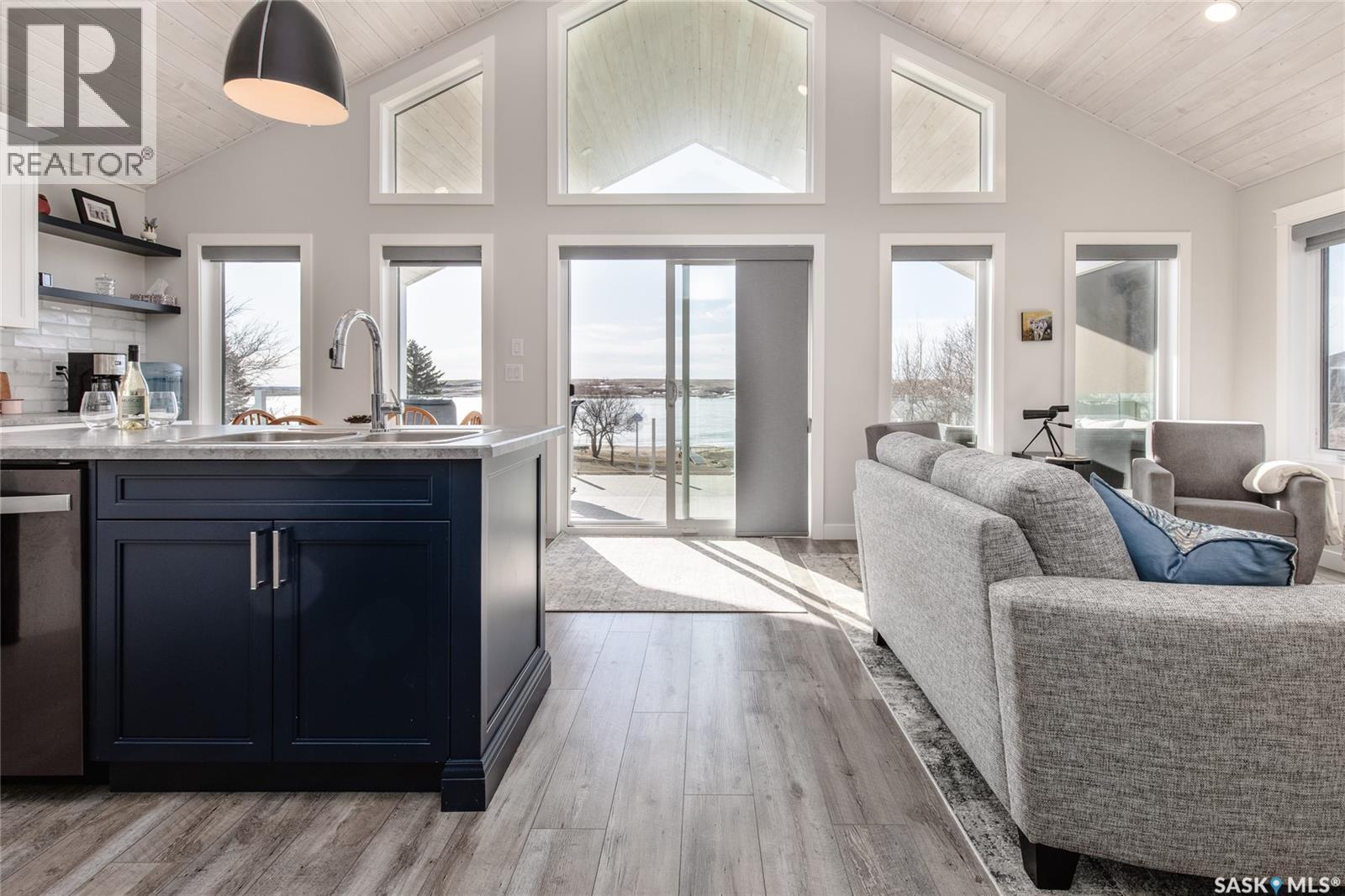 Welcome to your dream lakefront escape at Lake Diefenbaker! Step inside from the oversized double car garage—with convenient drive-through doors—and prepare to be wowed by the stunning panoramic views of the lake. The heart of the home features an A-frame style living room and kitchen, soaring with natural light thanks to the wall of windows framing the water beyond. The open-concept design makes it easy to entertain, relax, and take in the scenery from every angle. Slide open the doors to your covered deck and enjoy your morning coffee with a front-row seat to nature. This main level includes two spacious bedrooms and a full bathroom, offering comfort and function. Downstairs, you'll find two additional bedrooms, another full bathroom, laundry in the utility room, and a large family room with a games area and walk-out access to the backyard. Whether you're searching for a peaceful year-round residence or a lakefront getaway, this home delivers beauty, comfort, and that unbeatable Lake Diefenbaker lifestyle. (29261465)