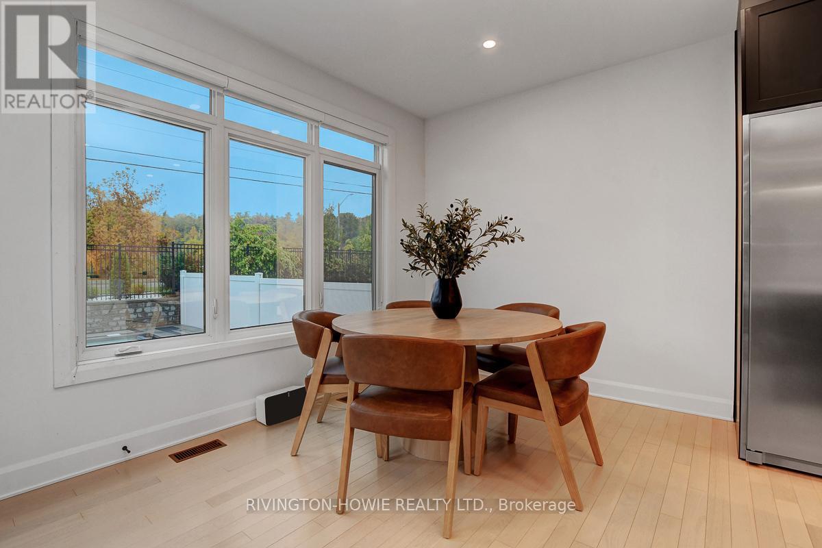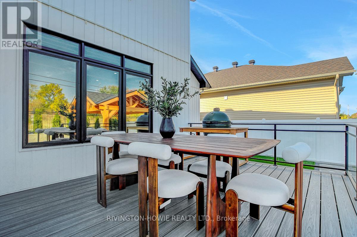 Welcome to this exceptional 2021-built two-story home, ideally located in the desirable Village of Carp. Combining timeless curb appeal with vertical siding and upscale design, this residence offers a perfect balance of elegance and function. The main floor features an inviting open-concept layout anchored by a stunning kitchen with a waterfall granite island, built-in appliances, side-by-side fridge and freezer, pantry, and thoughtful finishes. Flowing seamlessly into the great room and bright breakfast nook, this space is perfect for family living and entertaining. The breakfast nook provides direct access to the resort-style backyard, complete with an inground swimming pool, multi-level deck, interlock patio, pergola, astro turf, and full exterior irrigation and night lighting an outdoor oasis designed for both relaxation and gatherings. A dedicated main floor office offers convenience for work or study, while main floor laundry adds everyday practicality.Upstairs, you'll find three spacious bedrooms including the primary retreat, highlighted by a walk-in closet and a luxurious 5-piece en suite with spa-like finishes. The fully finished lower level expands the living space with a stylish family room featuring a modern electric fireplace, floating shelves, custom storage, and a versatile fourth bedroom for guests or family.Throughout the home, you'll appreciate the thoughtful details warm hardwood flooring, upscale tile, designer lighting, and high-end craftsmanship that distinguish this property. A rare feature in the Village, the oversized 3-car garage provides ample parking and storage.This is more than a home; its a lifestyle where modern design meets comfort, and where every detail has been carefully considered. Don't miss the opportunity to own a signature Rivington Homes build in one of Ottawas most sought-after communities. (41916622)