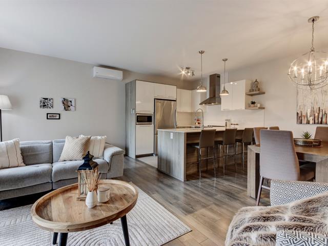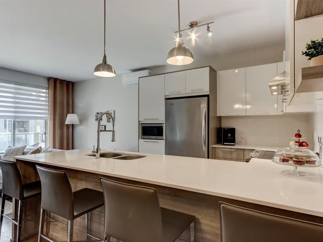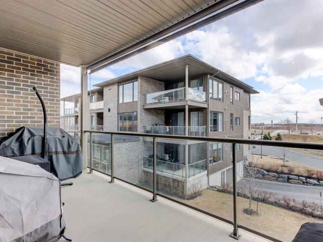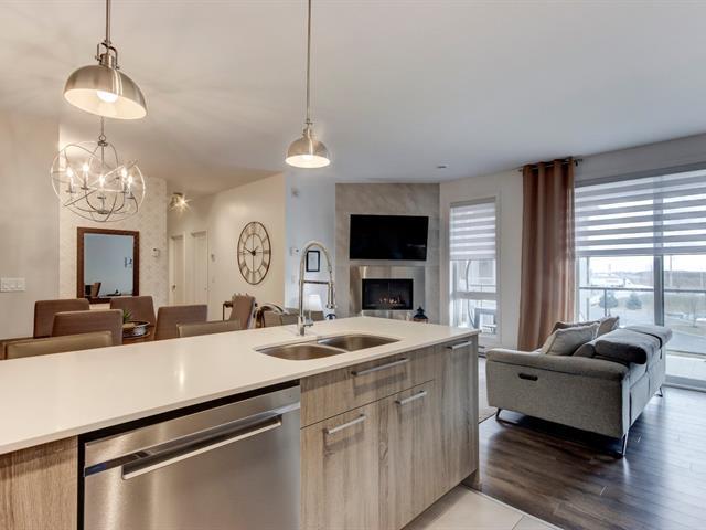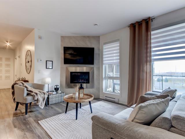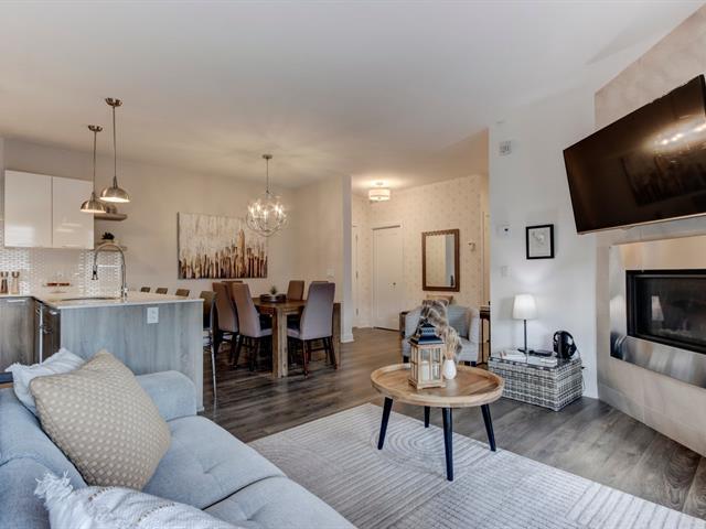 Bienvenue dans ce magnifique clé en main situé au projet Lumicité à Saint-Mathieu-de-Beloeil. Construction 2018 de qualité supérieure. Vous serez charmé par ses plafonds de 9 pieds ainsi que son grand balcon plein sud avec toile solaire électrique. Ce condo vous offre 2 chambres à coucher, une cuisine moderne avec comptoir de quartz et une grande salle de bain avec douche en céramique et bain autoportant. Au salon, un foyez au gaz naturel ajoute encore plus de cachet à cette splendide unité. Bénéficiez en plus d'un sationnement au garage avec un grand rangement ainsi qu'une place de stationnement extérieur. (46755725)