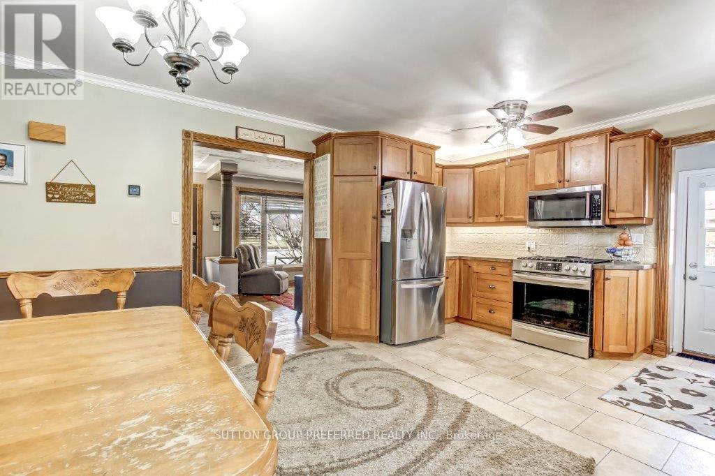 Prime location and a rare offering make this an ideal property for any buyer looking to relocate to the edge of St Thomas ( Central Elgin ). This unique bungalow offers 3 + 2 bedrooms for a growing family, offering unique space on a hard to find 80' X 200" lot with privacy, mature trees and room to roam. Gorgeous interior both up & down. Nothing to do but move in and enjoy ! Lots of hardwood, ceramic flooring, crown moulding, and oak baseboards. Fully updated kitchen with lots of cupboard space. 2 bathrooms. Beautiful renovated lower level is complete with large L-shaped family room and gas fireplace, 2 bedrooms and sleek 3 piece bath. 4rth bedroom in lower level was previously a fully outfitted commercial kitchen, so easily converted back. All the hookups, electrical outlets, and drainage are still available. Newer metal roof. Extra long concrete double wide driveway with drainage. Oversized 1.5 car garage/workshop will suit any mechanic. High efficiency furnace and c/air ( 2012 ). Owned 50 gal water heater and water softener. Most windows and patio doors replaced within the last 10 years. Apple trees in back are big producers. Tree house for the kids. This one is a 10 ! (41917364)