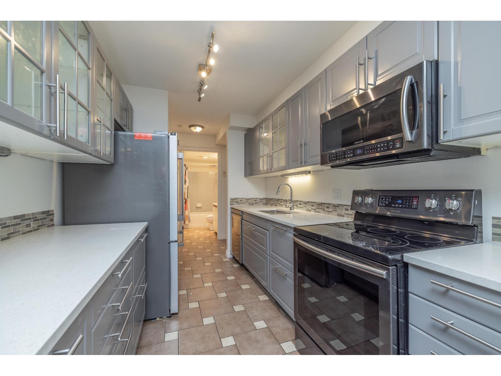 Welcome to this bright and inviting 2 Bed, 2 Bath top-floor corner unit at Creekside Estates, located in the heart of Chilliwack. Set within a well-managed building, this home offers an ideal blend of comfort, convenience, and peace of mind. The recently renovated kitchen features new appliances and flows seamlessly into a spacious living area, while generously sized bedrooms provide a relaxing retreat. Large windows fill the home with natural light, and a private balcony showcases beautiful mountain views. Enjoy the added value of new in-suite laundry, strata fees that include natural gas, and on-site management. Whether you're seeking a turnkey investment or a move-in-ready place to call home, this property checks all the boxes. One parking stall, with the option to rent a second. (32312334)