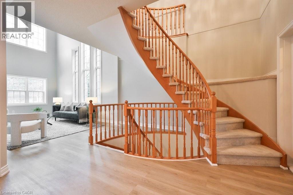 Welcome home. Spectacular executive double-car townhome located in the heart of Millcroft, tucked within a small, sought-after enclave. Inside, enjoy wide-plank flooring across all three levels, a bright neutral décor, and sun-filled living spaces. The main level offers an open dining and living area highlighted by a striking 2-storey great room, seamlessly connected to the all-white eat-in kitchen with walkout to the rear patio. Upstairs features an oversized primary suite with seating area, complete with two walk-in closets and a private ensuite, along with an additional bedroom and full bath. The finished lower level adds even more living space with a rec room and fireplace, a bedroom, and another full bath, perfect for guests or extended family. Close to schools, parks, and shopping.. this home has it all. (70032340)