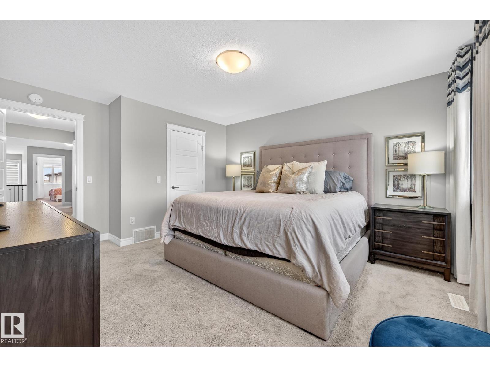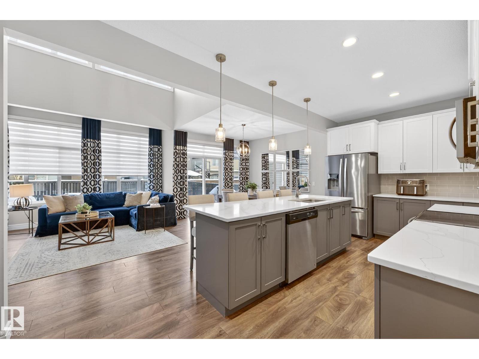 Former Showhome offering over 2,100 sq ft of thoughtfully designed living space in a prime location! The main floor features a large den that can be used as a bedroom, with convenient access to a 4-piece bathroom, stylish laminate flooring, a stunning kitchen with large pantry, centre island, quartz countertops, and modern two-tone cabinetry. Patio doors to outdoor living with a composite deck complete with privacy screen.The open-to-above living room boasts impressive 18-ft ceilings, leading to a cozy upper bonus room perfect for relaxing. Upstairs you’ll find 3 spacious bedrooms, a full 4-piece main bath, and a primary suite with 4-piece ensuite, walk-in closet, and closet organizers. A full upstairs laundry room adds everyday convenience. Additional highlights include a 24x18 double attached garage, fully fenced yard. Located close to walking trails, elementary and junior high school, and within walking distance to all amenities. Great location close to major commuter road, Anthony Henday Drive. (33705817)