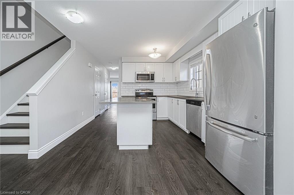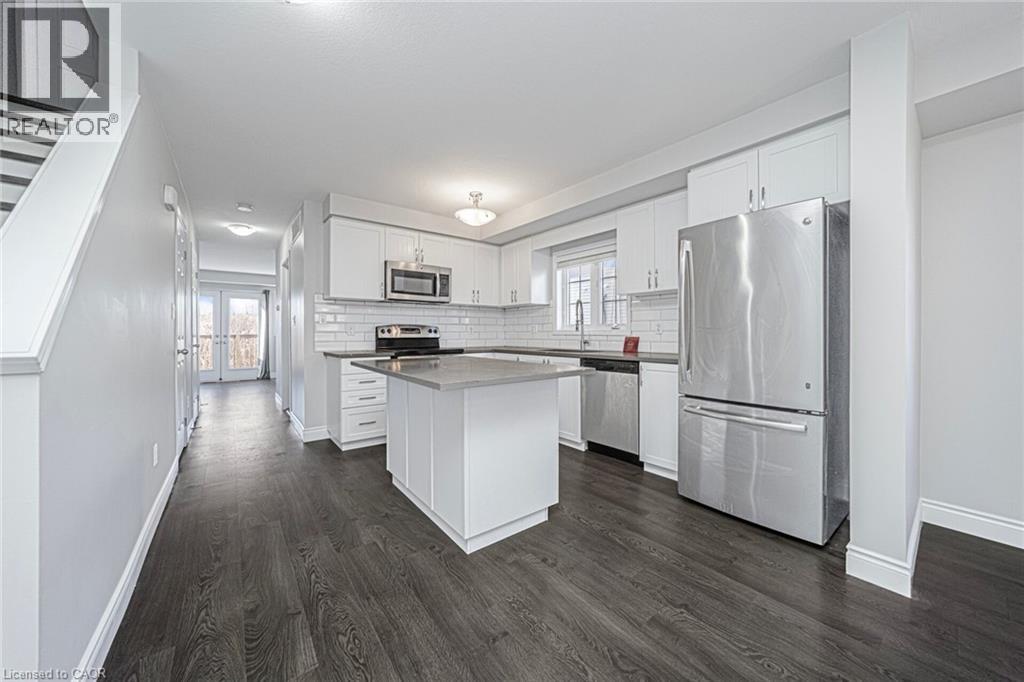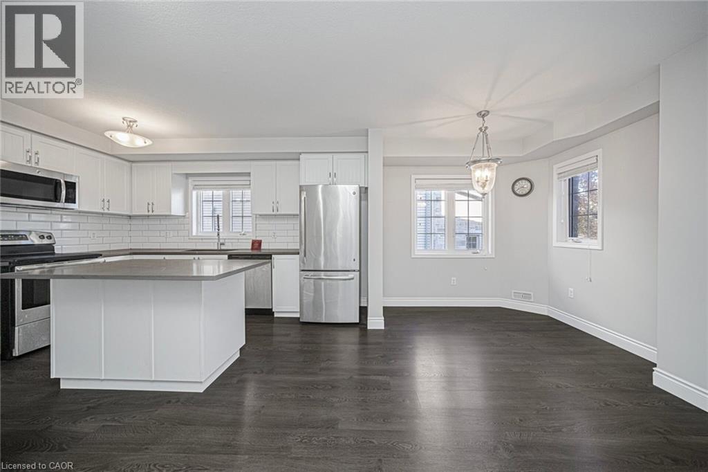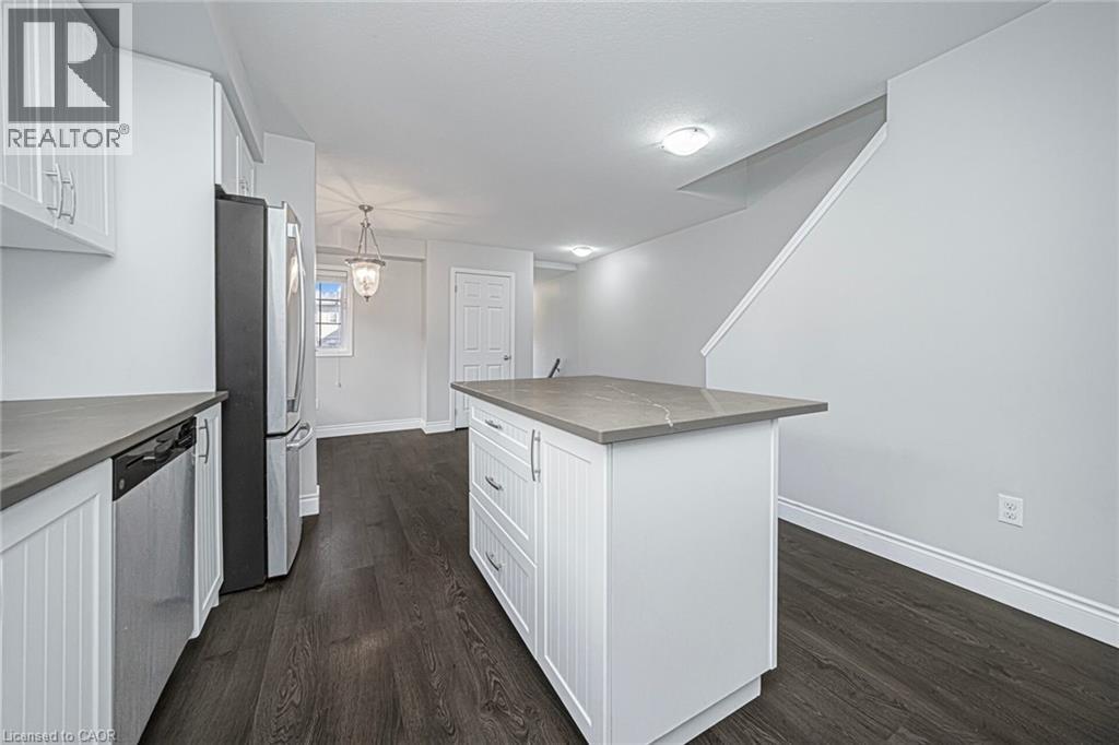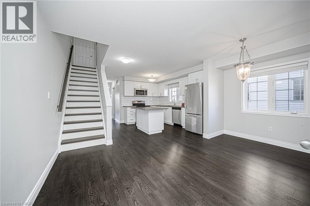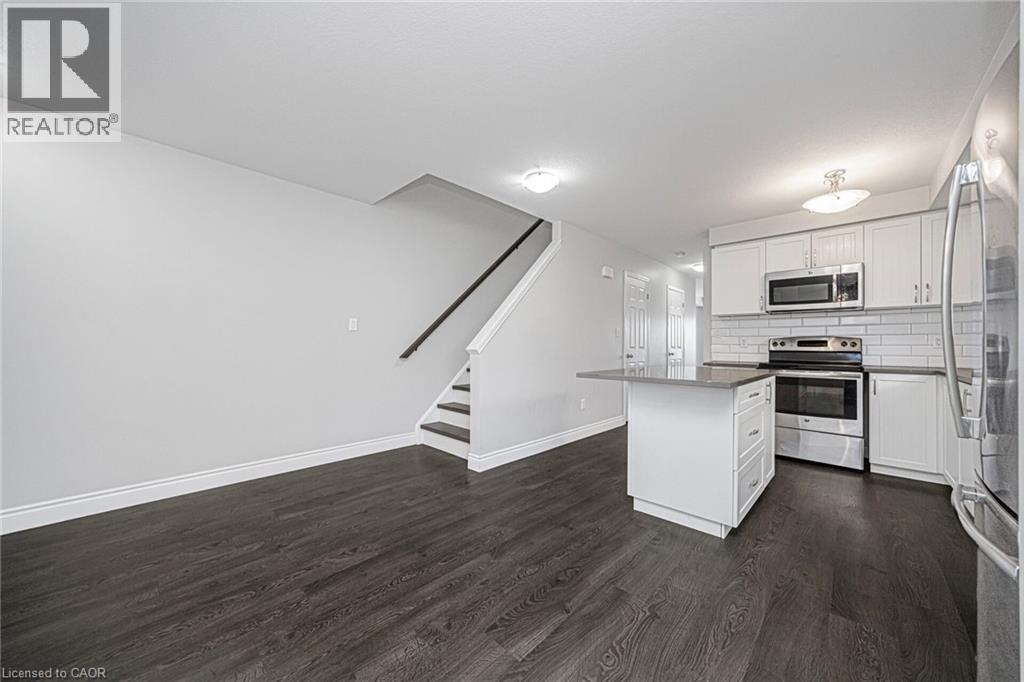 Welcome to this bright and spacious 3-bedroom, 2-bath townhouse located in one of Kitchener's most sought-after neighborhoods. The main floor offers an upgraded kitchen with hard surface countertops, tiled backsplash, stainless steel appliances, ample cabinet space, and a convenient pantry under the stairs. The open dining area flows into a comfortable living room with a walkout to a sun deck, which also features additional storage underneath. This level also includes in-suite laundry and a 2-piece bathroom. Upstairs, you'll find three generous bedrooms and a well-appointed 4-piece bathroom. Close to all major amenities, transit, shopping, and schools. (70033958)