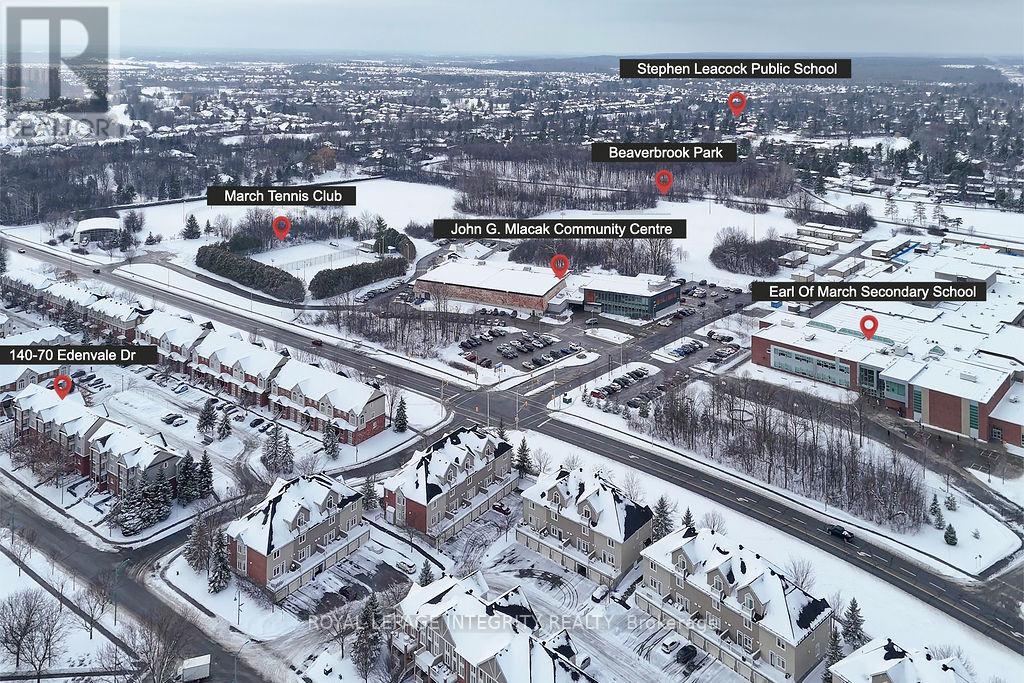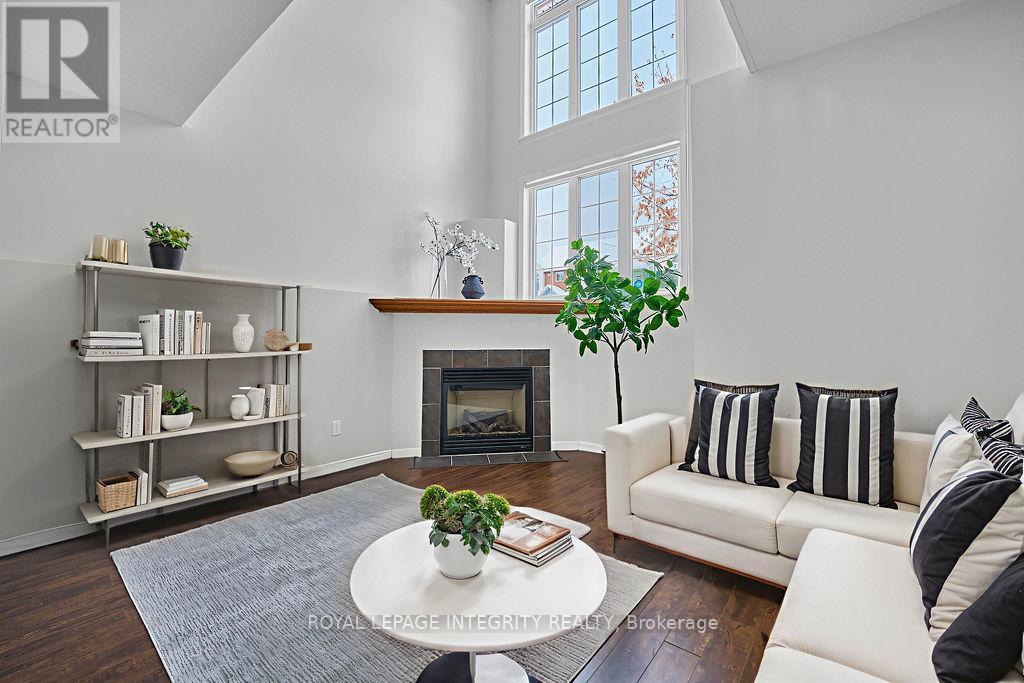 Sun-drenched luxury meets a prime location in the heart of Kanata Beaverbrook! This stunning 2-bed, 2-bath corner unit is the ultimate move-in-ready home, situated in Ottawa's top-tier school zone. The open-concept main floor boasts soaring two-storey windows equipped with new automatic blinds (2024), bathing the beautiful hardwood floors and freshly painted walls in natural light. Enjoy a seamless and functional layout featuring a main-floor powder room and convenient laundry. The lower level is a true standout, offering a cozy retreat with a gas fireplace and dramatic two-storey windows that keep the space exceptionally bright and airy-perfect for a family room, media center, or home office. This level includes two spacious bedrooms, featuring a primary suite with a walk-in closet and "cheater" access to the full bath. Outdoor lovers will appreciate that Billy Bishop Park is just around the corner from your rear door. Walk to the prestigious Earl of March campus, parks, and Beaverbrook library, with Kanata Centrum and Hwy 417 just minutes away. Low condo fees and all big-ticket items updated, this bright gem offers an unparalleled opportunity for high-end living. Turn-key and waiting for you! Worry-free living with extensive recent updates: NEW Furnace (2025), Automatic Blinds (2024), New Stair Carpeting (2025) & Lighting (2024), Central AC (2021), Bedroom Flooring (2021), Roof (2019) (41919238)