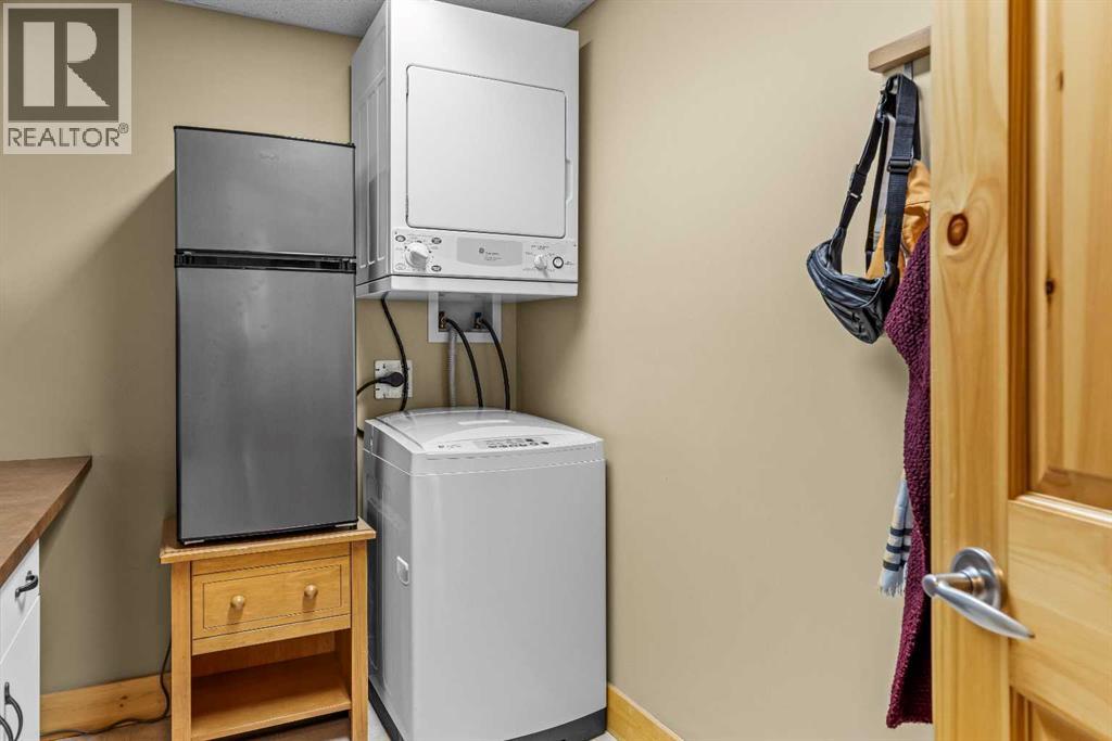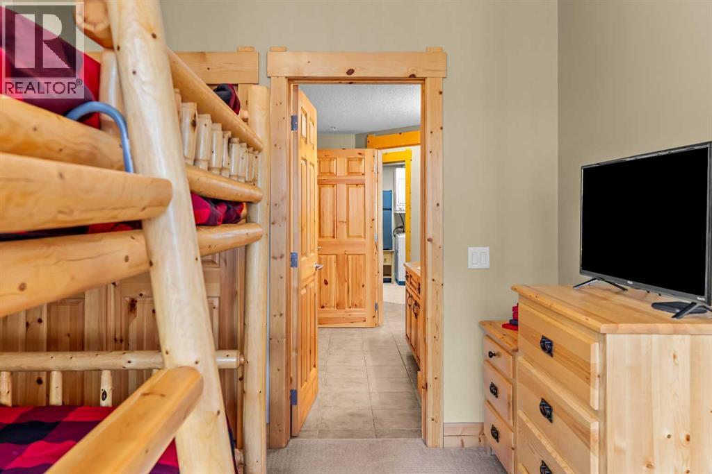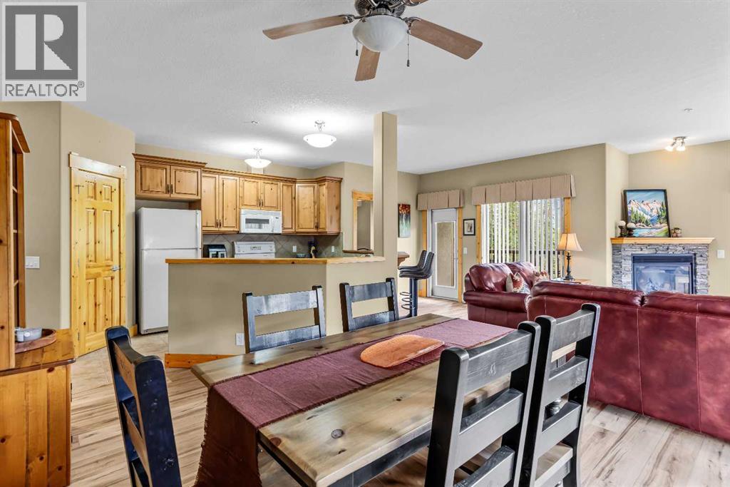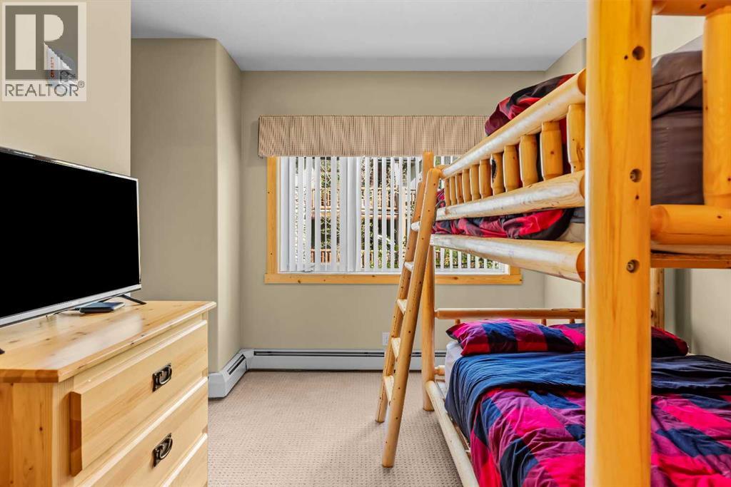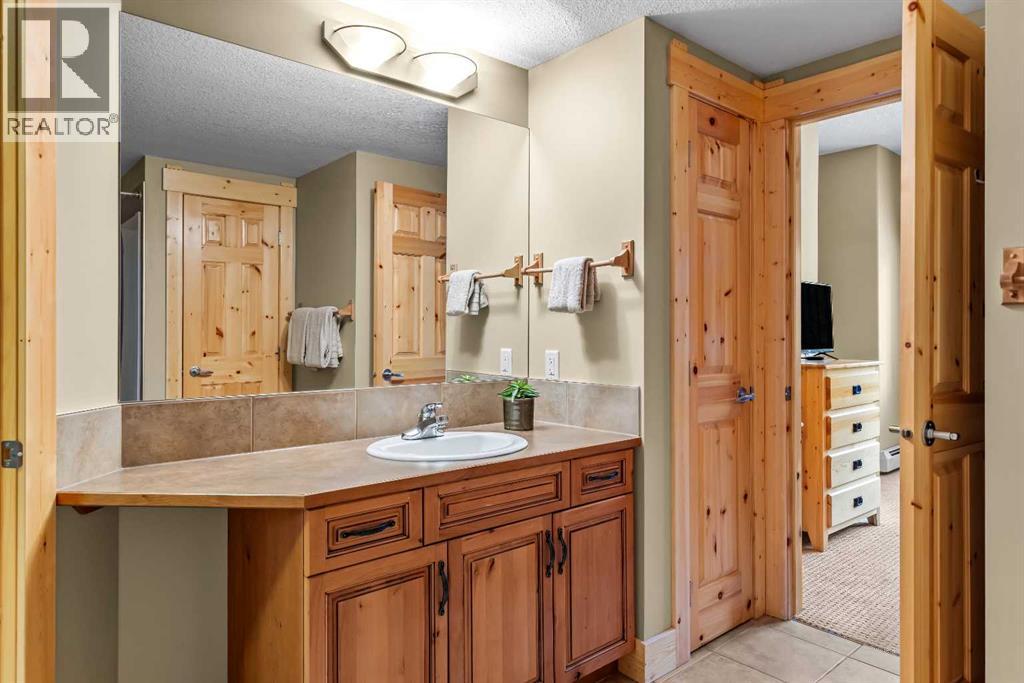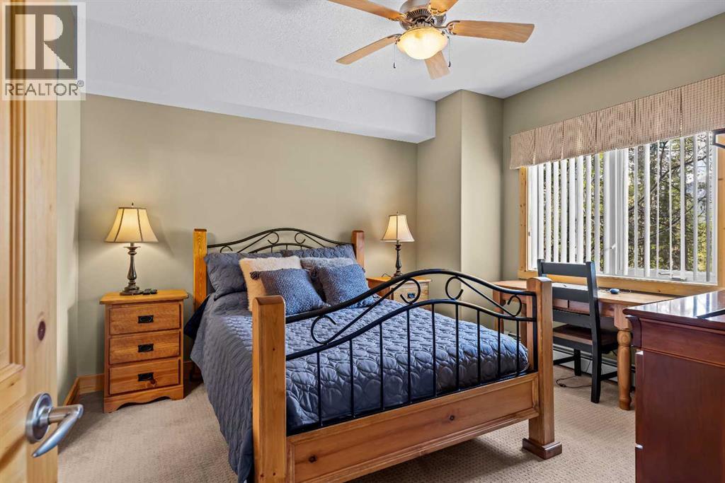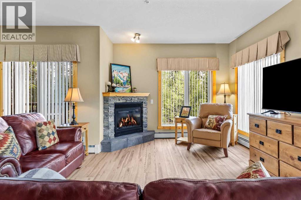 This thoughtfully laid out 2-bedroom, 2-bathroom corner unit offers 1,237 sq ft of bright, open-concept living space, featuring two spacious primary suites—each with its own ensuite. The main living area is enhanced by new luxury vinyl plank flooring, while two peaceful decks provide quiet outdoor retreats backing onto serene wooded greenspace—just steps from the Bow River. Owners enjoy access to a first-class clubhouse with an indoor pool, indoor/outdoor hot tub, sauna, steam room, fitness centre, theatre, event space, and games area with billiards, table tennis, and shuffleboard. Complete with titled underground parking and a secure storage locker, this is low-maintenance living in one of Canmore’s finest adult communities. Furnishings Negotiable. -Listing Agents are Related to the Sellers. (31514816)