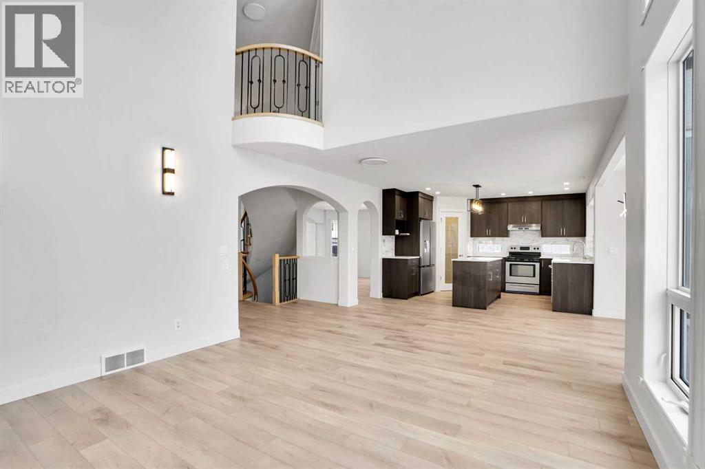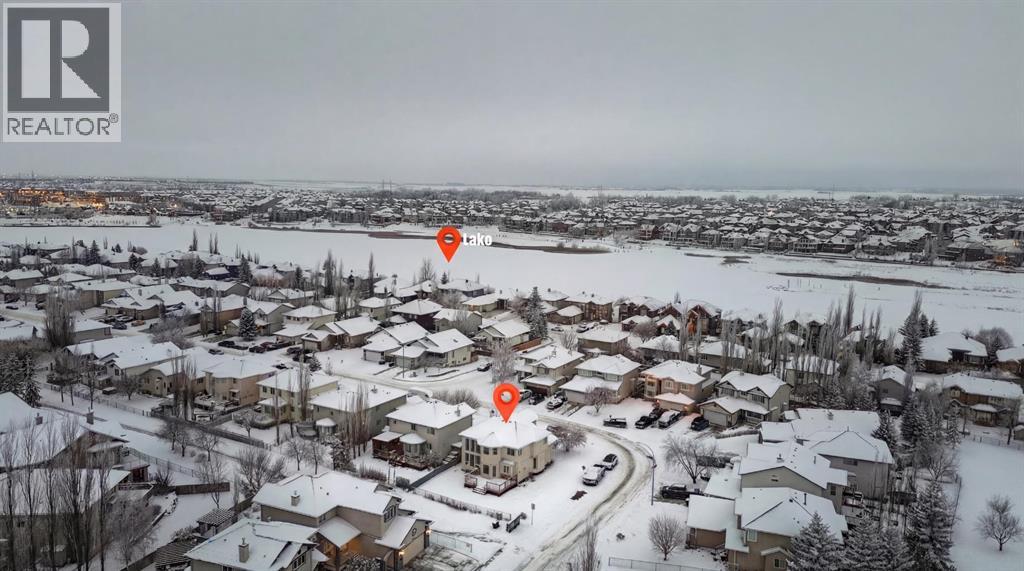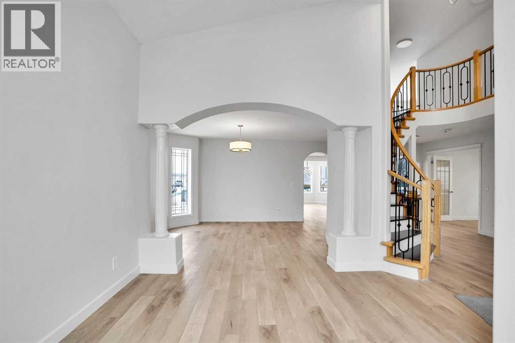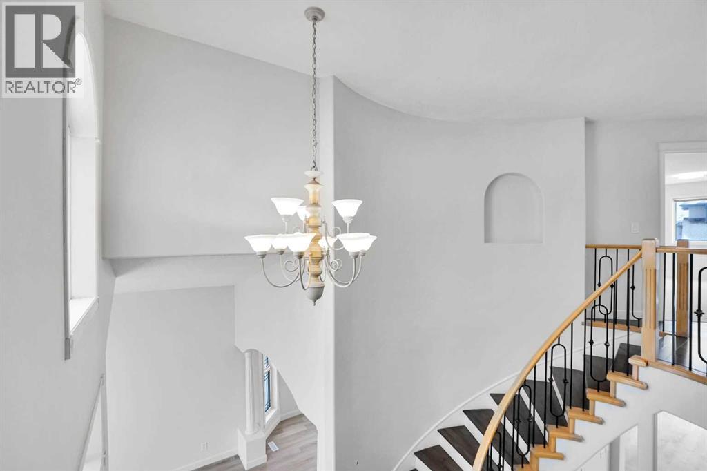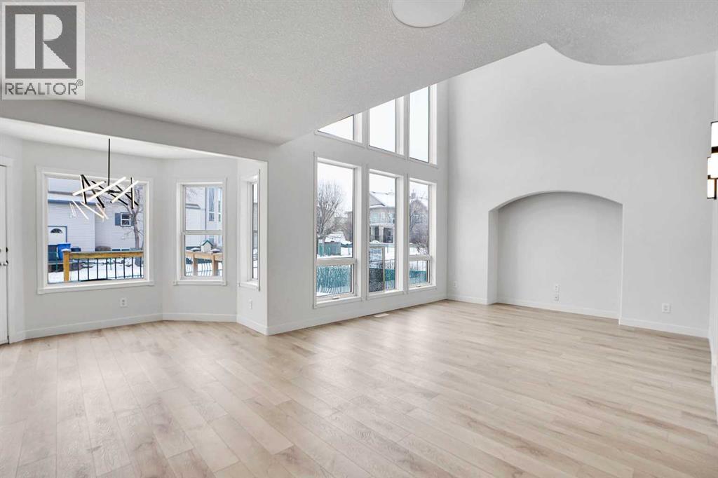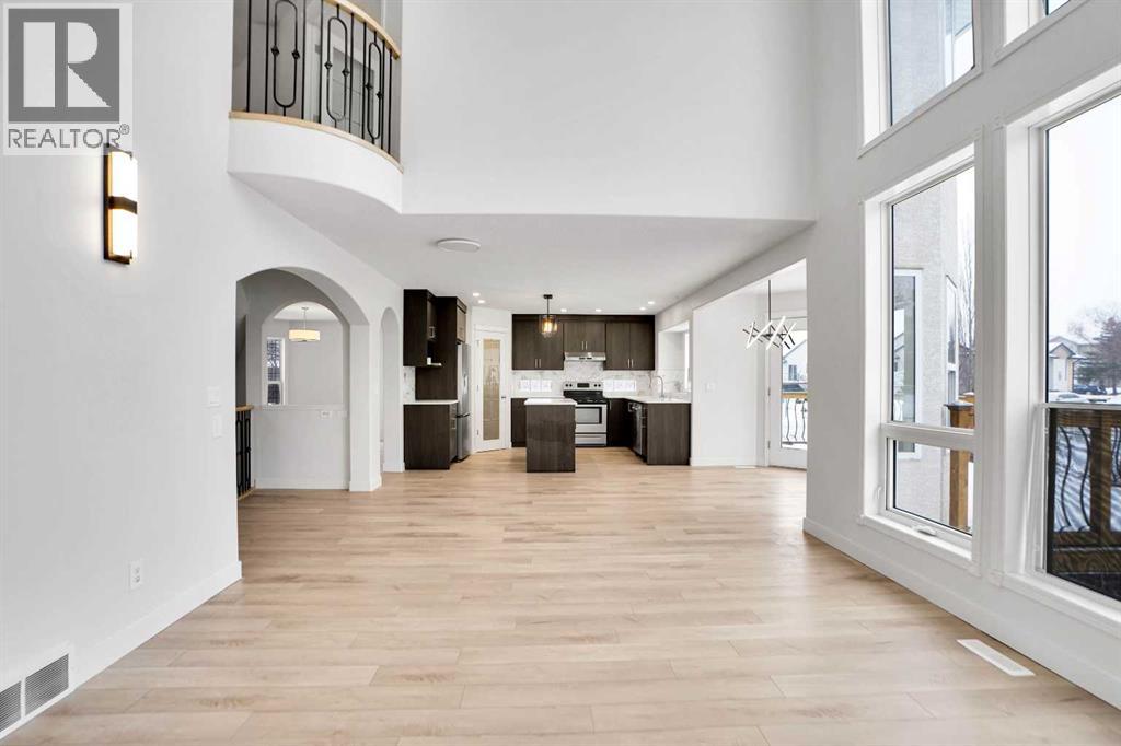 *Life really is better by the lake — Welcome to The Cove in Chestermere!* This beautifully renovated 2-storey home sits on a large corner lot backing onto pathways and green space, just a short walk to Chestermere Lake, The Cove Beach, parks, playgrounds, and off-leash areas. Set on a generous corner lot, this property gives your family the rare balance of privacy, convenience, and year-round recreation. Walk the kids to the beach, hit the pickleball courts, let the dog run at the off-leash park, or enjoy sunset strolls along the water… all just minutes from your front door. Inside, the house greets you with that WOW moment — soaring 17’ ceilings, the sweeping curved staircase, and oversized windows pouring natural light across brand-new flooring. It’s a true “wow” entrance that sets the tone for the rest of the home. The main floor features a spacious formal living/dining area, a bright kitchen with centre island and pantry, a cozy family room with 3-sided fireplace, and a private main-floor office with French doors. Ceiling to floor Windows in the Family Room provide ample light during the day and gives you an unobstructed view of the backyard. Step outside onto your own private deck for summer BBQs or just relaxation after a long work-week. This house has it all. Upstairs offers 3 bedrooms including a generous primary suite with 5-pc ensuite and walk-in closet. The open-to-below hallway adds light and airiness throughout. The second and third bedrooms are towards the front of the house, with spacious closets, new carpets and light fixtures. The 4 pc bathroom down the hallway is also a master piece and Brand NEW with it's cabinetry, lighting, faucets, counter tops and shower area. The unspoiled basement is ready for your future development with 3 windows and lots of potential. Enjoy a large backyard with deck, concrete patio, and plenty of room for kids, pets, and entertaining. Location is everything. In The Cove, you get walking trails, parks, green space, and pr oximity to Chestermere Lake for boating, paddle-boarding, and fishing - plus easy access to shopping, schools, and highways. If you’re looking for a family home that blends style, comfort, and a community outside of the big city - this is it! Move-In ready and Quick possession available! Come book your showing today and fall in love with it. (31514341)