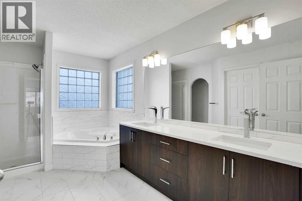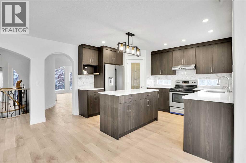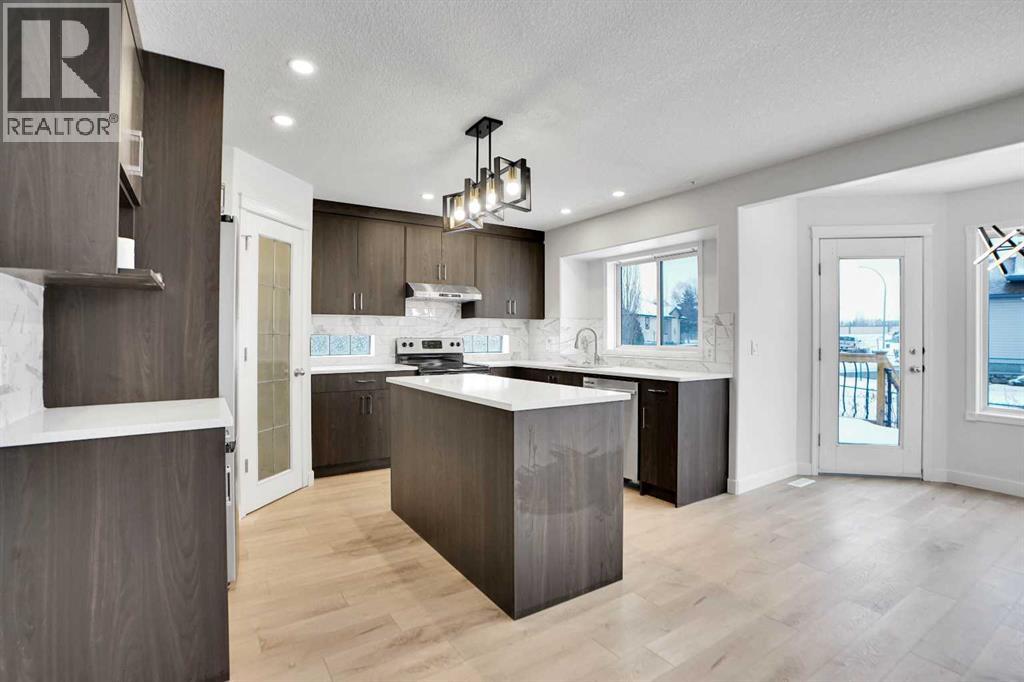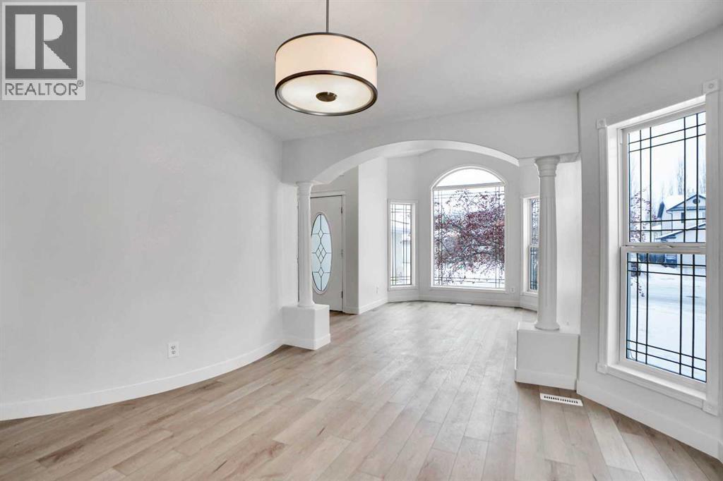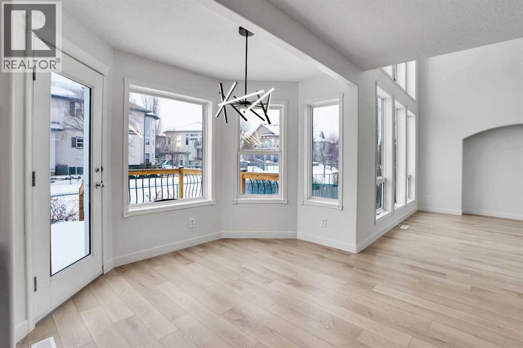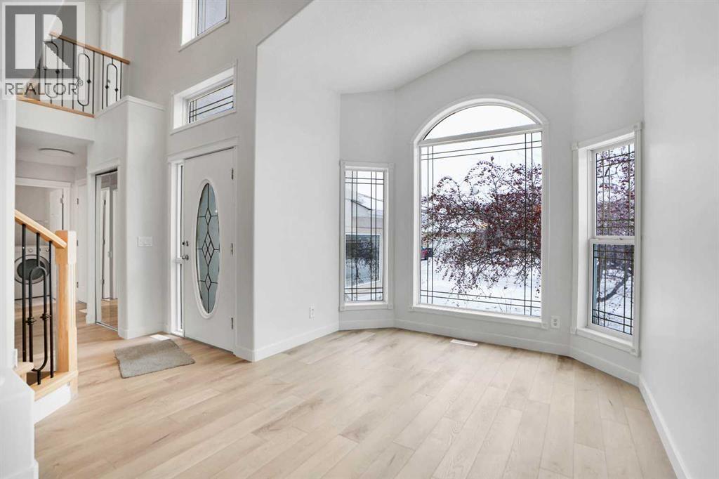 *Life really is better by the lake — Welcome to The Cove in Chestermere!* This beautifully renovated 2-storey home sits on a large corner lot backing onto pathways and green space, just a short walk to Chestermere Lake, The Cove Beach, parks, playgrounds, and off-leash areas. Set on a generous corner lot, this property gives your family the rare balance of privacy, convenience, and year-round recreation. Walk the kids to the beach, hit the pickleball courts, let the dog run at the off-leash park, or enjoy sunset strolls along the water… all just minutes from your front door. Inside, the house greets you with that WOW moment — soaring 17’ ceilings, the sweeping curved staircase, and oversized windows pouring natural light across brand-new flooring. It’s a true “wow” entrance that sets the tone for the rest of the home. The main floor features a spacious formal living/dining area, a bright kitchen with centre island and pantry, a cozy family room with 3-sided fireplace, and a private main-floor office with French doors. Ceiling to floor Windows in the Family Room provide ample light during the day and gives you an unobstructed view of the backyard. Step outside onto your own private deck for summer BBQs or just relaxation after a long work-week. This house has it all. Upstairs offers 3 bedrooms including a generous primary suite with 5-pc ensuite and walk-in closet. The open-to-below hallway adds light and airiness throughout. The second and third bedrooms are towards the front of the house, with spacious closets, new carpets and light fixtures. The 4 pc bathroom down the hallway is also a master piece and Brand NEW with it's cabinetry, lighting, faucets, counter tops and shower area. The unspoiled basement is ready for your future development with 3 windows and lots of potential. Enjoy a large backyard with deck, concrete patio, and plenty of room for kids, pets, and entertaining. Location is everything. In The Cove, you get walking trails, parks, green space, and pr oximity to Chestermere Lake for boating, paddle-boarding, and fishing - plus easy access to shopping, schools, and highways. If you’re looking for a family home that blends style, comfort, and a community outside of the big city - this is it! Move-In ready and Quick possession available! Come book your showing today and fall in love with it. (31514341)