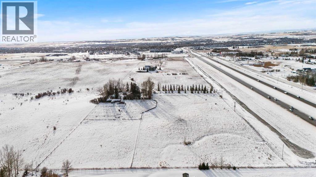This is a rare, high-exposure 11.19-acre development site at the absolute north gateway of Okotoks, positioned just east of Highway 2A along the paved sub-road at the first set of lights entering town. Elevated topography delivers commanding, unobstructed mountain views—an increasingly scarce and premium feature—while mature spruce trees create a private, park-like setting. Offered strictly as land value with the residence included at no cost, this parcel is surrounded by established and expanding infrastructure including schools, commercial uses, golf courses, and residential neighbourhoods, all within walking distance, and supported by a new signalized intersection for safe, efficient access. With visibility, access, views, and growth already in place, this irreplaceable gateway parcel offers immediate and long-term upside for commercial or mixed-use development. (31511634)