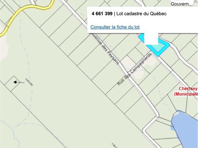 Exceptional 68,435 sq ft lot on Avenue du Lac-à-Lunettes in Chertsey . Peaceful natural setting with easy road access and nearby municipal services. Perfect for building a cottage or secondary residence. Close to lakes, trails, and outdoor activities, as well as local shops and amenities. A rare opportunity combining tranquility and accessibility--don't miss it! (40126808)