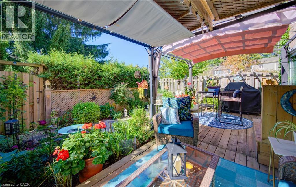 NEW PRICE!!! Meticulously maintained and lovingly updated with many customized one of a kind features! Boasting over 2,000 square feet of finished living space, this 3 bedroom, 3 bathroom townhome in quiet, desirable complex is maintenance free and move in ready. The main level is bright and airy - featuring spacious, open concept living and dining rooms, a large updated, eat in kitchen with custom backsplash, movable island, pantry and s/s appliances. Upstairs you'll find 2 spacious bedrooms, a 4 pc. bathroom plus large primary suite with feature wall, charming brick archway into walk in closet and ensuite bath with oversized walk in shower! The fully finished walk out basement leads to private, fenced gardens with lovely perennials, deck, gazebos and bbq area w/ gas line for convenience. 2 parking spaces with attached garage and single driveway plus ample visitor parking. This unit is beautifully positioned with year round privacy overlooking evergreens. New Heat Pump/AC in 2023 (lowers fuel consumption). Excellent complex with heated inground pool and conveniently located close to Shopping, Conestoga College, Golf courses and easy access to 401, perfect for commuters! Pride of ownership is evident. AAA++ **CONDO FEES include ground level snow removal, roof, doors, windows, guest parking, water, driveways, fences, landscaping. (70033802)