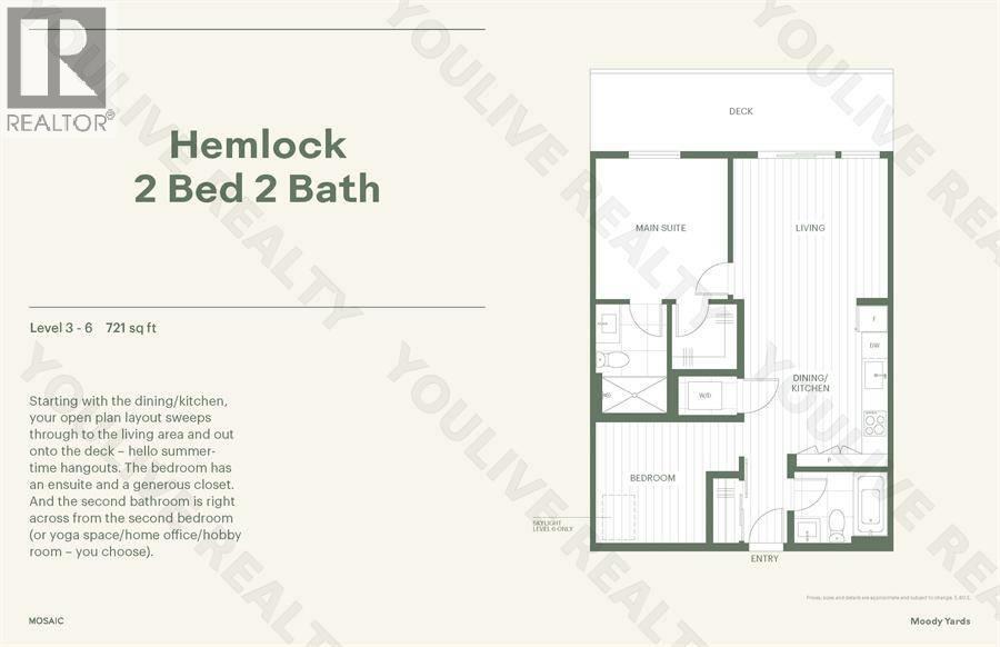 Modern Port Moody living in this brand-new 2-bedroom, 2-bathroom condo at Mosaic´s sought-after Moody Yards. This bright and thoughtfully designed home features an open-concept layout, oversized windows, high ceilings, full-size appliances, and in-suite laundry. Spa-inspired bathrooms and contemporary finishes create a light-filled, elegant living space. Enjoy spacious balcony and access to an expansive outdoor amenity area with community gardens, children´s play spaces, lounge areas, and a dedicated co-working space. Steps to cafés, restaurants, grocery stores, and shopping. Includes one underground parking stall. FEATURES: 1 Living Room, 1 Dining Room, 1 Kitchen, 2 Bedrooms, 2 Bathrooms WHAT ELSE IS INCLUDED: Laundry / Fridge / Stove / Dishwasher / Microwave (32315229)