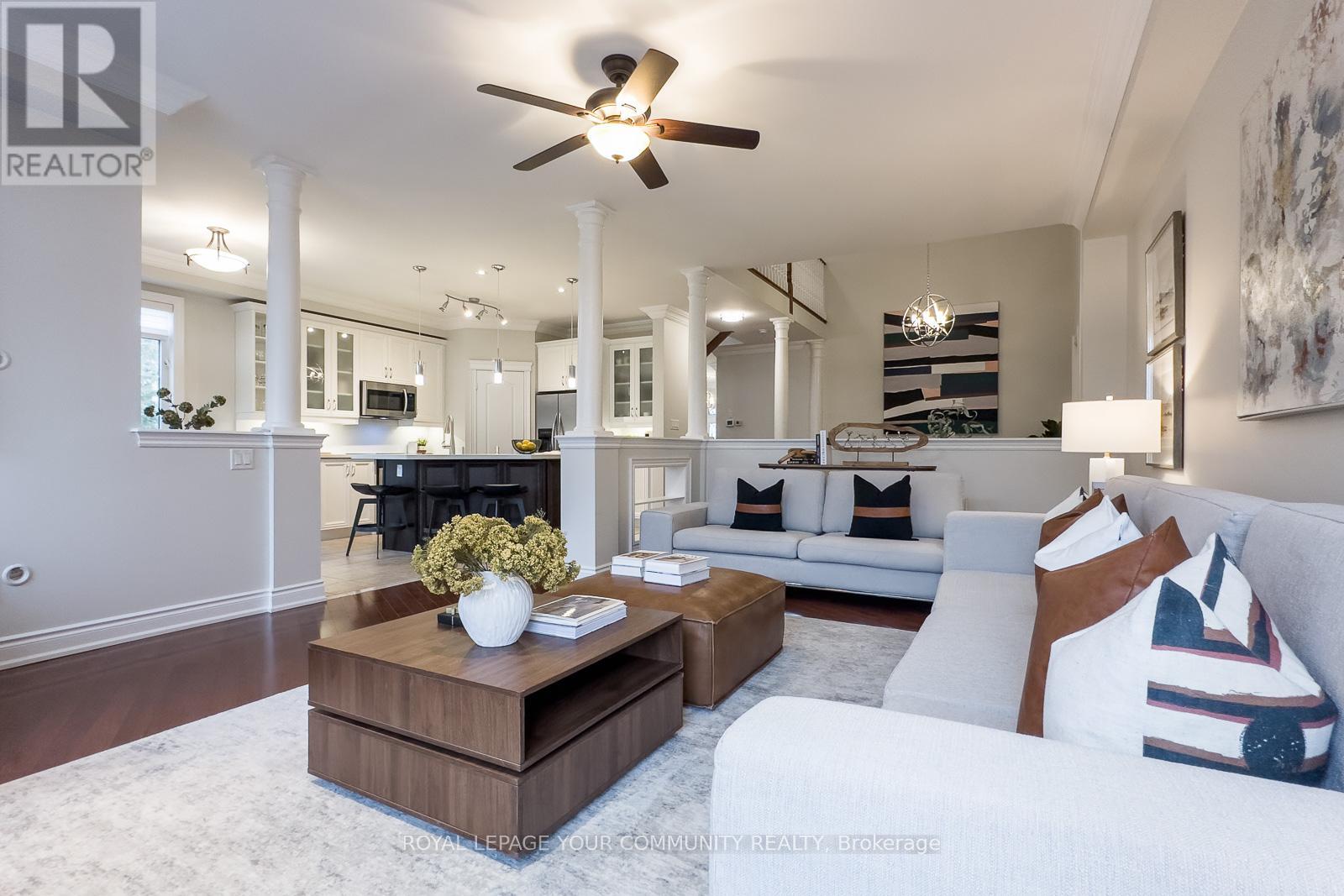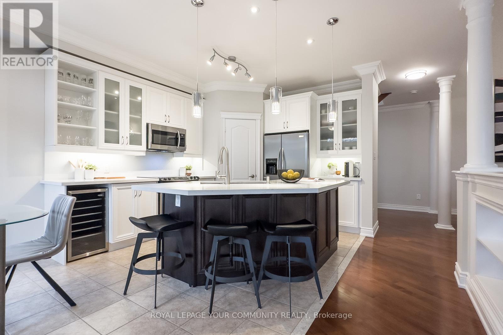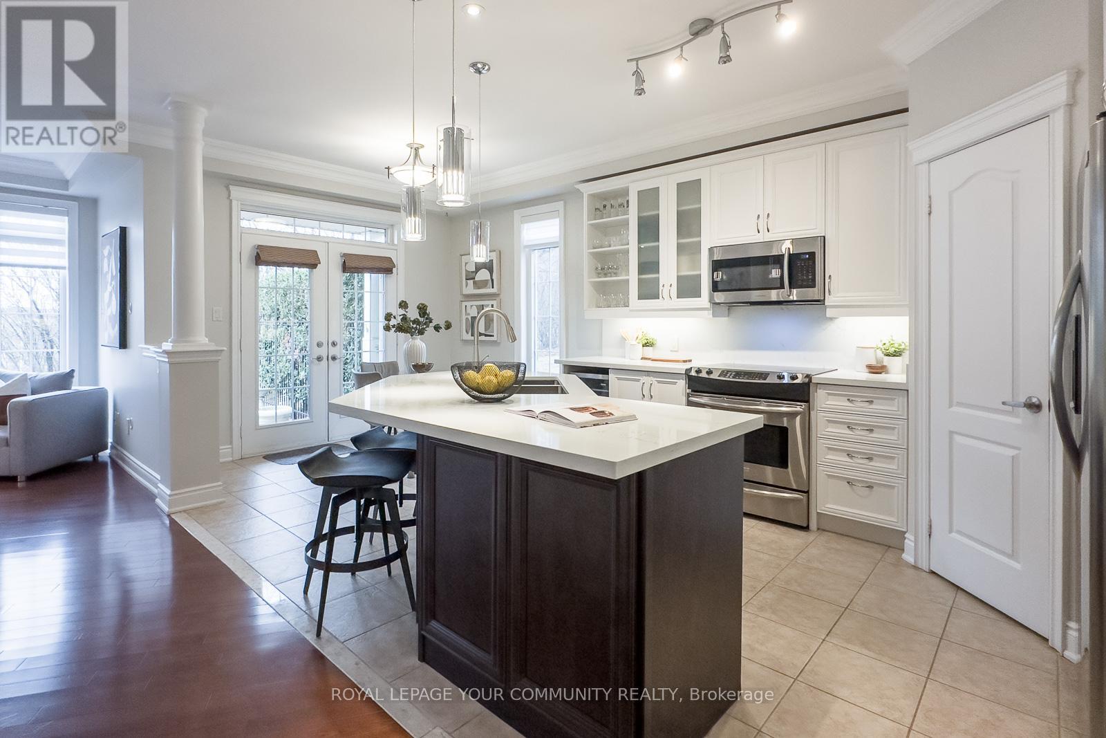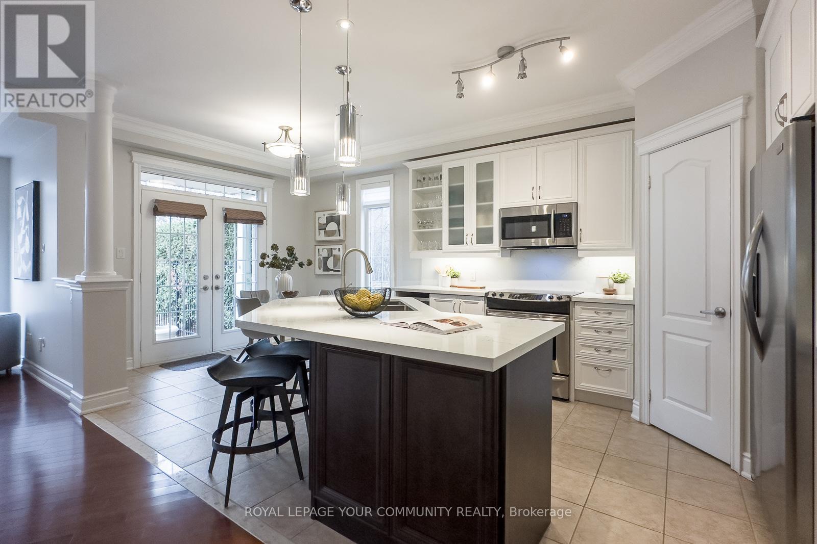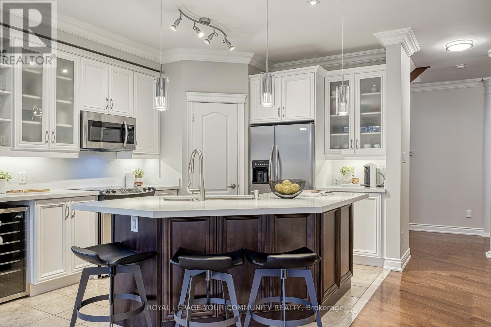 Embrace For Sale 59 Stonecliffe Cres, Aurora, Ontario. Embrace the perfect blend of luxury and serenity at 59 Stonecliffe Crescent, a beautifully appointed condominium townhouse that offers an exquisite living experience within the sought-after gated community of "Stonebridge Estate." This end unit, resembling a detached home, is nestled amidst 50 acres of lush woodlands, surrounded by world-class golf courses and the stunning landscapes of the Oak Ridges Moraine. As you enter, the open-concept design captivates you with its airy feel and natural light. The renovated kitchen serves as the heart of the home, showcasing elegant white cabinetry, a spacious quartz countertop, and a center island that beckons culinary creativity. The adjoining Great Room, adorned with a cozy gas fireplace and crown molding, invites relaxation while offering picturesque views of the private backyard. Host intimate dinners in the formal dining room under the dramatic cathedral ceiling and crown moulding. The main floor laundry area has a full-size washer & dryer, a large laundry sink, white cabinetry, and access to a double-car garage. Foyer, with a large closet, 2-piece powder bathroom, and double-door entrance. Travel upstairs to discover a private sanctuary in the expansive primary suite, where you can unwind in the luxury of a 5-piece ensuite featuring heated floors, double sinks, a separate shower, soaker tub. The primary has a walk-out balcony, an electric fireplace, a walk-in closet. Two additional well-appointed bedrooms, each with double closets, provide ample space. The finished basement further elevates this home, offering versatile areas for recreation, a stylish bar, and a dedicated office space-all designed for your ultimate comfort and enjoyment. Positioned close to shopping, hospitals, and minutes from Hwy 404, this residence offers not only a beautiful home but a desirable lifestyle. Discover the safety, tranquility, and elegance that await you at 59 Stonecliffe Crescen (41921001)