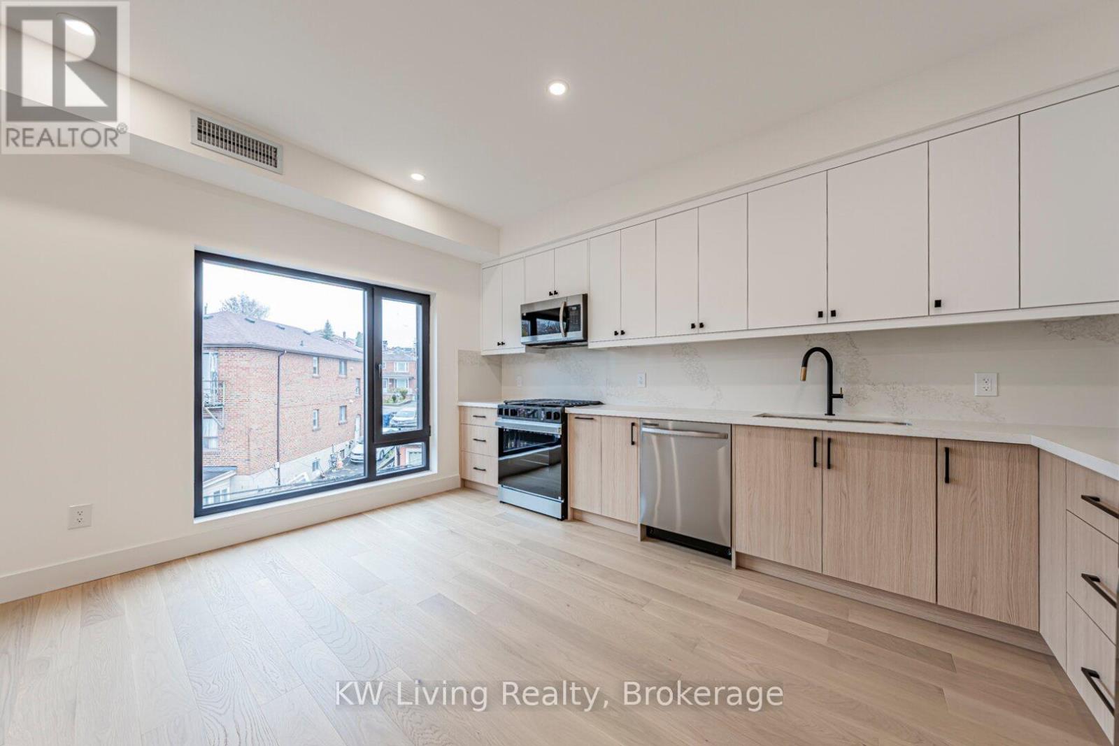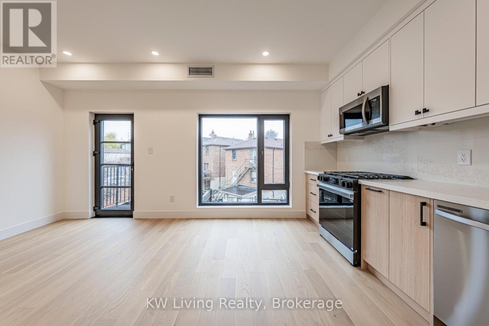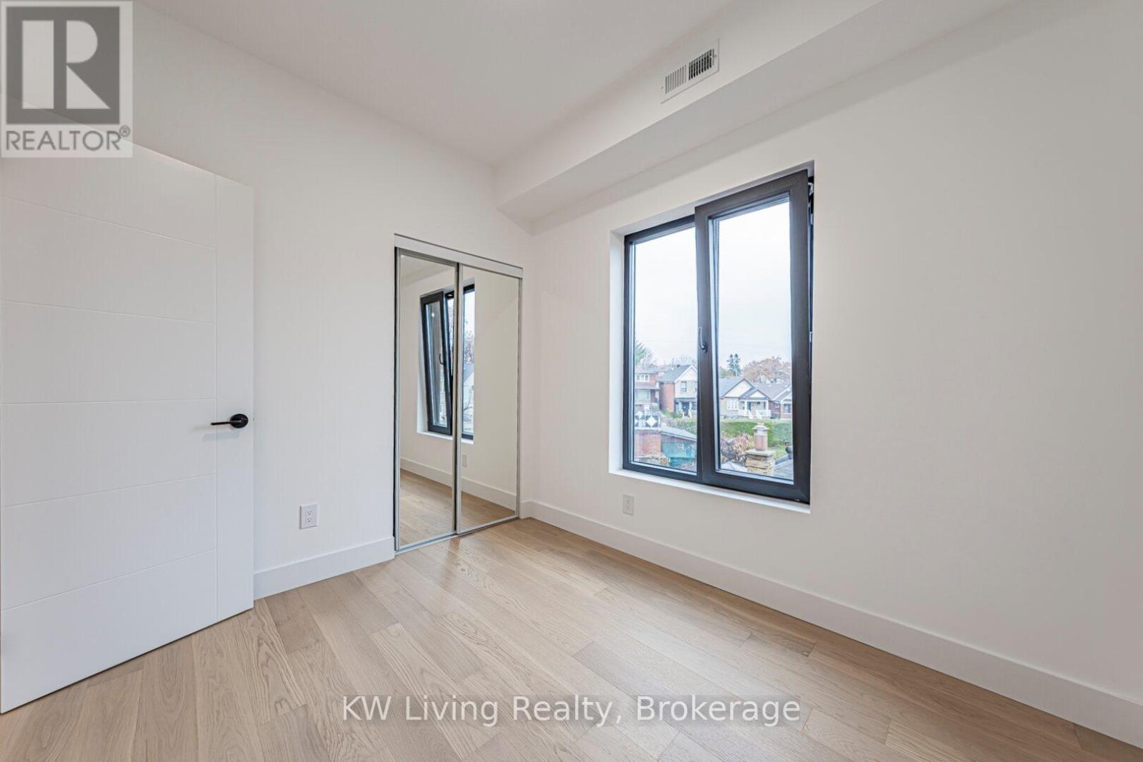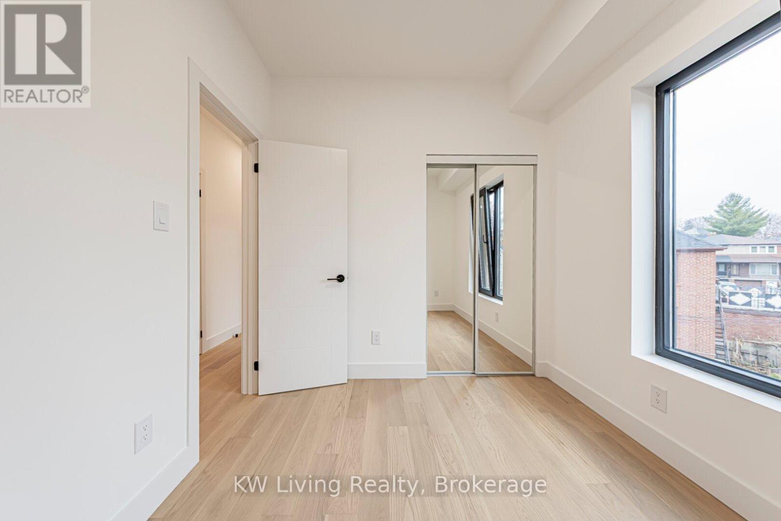 Be the First to Live in This Brand New Fourplex, Built by Modcity! Step into this modern 3-bedroom, 2-bathroom suite offering 1,150 sq. ft. of thoughtfully designed living space featuring soaring 9' ceilings and large European windows that deliver abundant natural light and create a truly inviting home. Enjoy a custom chef's kitchen with full-size stainless steel appliances (including a gas stove), sleek cabinetry, and plenty of counter space. Both bathrooms feature contemporary finishes, while all bedrooms include built-in closets for efficient storage. An in-suite stacked washer/dryer adds everyday convenience. Smart-home touches elevate the experience with remote keyless entry, a smart thermostat, and exterior cameras monitoring common areas. Heat and hydro are separately metered, giving you complete control over your utilities. Water is included and WIFI/Internet is FREE! Located less than a 15-minute walk to Eglinton Ave. and the future Fairbank LRT Station, this suite offers unbeatable comfort, convenience, and peace of mind in a brand-new residence. Street parking permits available through City of Toronto. (41921101)