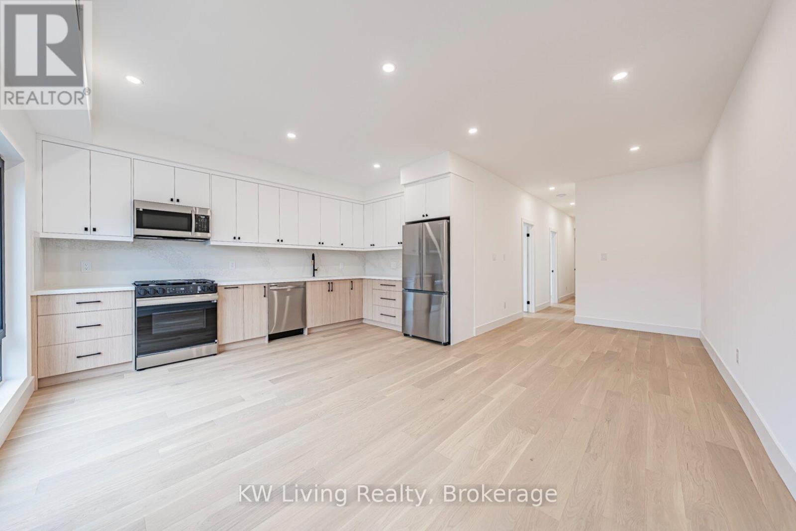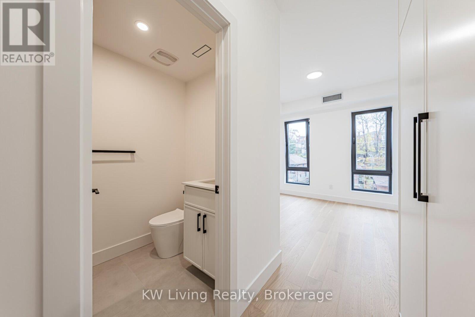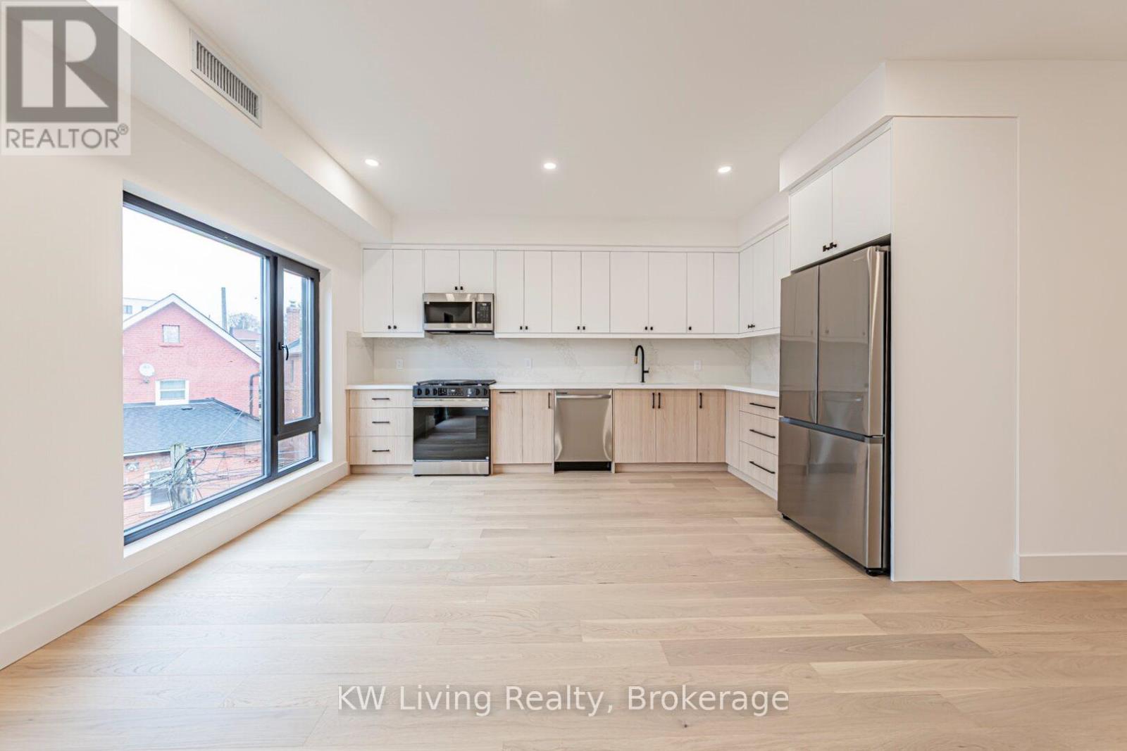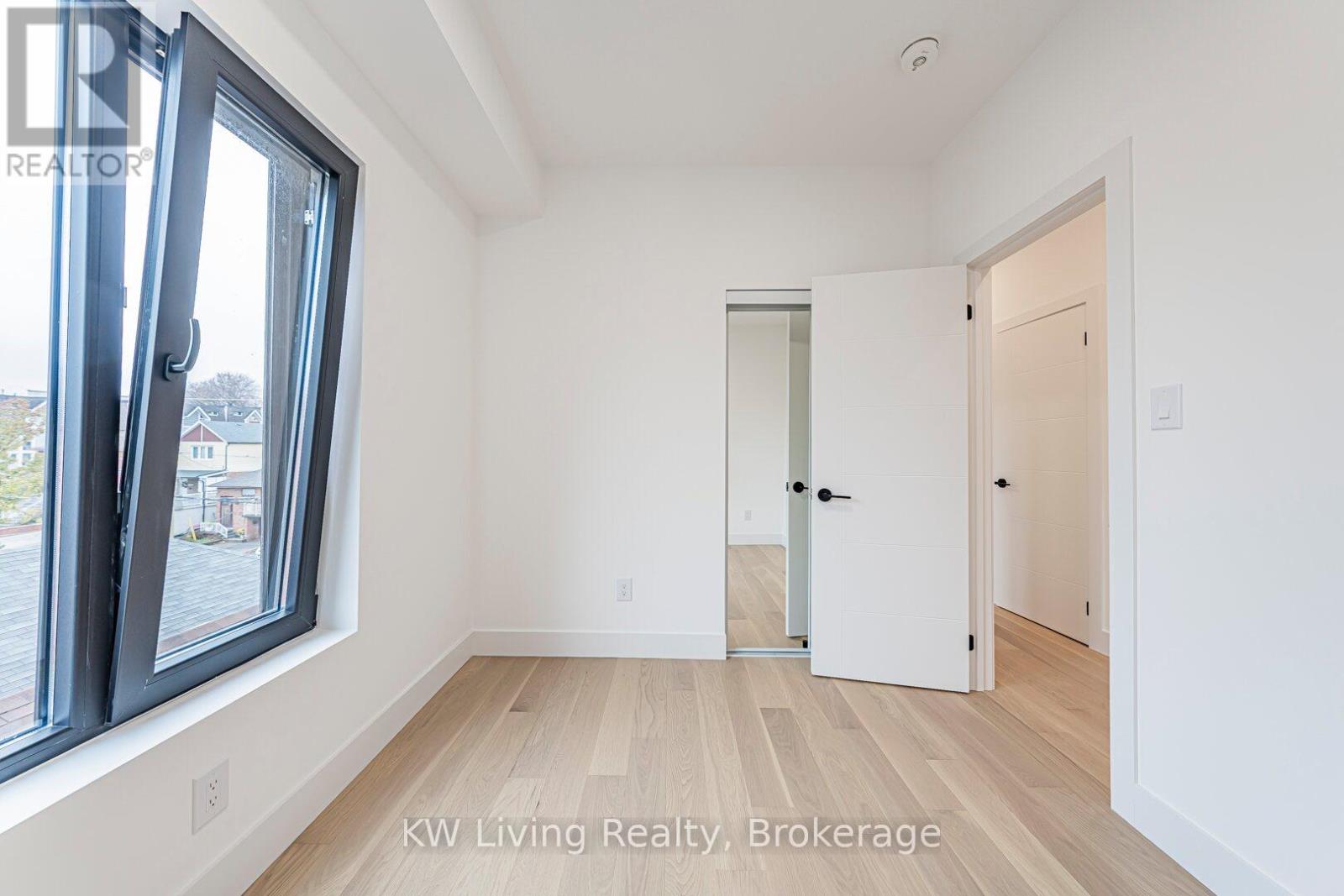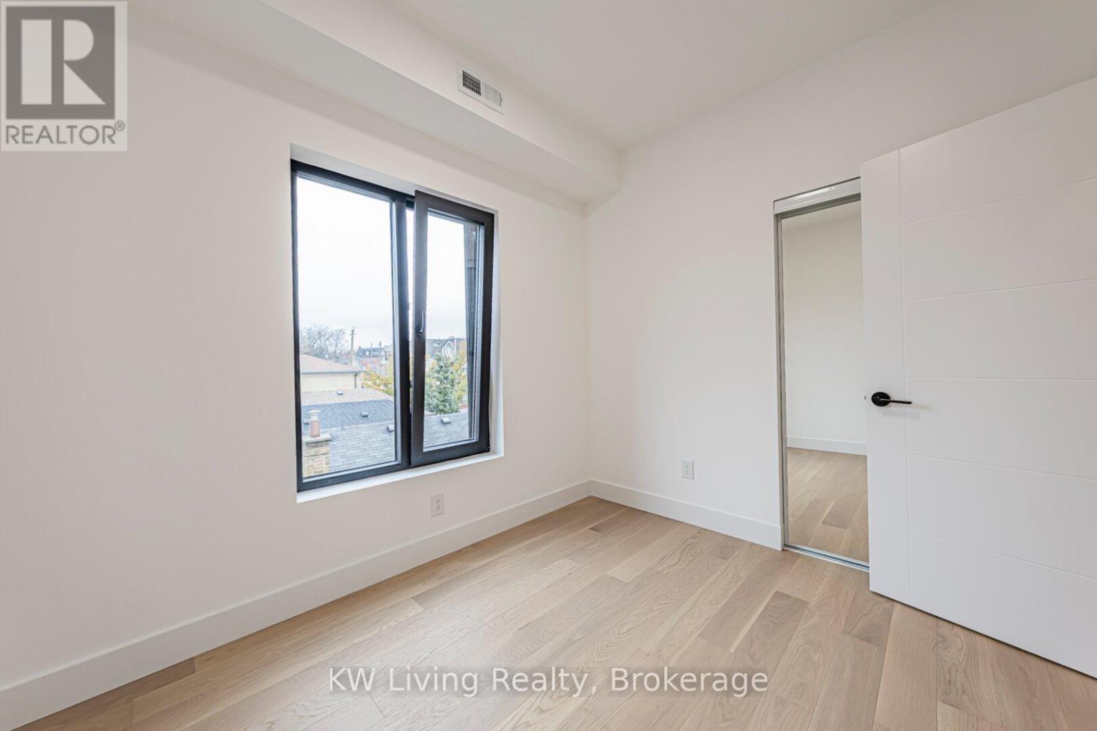 Be the First to Live in This Brand New Fourplex, Built by Modcity! Step into this modern 3-bedroom, 2-bathroom suite offering 1,150 sq. ft. of thoughtfully designed living space featuring soaring 9' ceilings and large European windows that deliver abundant natural light and create a truly inviting home. Enjoy a custom chef's kitchen with full-size stainless steel appliances (including a gas stove), sleek cabinetry, and plenty of counter space. Both bathrooms feature contemporary finishes, while all bedrooms include built-in closets for efficient storage. An in-suite stacked washer/dryer adds everyday convenience. Smart-home touches elevate the experience with remote keyless entry, a smart thermostat, and exterior cameras monitoring common areas. Heat and hydro are separately metered, giving you complete control over your utilities. Water is included and WIFI/Internet is FREE! Located less than a 15-minute walk to Eglinton Ave. and the future Fairbank LRT Station, this suite offers unbeatable comfort, convenience, and peace of mind in a brand-new residence. Street parking permits available through City of Toronto. (41921101)