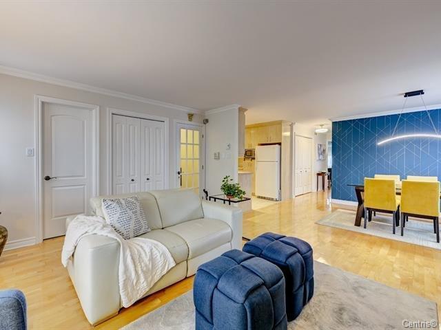 Beautiful 2-bedroom, 1-bath condo, 1,015 sq.ft., top floor, corner unit, bright and quiet. Open-concept living/dining area, functional kitchen with full-height cabinets, hardwood and ceramic floors. Terrace, air conditioning, 2 outdoor parking spots, indoor storage + shed. Option for new appliances (+$150/month). Electricity not included. Walking distance to parks, schools, bus. Near Boisé du Tremblay, Longueuil train station (20 min to Montreal). Green, sought-after area with exceptional comfort and quality of life. (43345400)