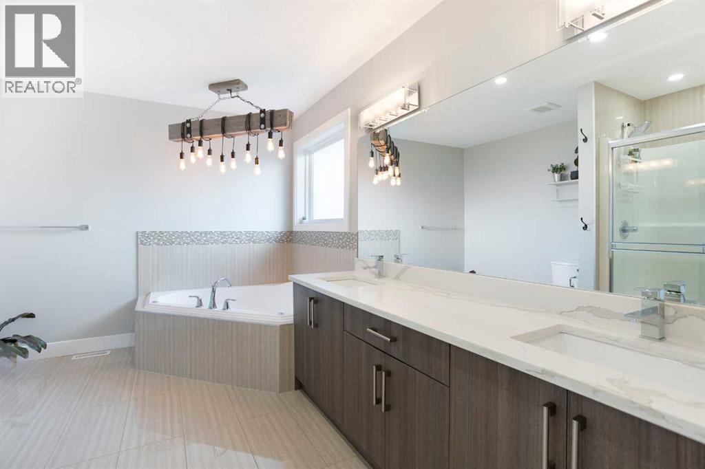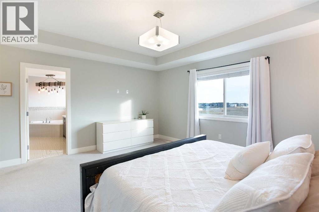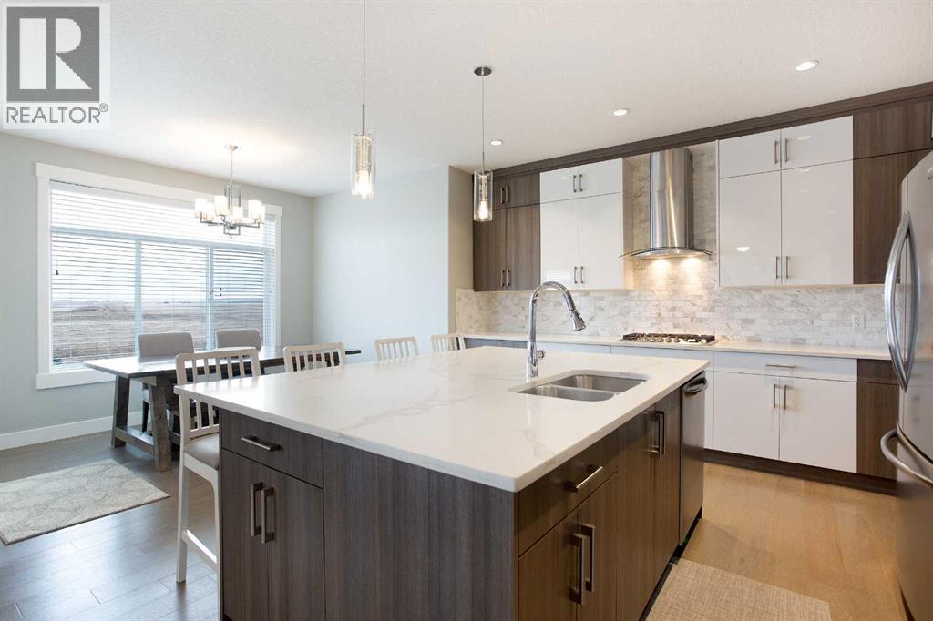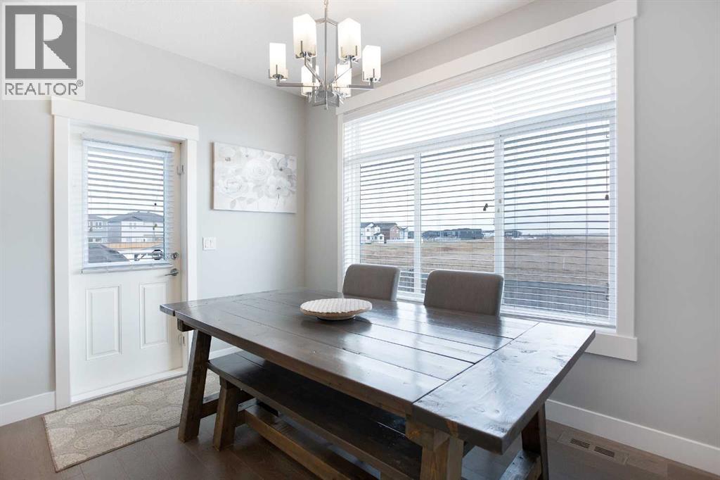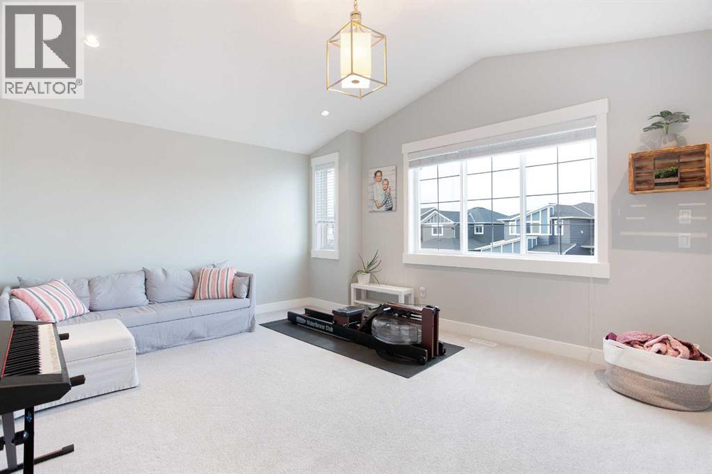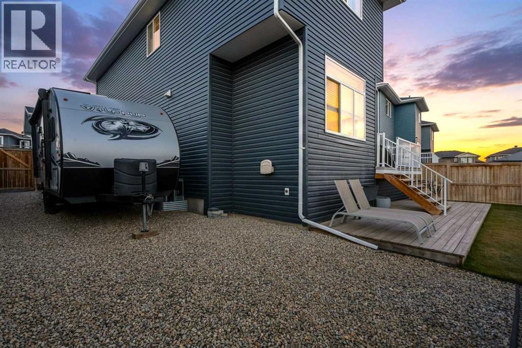 This beautifully cared-for family home blends small-town comfort with thoughtful modern design, offering the perfect mix of warmth, functionality, and space for growing families. Located on a quiet street just steps from the local elementary school and playgrounds, it provides a true sense of community while still giving you privacy and convenience.The main level is bright and inviting, featuring an open-concept layout that’s ideal for everyday living. A spacious front office sits just off the entrance — perfect for anyone working from home or needing a quiet study area — and a convenient half bathroom adds everyday practicality. The living room feels warm and welcoming with large windows and a cozy gas fireplace that anchors the space.At the heart of the home is the stunning kitchen, complete with full-height cabinetry, granite countertops, stainless steel appliances, and a large central island that makes both meal prep and entertaining a breeze. The walk-through pantry connects directly to the mudroom and garage, making it easy to bring in groceries and keep things organized. The dining nook opens onto the rear deck, creating a natural flow between indoor and outdoor living spaces.Upstairs, you’ll find three generous bedrooms, including a beautiful primary suite with a walk-in closet and elegant ensuite bathroom. The front-facing bonus room offers extra living space — perfect for family movie nights, a playroom, or a relaxing retreat away from the main floor. An additional full bathroom and upper laundry room complete this level with convenience in mind.The basement remains undeveloped, giving you the flexibility to create your own ideal space — whether that’s a home gym, guest suite, or media room in the future.Outside, the fully fenced backyard is private and well-kept, featuring an RV gate and gravel pad for extra parking or recreational use. The rear deck provides a great spot for summer barbecues and family gatherings, while the yard offers plenty of roo m for kids or pets to play.Car lovers and hobbyists will appreciate the oversized triple car garage — finished, heated, and offering plenty of room for vehicles, tools, and storage. The extended driveway provides even more parking space for guests or larger vehicles.This home has been meticulously cared for and thoughtfully designed for modern family living. From its beautiful finishes to its practical layout, every element offers a sense of comfort and quality. With a quiet location, great curb appeal, and a backyard built for both relaxation and functionality, this property delivers the best of small-town living with all the modern comforts you could want (31515306)