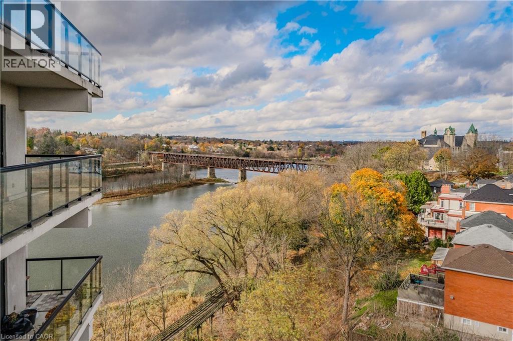 Welcome to this beautiful 2-bedroom, 2-bathroom condo in the heart of Galt, offering stunning views of the Grand River. This spacious unit features a large balcony where you can enjoy peaceful river views, ideal for relaxing or entertaining. With two dedicated parking spots—one underground and one on the surface—you’ll have both convenience and flexibility. Inside, enjoy an open layout with ample natural light, modern finishes, and comfortable living spaces. This condo perfectly blends scenic charm with urban convenience, making it an ideal home for those seeking a balance of comfort, style, and a picturesque location. The condo has many amenities including a roof top deck, gym, guest suites and social room! The condo fee also includes a locker, heat, air conditioning and water! Book your viewing today and be ready to call this condo Home! (70034836)