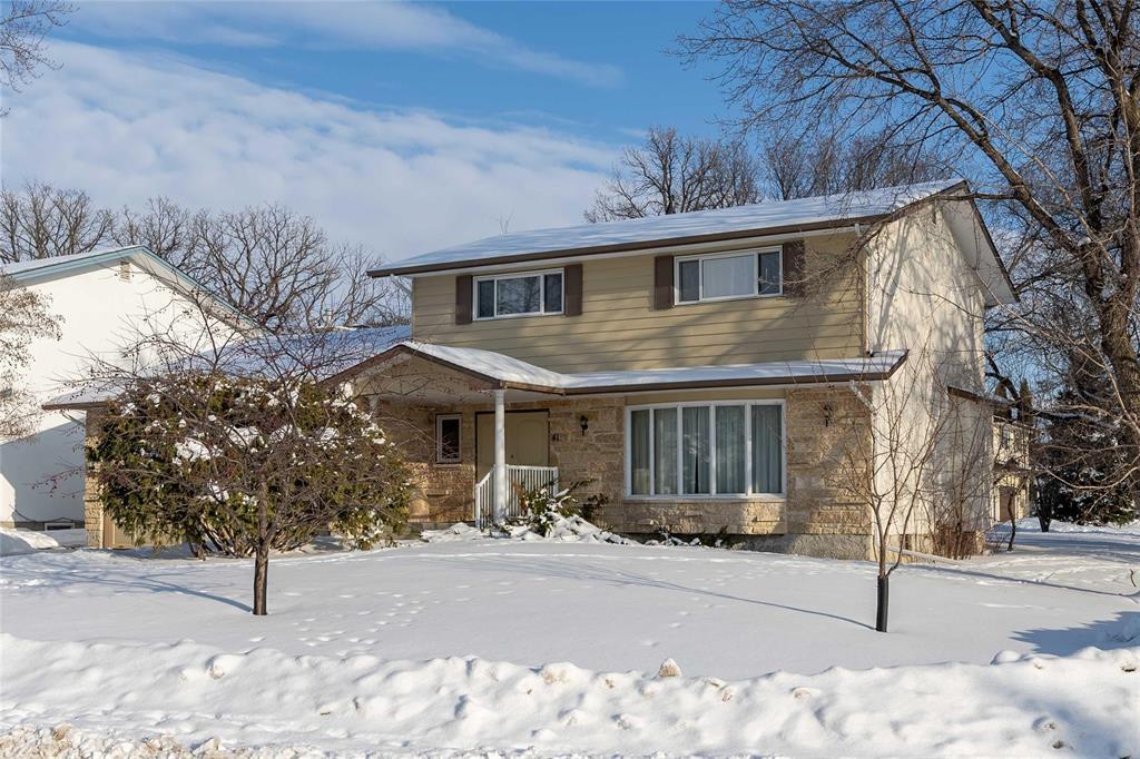 5G//Winnipeg/SS January 13 offers reviewed January 20th late afternoon. OH Saturday & Sunday 1:30-3pm. Longtime Family home. Well maintained, traditional 4 bedroom two story home. Generous room sizes throughout. Main floor has the Living room dining room w/ alcove, pocket door to spacious kitchen, lots of cabinet storage, pantry, lazy Susan, & plenty of counter surface. Dine in area over looks the back yard. This Main Floor family room has Tyndall stone fireplace & glass sliding doors out to the patio. There is also another exterior door to back yard. Double attached garage, back door closet & a 2 piece bath. Upper level has 4 bedrooms 3 w/ dcc, & Primary bedroom has 2 DCC & a 3 piece ensuite bath. Laundry shute 2nd floor. Basement area is partitioned off into a recroom area w/ suspended ceiling, 5th bedroom area as well as laundry & utility /storage area w/ wood shelving. All the basement flooring has been removed & awaits your personal touches! The yard is well treed, rubber surfaced concrete front drive, Front porch w/ western exposure. Quiet location in the extreme south west end of Westwood. River walkways, play ground & schools close by. Lots of upgrades, Come & view this "pride of ownership" Westwood Home! (231838150)