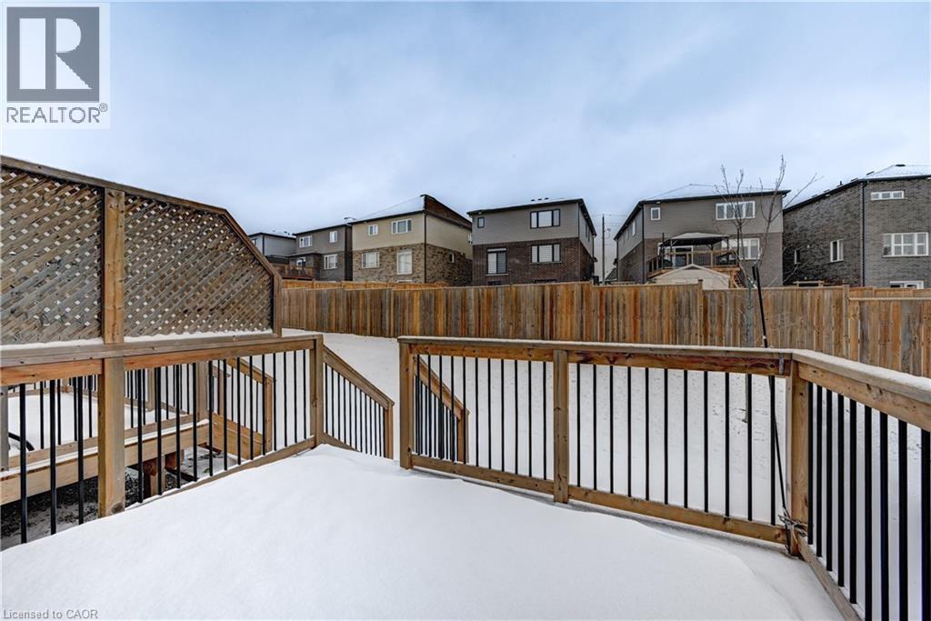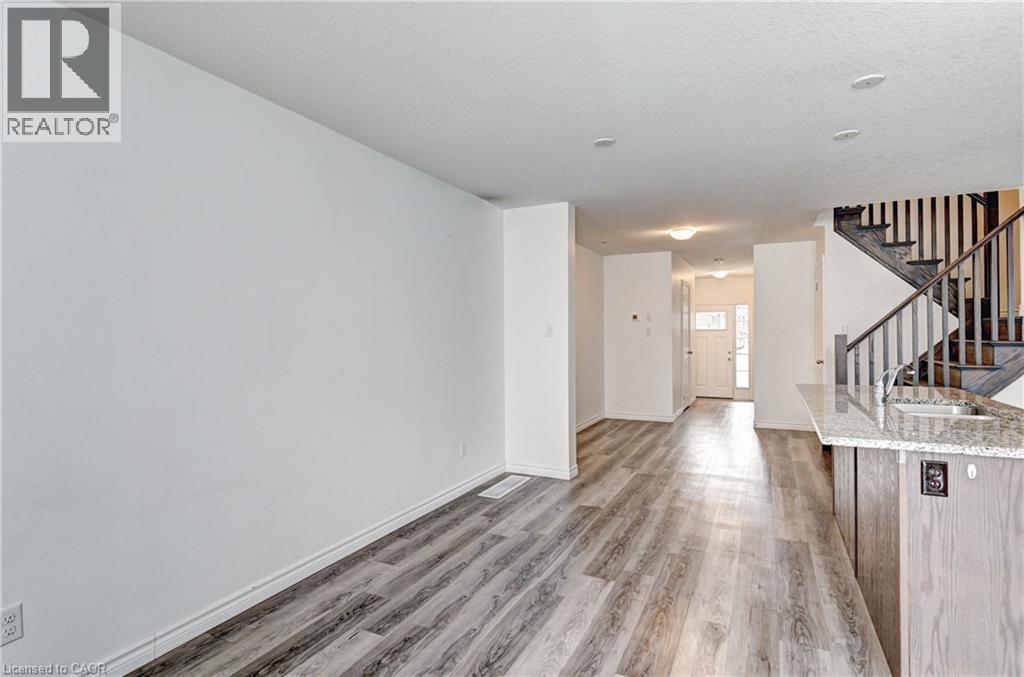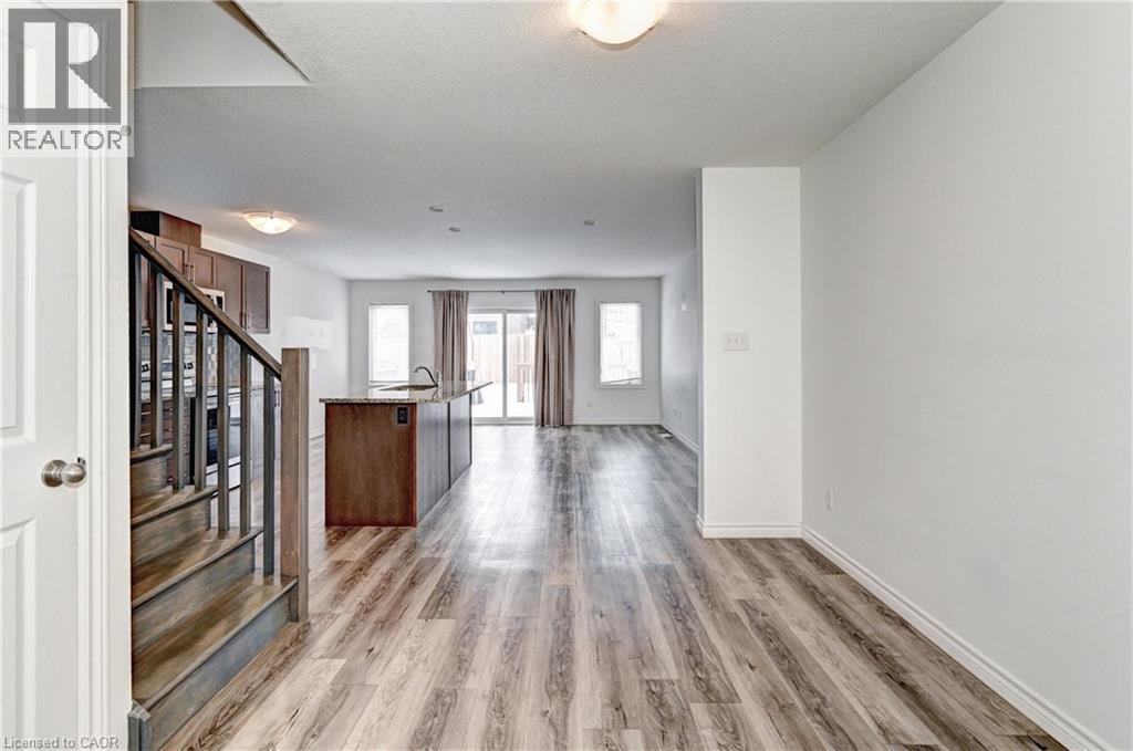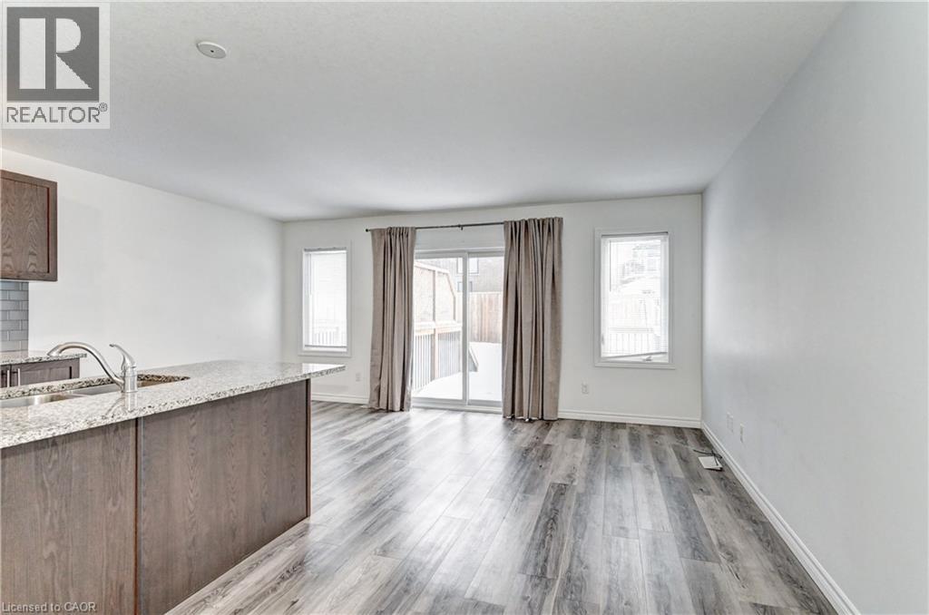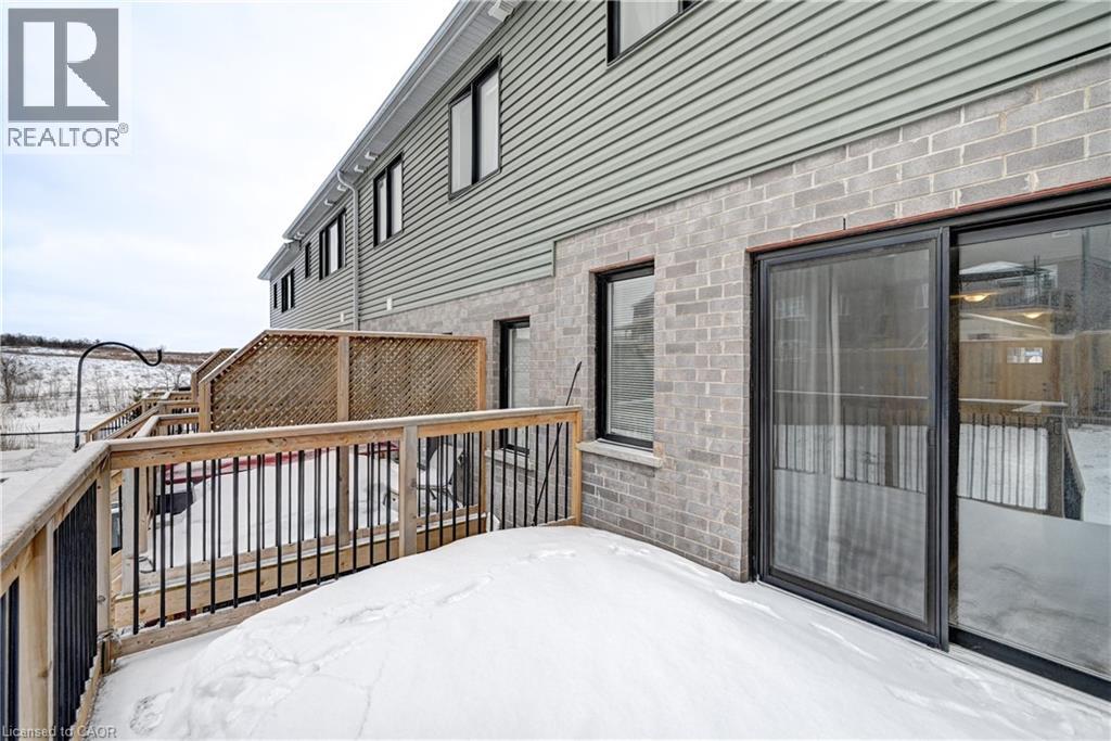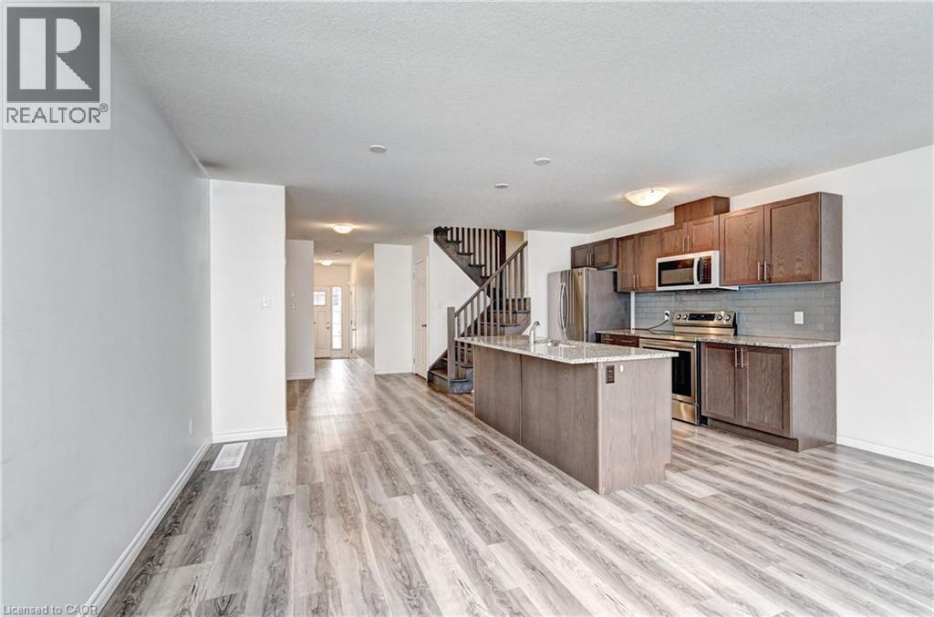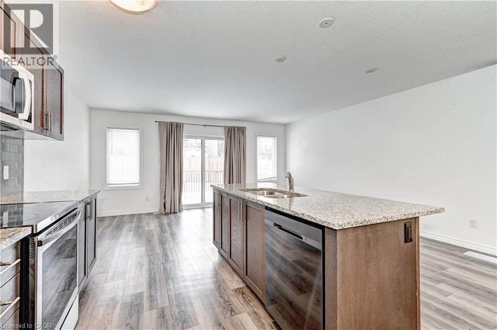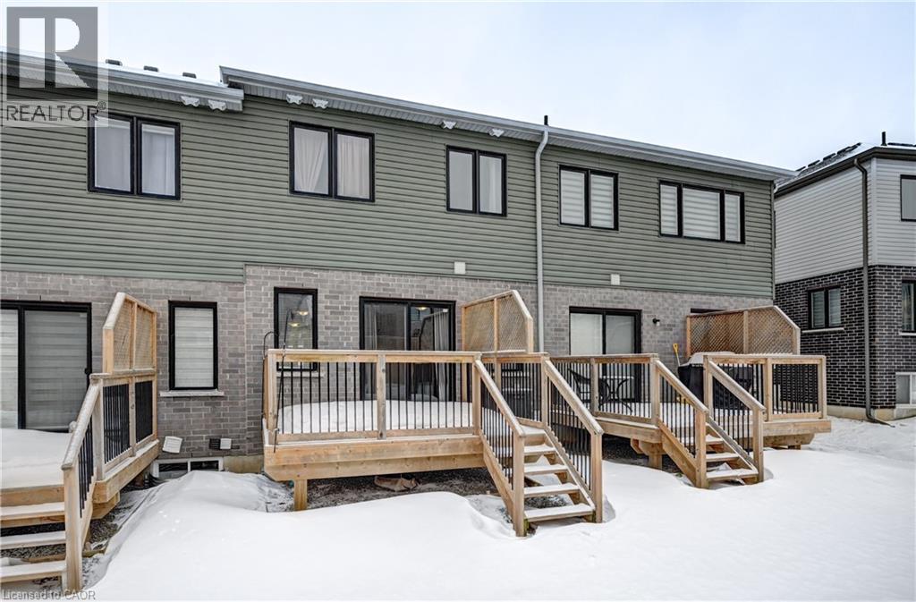 Enjoy comfortable living in a well-maintained townhome located in one of Kitchener's fast-growing, family-friendly communities. The main floor offers an open-concept layout with hardwood flooring throughout, featuring a functional kitchen with stainless steel appliances including a built-in microwave, custom backsplash, undermount sink, and breakfast bar. The breakfast area provides a walkout to a large 12-foot deck and a generous backyard. The upper level includes a primary bedroom with a walk-in closet and 4-piece ensuite, along with additional spacious bedrooms filled with natural light. A conveniently located second-floor laundry room with sink eliminates the need to access the basement for daily use. The unfinished basement offers flexible space suitable for storage, a small gym, or a home office. Ideally situated close to public and Catholic schools, parks, playgrounds, walking trails, greenbelts, the Huron Natural Area, community centre, medical clinics, childcare facilities, grocery stores, restaurants, pharmacies, and Sunrise Shopping Centre. Easy access to public transit and Highway 401 via Homer Watson Boulevard makes this location convenient for commuters traveling to Waterloo, Cambridge, Guelph, or the GTA. (70035170)