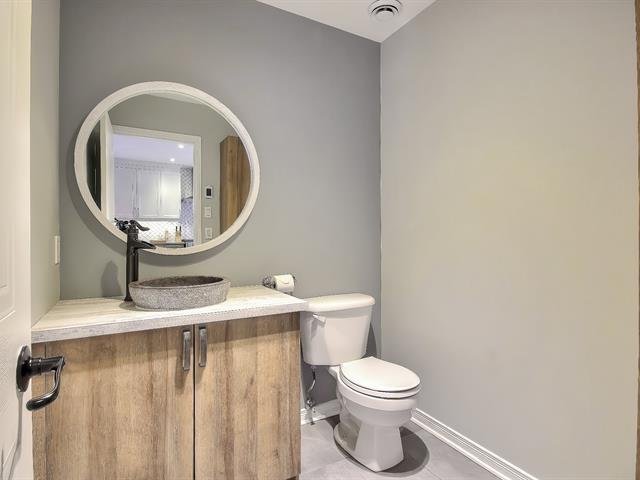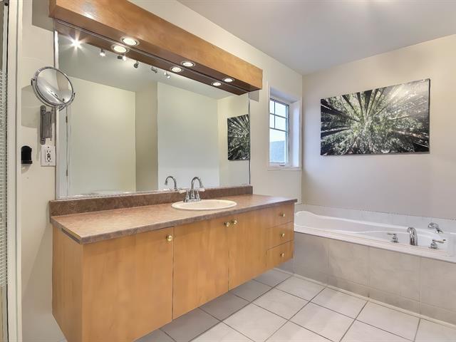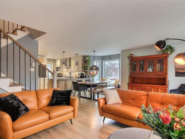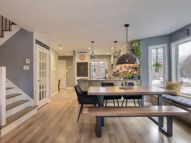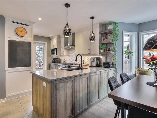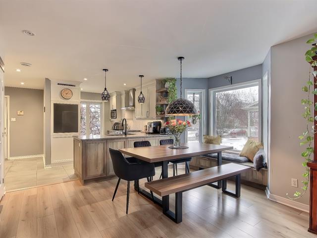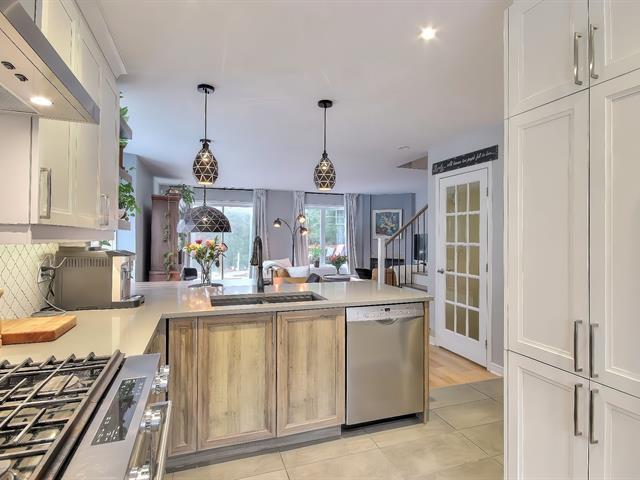 Looking for a safe, family-friendly, and harmonious neighborhood? Look no further! Almost everything for children is within walking distance: school, daycare, park..train station to Mtl..golf course..highway..it's all here..The kitchen has been redone and reconfigured, and the powder room has been renovated..heated ceramic tile flooring on the main floor, which is spacious and inviting and features a natural gas fireplace..There's a large patio with a hot tub in a private setting with a mature cedar hedge..3 bedrooms on upped level and MBR with w-in..Staircase has been rebuilt with a new wooden railing..finished basement with access to garage (56468737)