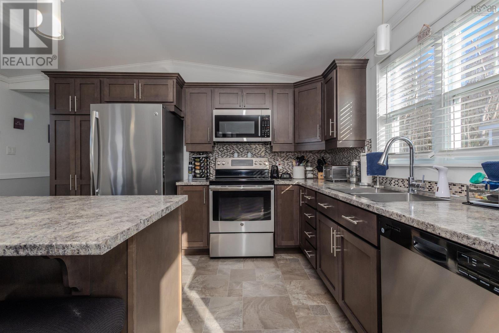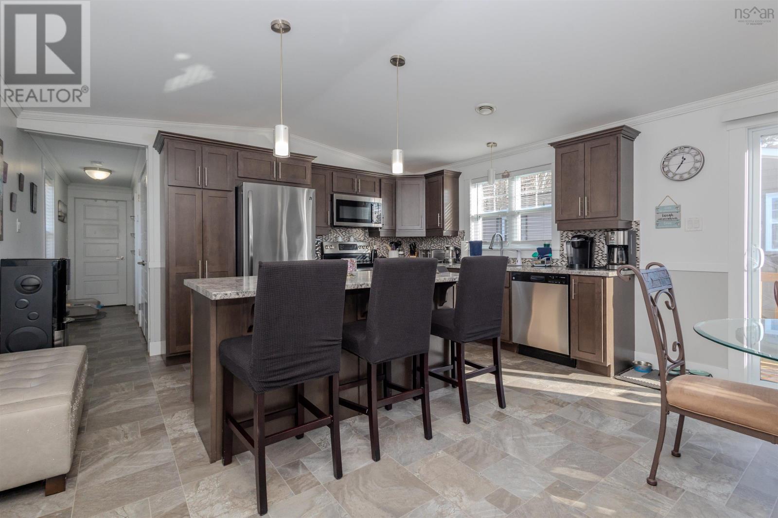 Welcome to 6 Third Street located in the Heather Mobile Park a truly stunning 3-bedroom, 2 full bathroom mobile home that has been meticulously maintained and beautifully cared for, with pride of ownership evident from the moment you arrive. Step inside and youre immediately greeted by abundant natural light and an open-concept layout connecting the kitchen, dining, and living areasperfect for everyday living and entertaining. The living room is a showstopper, featuring a striking accent rock wall with a built-in electric fireplace, creating a warm and inviting focal point. Comfort is top of mind with electric heat and an 18,000 BTU heat pump, offering efficient heating during Cape Bretons cooler months and refreshing air conditioning throughout the summer. Sliding patio doors lead to a private back deck, ideal for barbecuing. To the right of the main living space, youll find a spacious primary bedroom complete with a large walk-in closet and a beautiful en suite bathroom. On the opposite side of the home are two additional generously sized bedrooms and a second four-piece bathroom, offering plenty of space for family, guests, or a home office. This home showcases impressive craftsmanship, vaulted ceilings, and a thoughtful layout throughout. Move-in ready and waiting for its next ownersthis is a place youll be proud to call home. (231838279)
