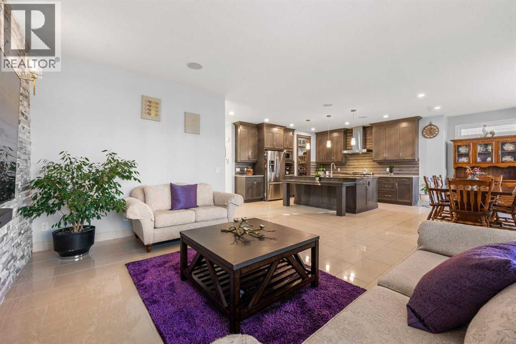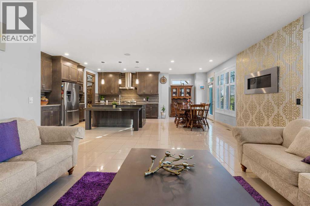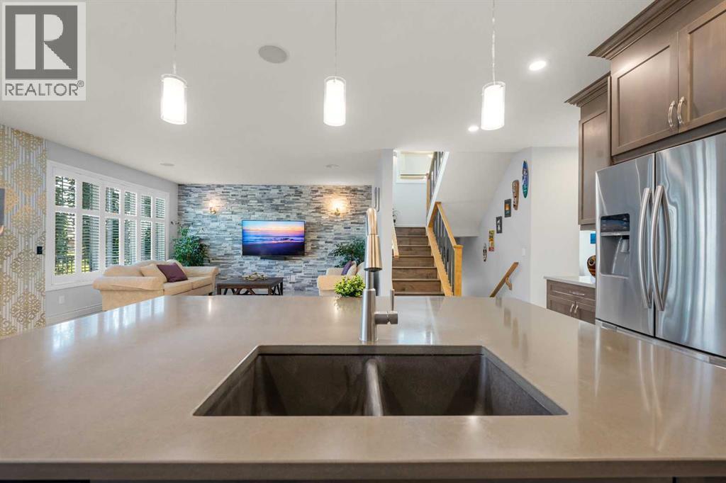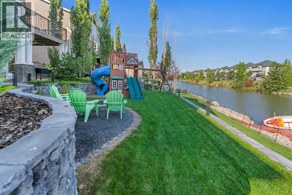 ** Stunning Home with a Walkout Basement Backing onto the Canal with a private dock** Manicured Landscaping Front & Back Yard | Canal Views | 2,696 SqFt | 4 Bedrooms | 3.5 Bathrooms | Modern Finishes | Accent Walls | Electric Fireplace | Chef's Kitchen | Full Height Cabinets | Stainless Steel Appliances | Gas Stove | Chimney Hood Fan | Oversized Kitchen Island with Extended Barstool Seating | Walkthrough Pantry | Main Level Office/Den | Vaulted Ceilings | Multiple Ceiling Fans | Central Air Conditioning | Grandiose Bedrooms | Spa Ensuite Bath | Steam Shower | Upper Level Bonus Room | Upper Level Laundry | Finished WALKOUT Basement | Entertainer's Palace | LED Pot Lighting Throughout | Rec Room/Media Centre | Dry Bar | Expansive Composite Deck | Concrete Patio to Walkout Basement | Artificial Turf | Stone Retaining Walls | Firepit | OVERSIZED Double Attached Garage. Welcome home! This stunning 2-storey family home is full of incredible modern finishes, high vaulted ceilings, LED pot lighting, large windows & ample living space. The main level has a beautiful open floor plan kitchen, dining & living area encouraging entertaining friends & family. The sparkling chef's kitchen is outfitted with full height cabinets, stainless steel appliances, a gas stove, statement piece chimney hood fan & a beautiful centre island. The island has an extended barstool seating area great for small meals. The kitchen has a walkthrough pantry that leads to the interior garage door for an easy grocery drop. The dining room is paired with a door that leads to your composite deck with views of the canal. The deck has a gas line built in your summer BBQs. The living room has a stone accent wall adding both texture & style to this space. The main level office/den sis a great addition for a work from home lifestyle. The vaulted ceilings compliments the true size of this home. Upstairs holds 3 bedrooms, a bonus room & laundry room. The primary retreat is a personal oasis with a view of the canal , a walk-in closet & private ensuite. The ensuite has double vanities, a walk-in steam shower with a built-in bench and a cheater laundry door. Bedrooms 2 & 3 upstairs are both a generous size & share the 4pc bath with a tub/shower combo. The bonus room is a great space to relax & unwind in the evenings. The upper level laundry room is outfitted with front loading washer & dryer with a folding shelf above, cabinetry for storage & a sink for prep. Downstairs, the walkout basement is made to entertain! The dry bar & rec room are inviting & make an incredible hobby room for your liking. The basement holds the 4th bedroom in this home along with another 4pc bath. Step outside to the picturesque backyard with polished landscaping & incredible living space. The concrete patio is covered from the upper deck providing with a covered dining space. The stone retainer walls add depth to the space. Walk out onto your private deck & enjoy a beverage at the end of your day. Hurry & view this stunning home today! (31516112)