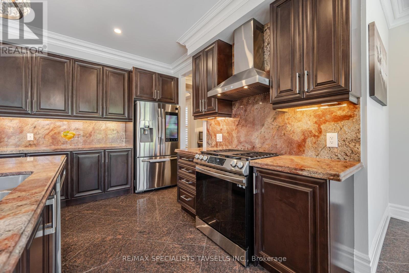 Welcome to this Brookfield built luxurious 3,560 sq ft above grade , with an additional 1,250 + sq ft finished Basement. Set on a 157 ft premium, pie shaped extended Lot offers 5 spacious bedrooms and is filled with premium finishes. Inside, ten-foot double doors open to a bright entryway. A frosted glass door leads into the private office, which is equipped with custom built-in cabinets and a matching desk. The dining room features a coffered ceiling and a Butlers servery that connects to a pantry and a spacious eat-in kitchen with a large island and stainless-steel appliances. The family room boasts a cozy Napolean gas fireplace. The main level also includes a fifth bedroom, a two-piece bathroom, and a laundry/mud room with custom cabinets and direct access to the garage. The upper level offers a spacious primary bedroom with a five-piece ensuite, complete with custom dual vanities, a walk-in shower, a jet tub, and a custom walk-in closet. The second and third bedrooms share a Jack and Jill four-piece bathroom, while the fourth bedroom has its own three-piece ensuite.The finished Basement space features a recreation room, a three-piece bathroom, and a six-person cedar sauna, perfect for relaxation. The exterior features a two-car garage with an exposed concrete driveway and path that extends to a covered front porch, wrapping around the side of the house to guide you to the rear yard and patio with a convenient walk-out door. Property has multiple upgrades pls see attached feature sheet (41922862)