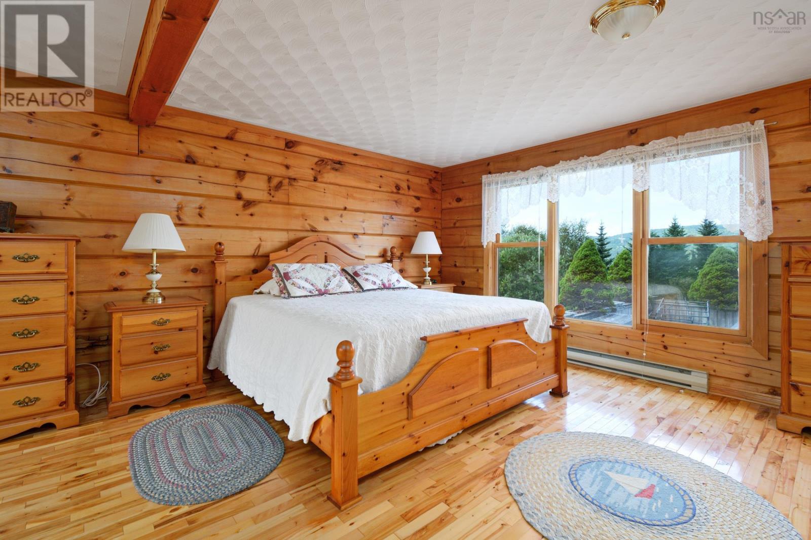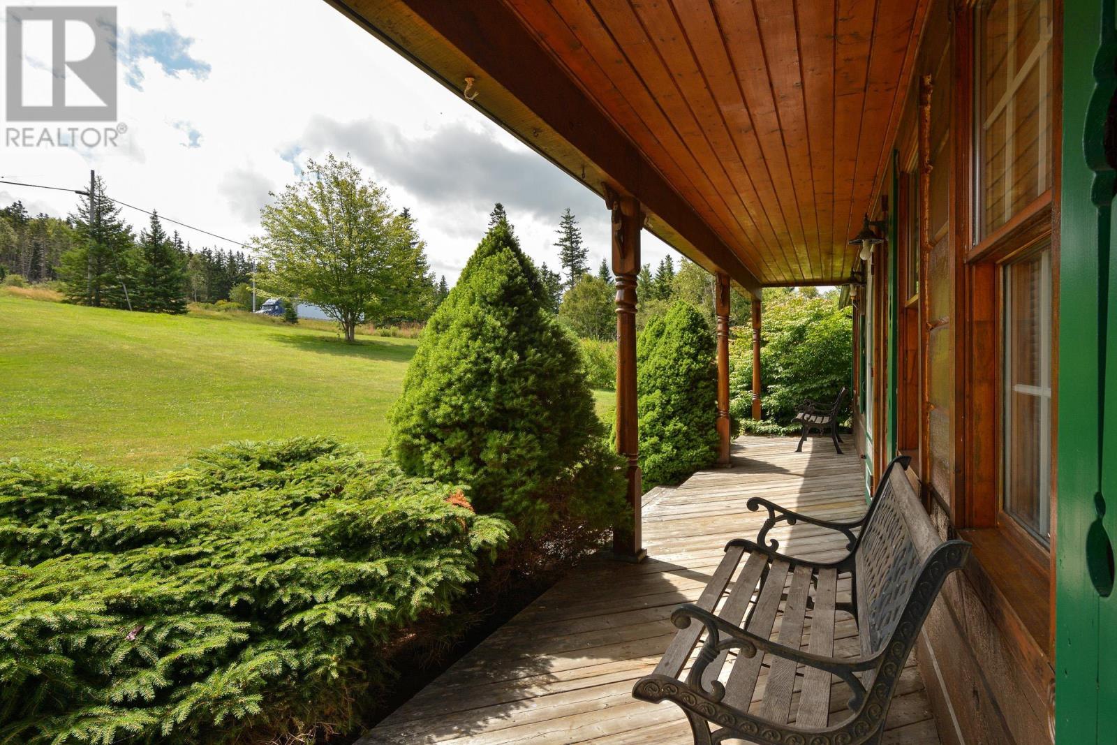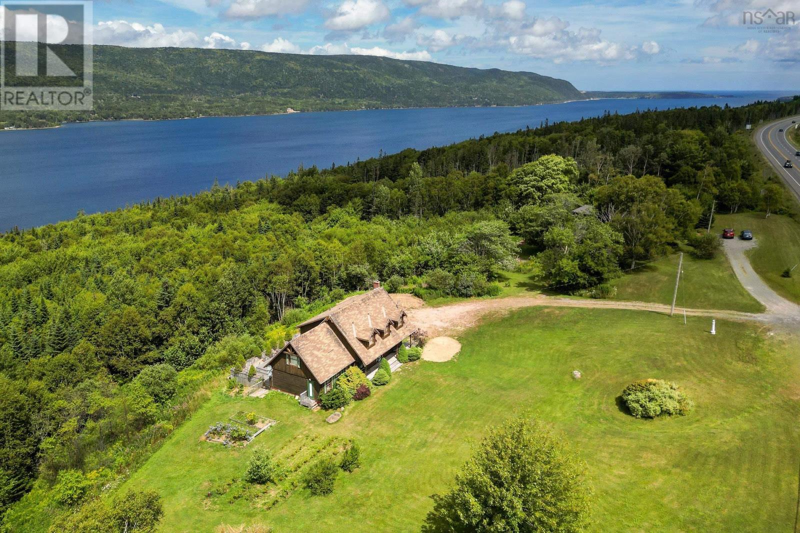 Set on 6.5 acres overlooking the Bras dOr Lake channel, Kellys Mountain, and the Seal Island Bridge, this warm and welcoming log home offers space, views, and flexibility in one of Cape Breton Islands most scenic and convenient locations. With approximately 230 feet of waterfront, the property provides the option to open up sightlines or create a private path down to the water, while still enjoying privacy and elevation above the shoreline. Inside, the home is filled with natural wood and hardwood floors, creating a comfortable and timeless feel. The main level features a bright kitchen with updated cabinetry and newer appliances, generous living and dining areas, two full bathrooms, and a large primary bedroom with exterior access to a back deckperfect for enjoying the views and quiet surroundings. Upstairs are four additional bedrooms and another full bathroom, offering plenty of space for family, guests, or home offices. Previously operated as a Bed & Breakfast, the layout lends itself well to hosting or future rental opportunities, while still functioning beautifully as a full-time residence. The home is being sold furnished, allowing for an easy transition for a new owner. Outside, the acreage offers room to garden, explore, or simply enjoy nature, with established high-bush blueberry plants producing in season. Centrally located, you are just 15 minutes from North Sydney, 30 minutes to Sydney, and 25 minutes to Baddeck, with quick access to the Cabot Trail and many of Cape Bretons most loved destinations. A rare opportunity to own a substantial waterfront home with views, land, and versatility in Victoria County, where no foreign buyer restrictions apply. (231838974)