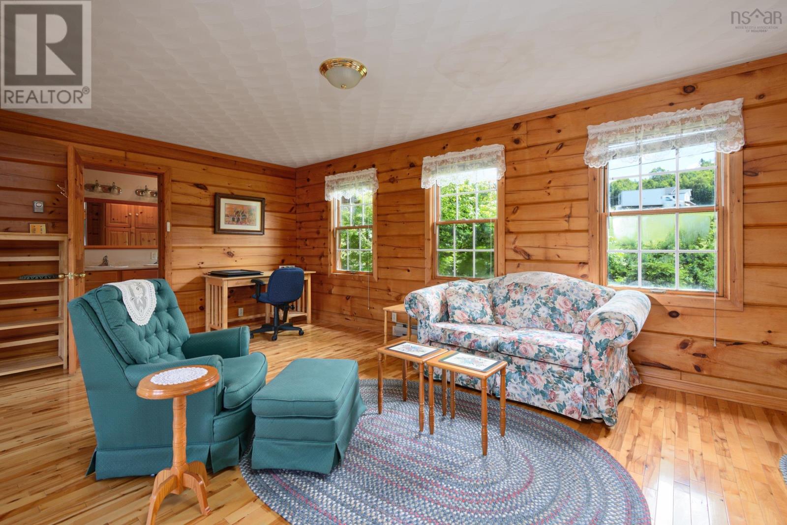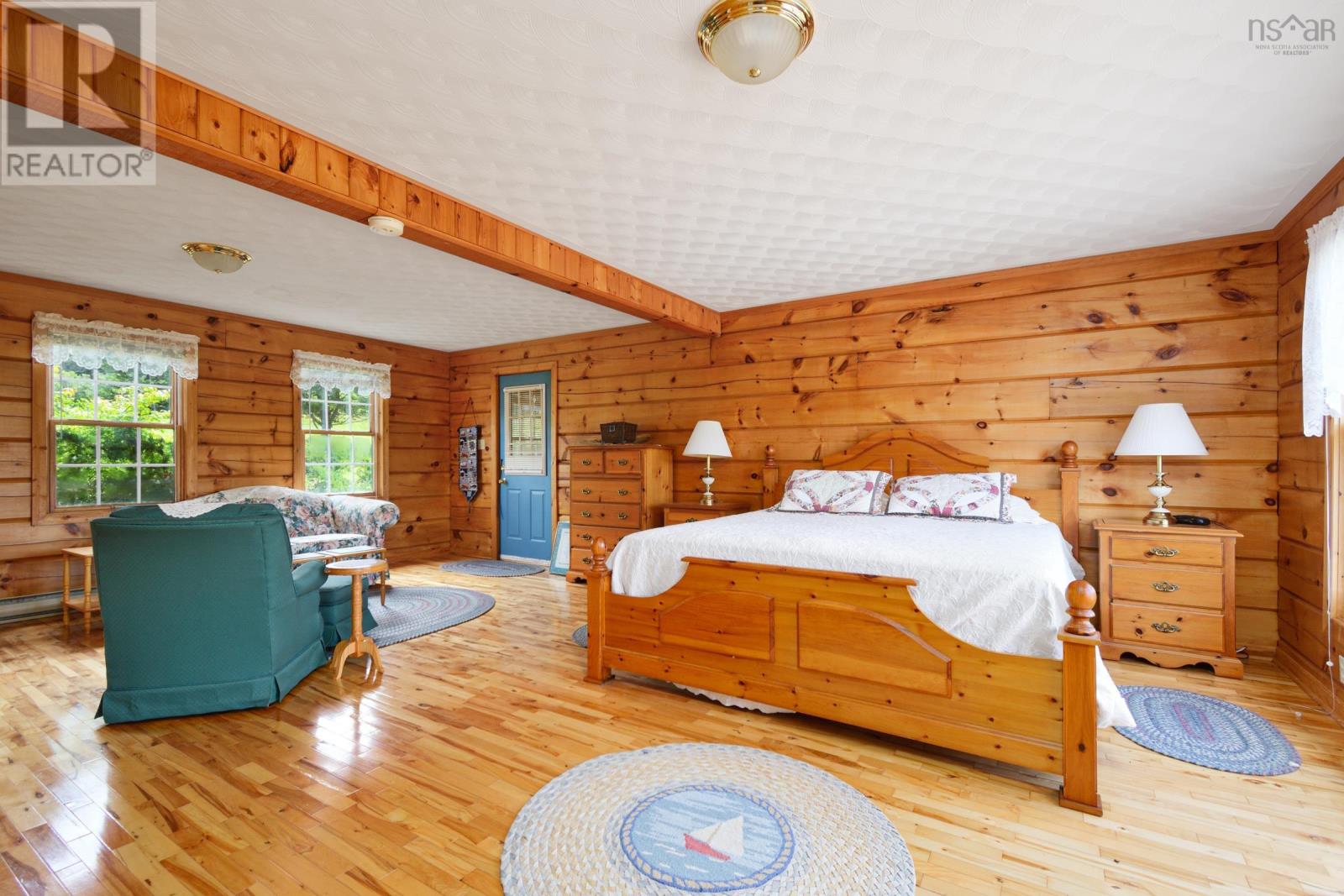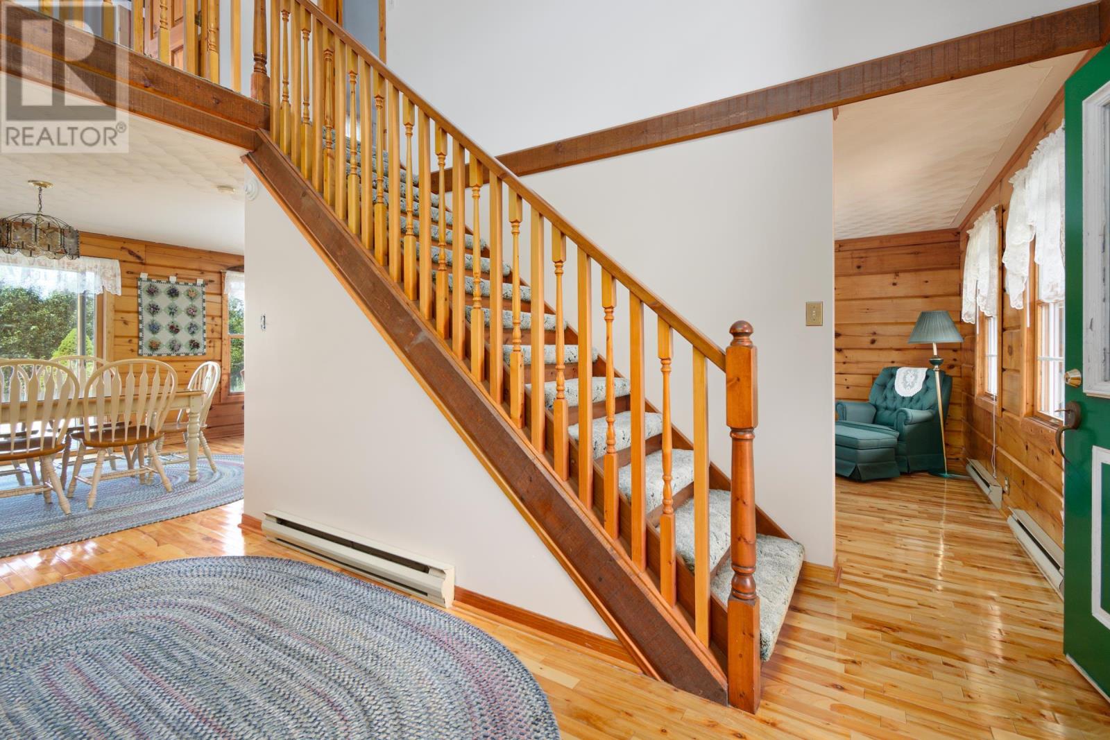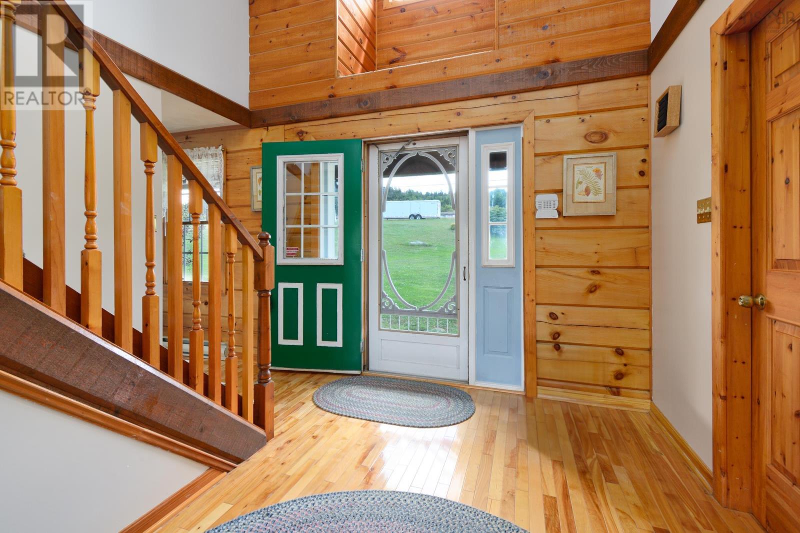 Set on 6.5 acres overlooking the Bras dOr Lake channel, Kellys Mountain, and the Seal Island Bridge, this warm and welcoming log home offers space, views, and flexibility in one of Cape Breton Islands most scenic and convenient locations. With approximately 230 feet of waterfront, the property provides the option to open up sightlines or create a private path down to the water, while still enjoying privacy and elevation above the shoreline. Inside, the home is filled with natural wood and hardwood floors, creating a comfortable and timeless feel. The main level features a bright kitchen with updated cabinetry and newer appliances, generous living and dining areas, two full bathrooms, and a large primary bedroom with exterior access to a back deckperfect for enjoying the views and quiet surroundings. Upstairs are four additional bedrooms and another full bathroom, offering plenty of space for family, guests, or home offices. Previously operated as a Bed & Breakfast, the layout lends itself well to hosting or future rental opportunities, while still functioning beautifully as a full-time residence. The home is being sold furnished, allowing for an easy transition for a new owner. Outside, the acreage offers room to garden, explore, or simply enjoy nature, with established high-bush blueberry plants producing in season. Centrally located, you are just 15 minutes from North Sydney, 30 minutes to Sydney, and 25 minutes to Baddeck, with quick access to the Cabot Trail and many of Cape Bretons most loved destinations. A rare opportunity to own a substantial waterfront home with views, land, and versatility in Victoria County, where no foreign buyer restrictions apply. (231838974)