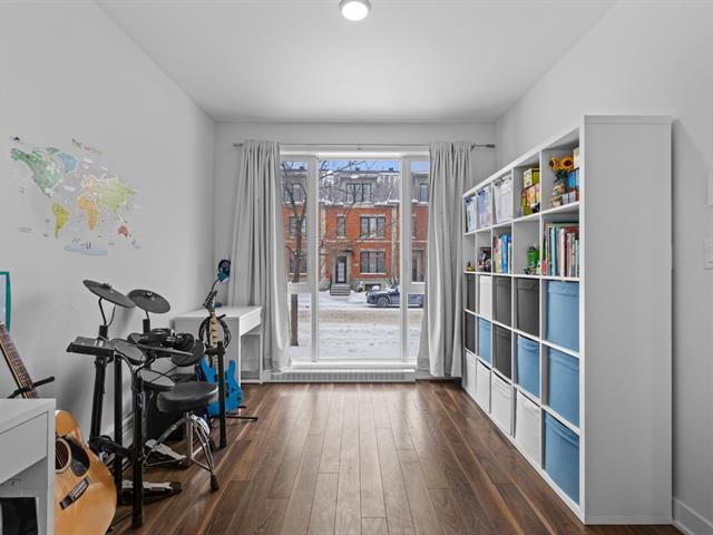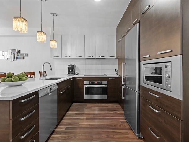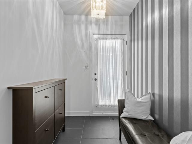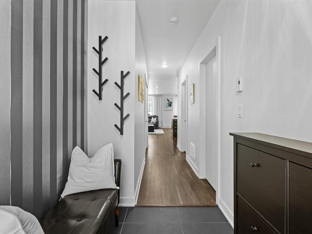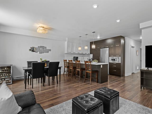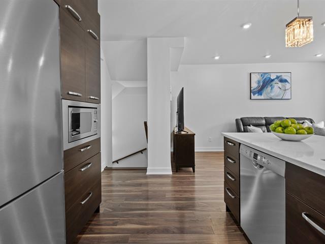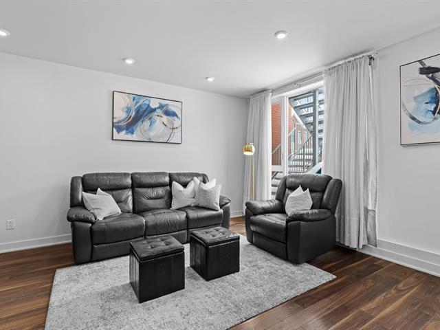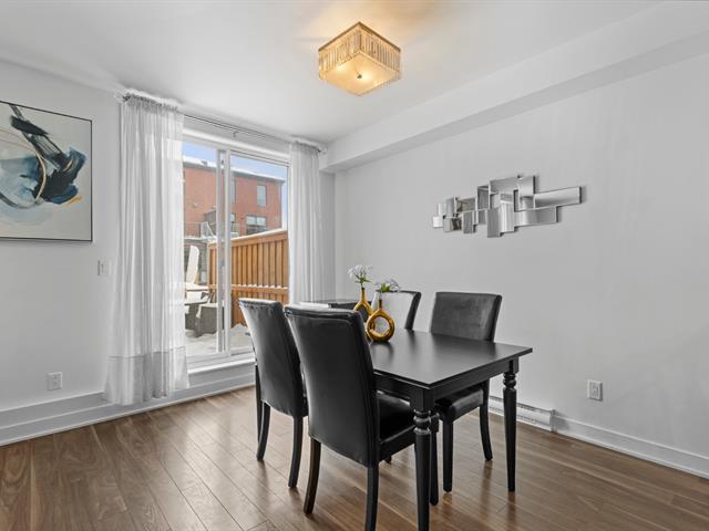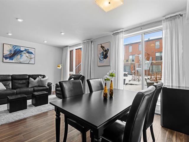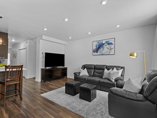Two storey stacked condo ideally located in Bois Franc. This unit offers an open concept layout combining the living room, dining area and kitchen, enhanced by oversized windows and an outdoor patio in courtyard. This condo features 3 bedrooms, 2 bathrooms, a generous storage space on the lower lever and direct access to the garage. Within walking distance of Faubourg Bois Franc, IGA, the train station, REM and many nearby services. (45418165)