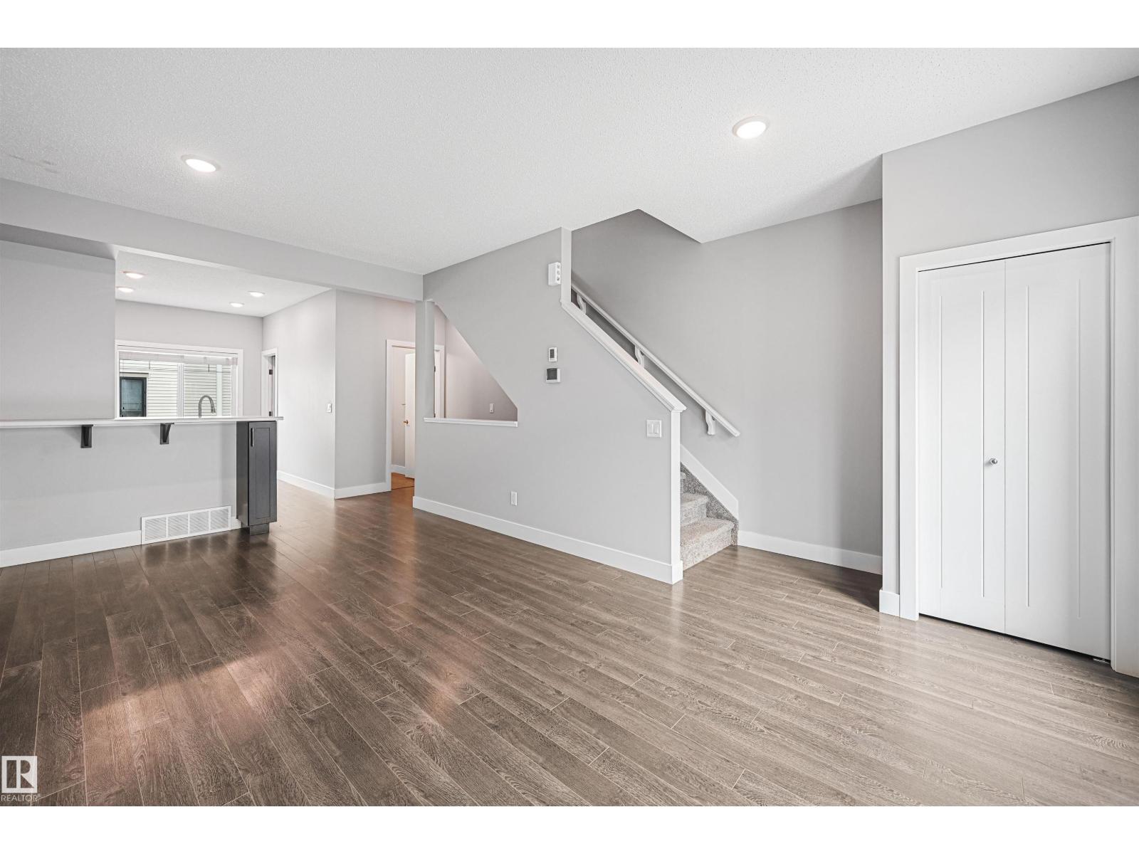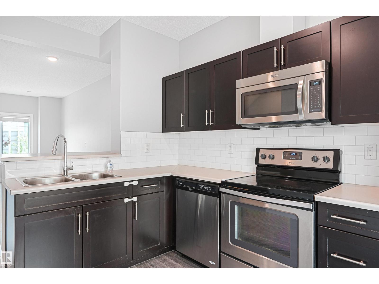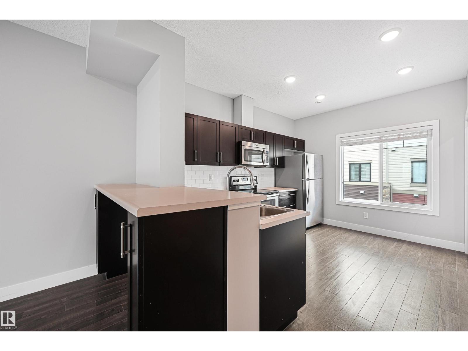 Absolutely stunning and spacious 2 bedroom/2.5 bath townhome in desirable Walker. Main floor boasts 9' ceilings & quality finishings. The gorgeous kitchen has SS appliances, walk-in pantry & eating bar. Living room features an attached balcony to enjoy the fresh air & green space. The main level is equipped with a 2.5 bath & vinyl flooring. Upper level boasts 2 well-sized bedrooms. Primary bedroom has 3pc ensuite & walk in closet. Plus 2nd 4pc bathroom upstairs & laundry. Other features include a single attached garage, a flex room for office or play room, plenty of storage, energy-efficient mechanical including tankless hot water for a lower utility bill. This well maintained complex offers visitor parking & is conveniently located close to shopping, walking trails & lake. Quick proximity to Anthony Henday, South Common, schools & public transportation. A must see! (33708344)