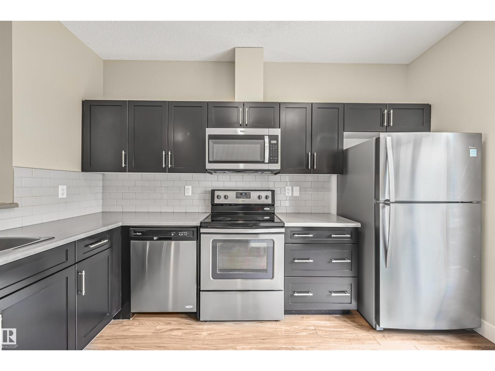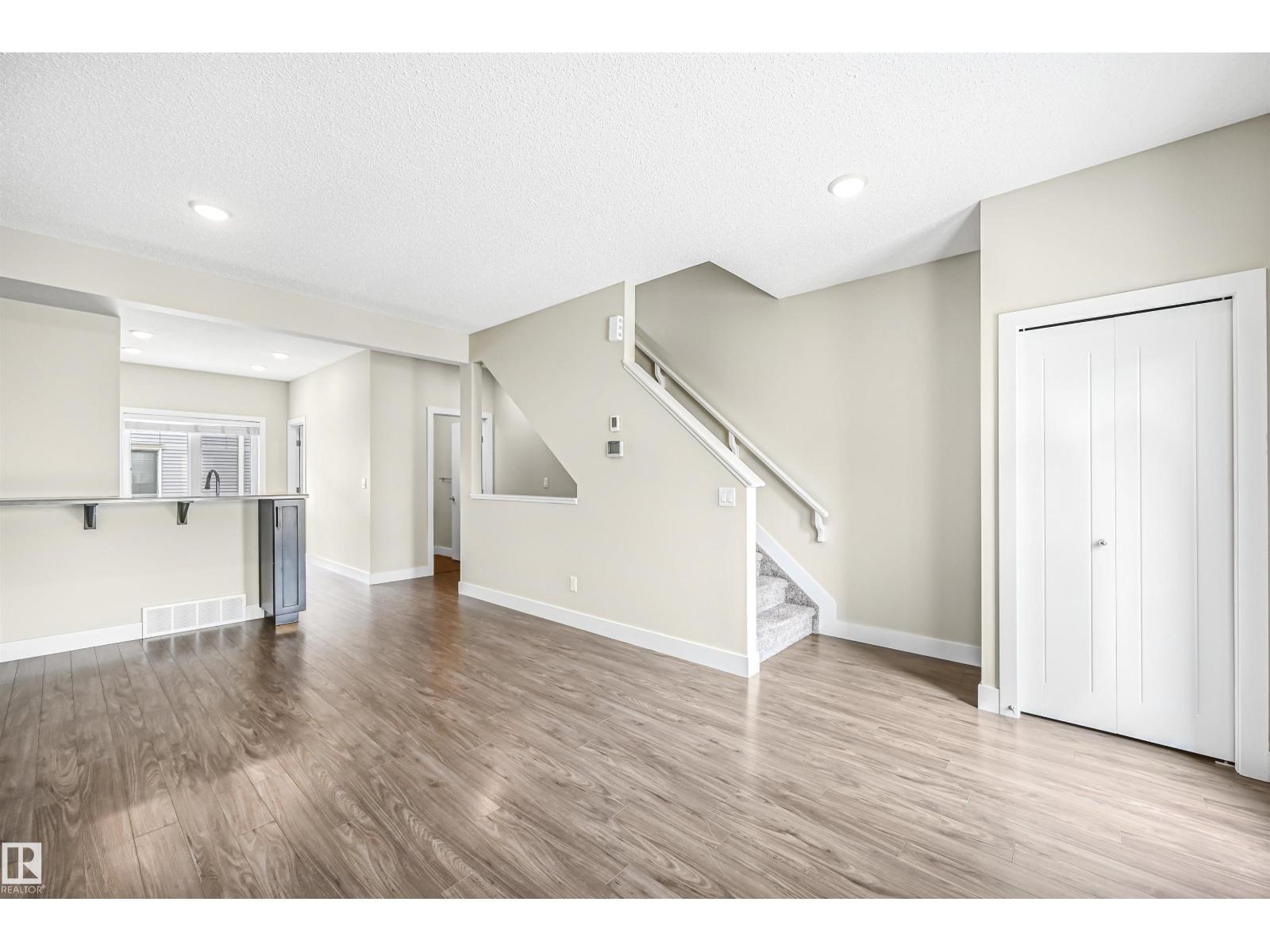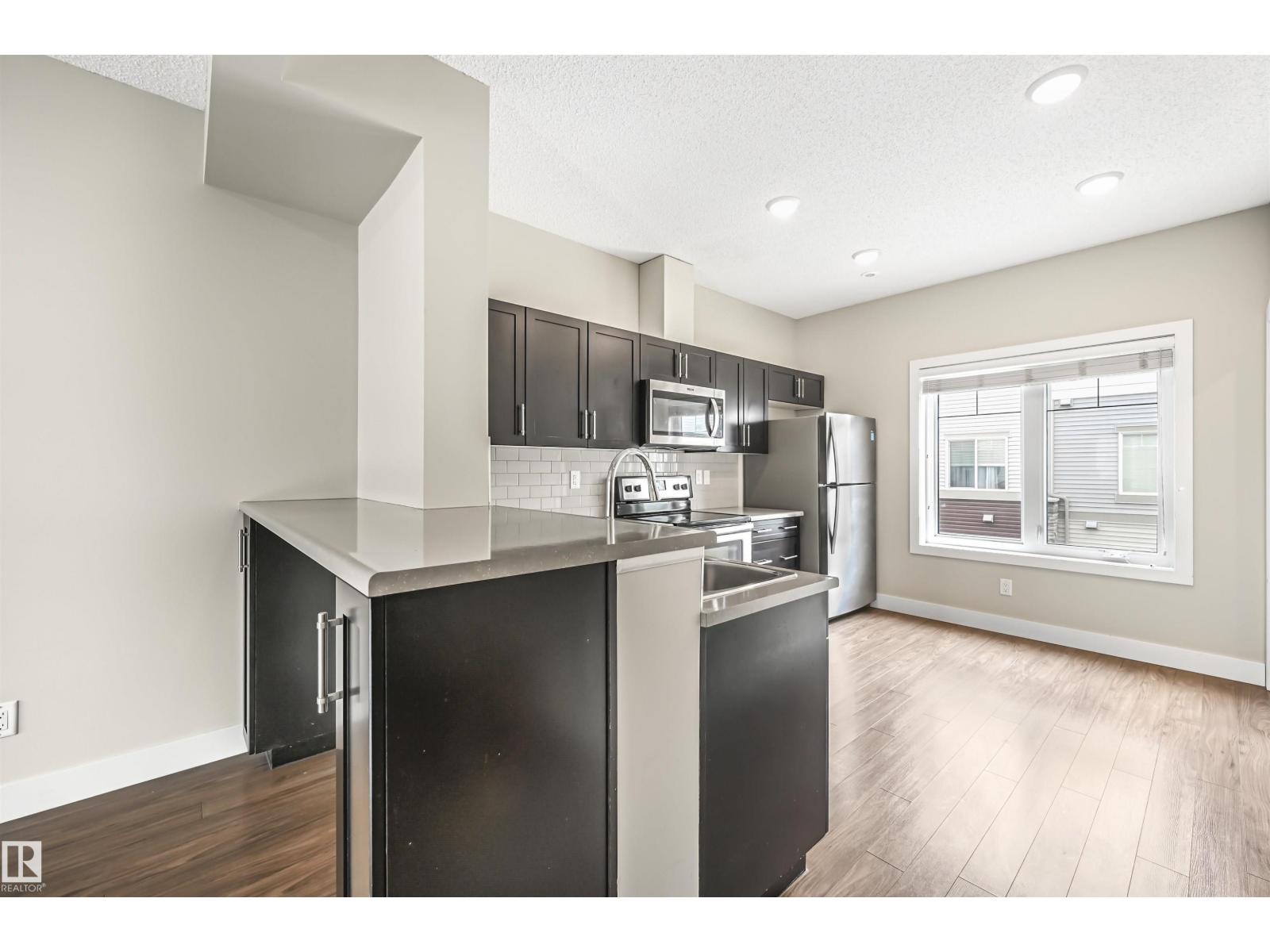 Welcome to this stunning and well-maintained spacious 2 bedroom/2.5 bath townhome in the desirable Walker. Main floor boasts a roomy open concept layout, 9' ceilings & quality finishings. The functional chef's kitchen includes S/S appliances, walk-in pantry & eating bar. Living room features an attached balcony to enjoy the fresh air & green space. The main level is equipped with a half bath & vinyl flooring. On the upper level, you'll find two well-sized bedrooms. Primary bedroom has 3pc ensuite & walk in closet. A second full bathroom and laundry closet complete the upper level. Flex room on ground level is perfect for a home office space or extra storage. Other features include a single attached garage and energy-efficient mechanical including tankless hot water for a lower utility bill. This well maintained complex offers visitor parking & is conveniently located close to shopping, walking trails & lake. Quick proximity to Anthony Henday, South Common, schools & public transportation. A must see! (33708346)