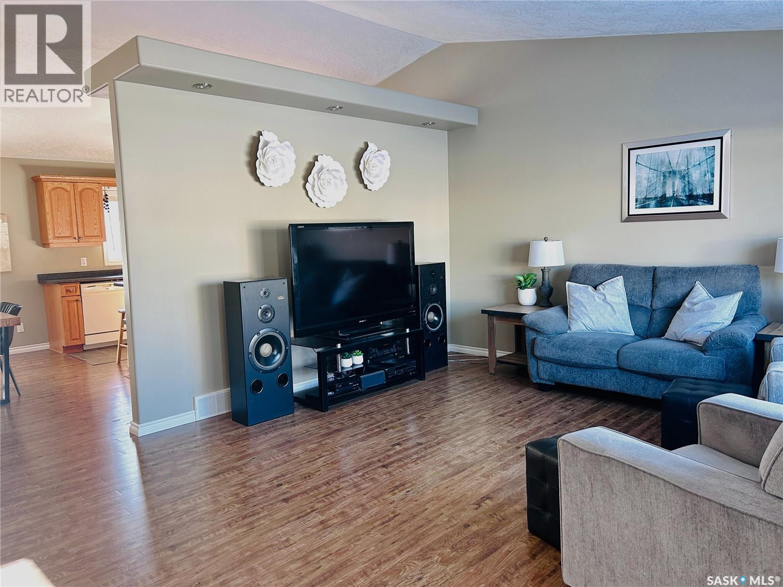 Welcome to this beautiful, meticulously kept 1,200 sq. ft. bungalow offering 4 bedrooms and 2.5 bathrooms in an unbeatable location. Just steps from the elementary school, within walking distance to downtown amenities, and only three blocks from the recreation centre, this home is ideal for families and active lifestyles. The open-concept kitchen, dining, and living area features vaulted ceilings, creating a bright and spacious atmosphere perfect for everyday living and entertaining. Outside, enjoy a mature, fully fenced yard complete with a cozy firepit area for outdoor gatherings. A 26' x 28' heated garage provides ample space for vehicles, storage, and projects. This exceptional property offers comfort, convenience, and pride of ownership throughout. (29265331)