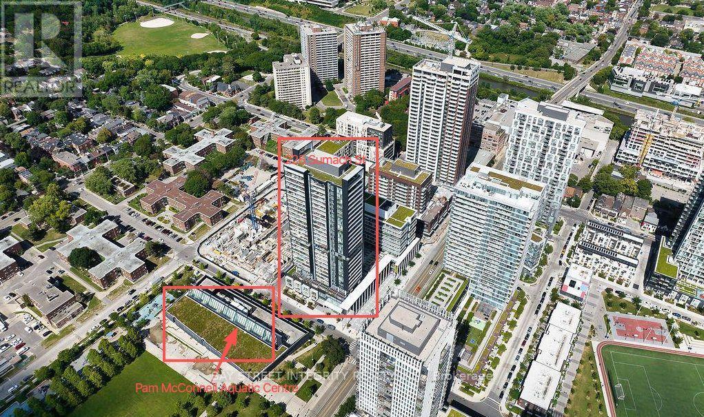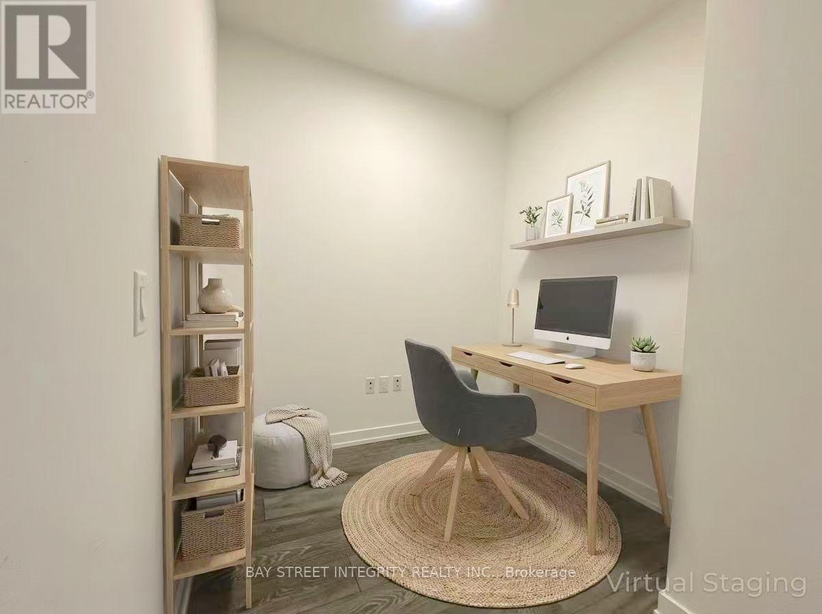 Welcome to this sun-filled 1+Den suite at Daniels' modern boutique condo, 613 sq ft of interior living space plus an 83 sq ft balcony. Parking and locker are included. Enjoy a bright living space enhanced by 9-foot ceilings and floor-to-ceiling windows. This well-designed open-concept layout features a sleek modern kitchen with quartz countertops, flowing seamlessly into the spacious living area.The fully enclosed den offers excellent flexibility and can be used as a home office, guest room, or creative space, delivering both style and functionality.Residents enjoy 24/7 concierge and security, a fully equipped gym, outdoor BBQ terrace, and a stylish resident lounge. Step to the TTC streetcar right at your doorstep, with easy access to DVP & Gardiner, and minutes to George Brown College, University of Toronto, and TMU. (41924503)