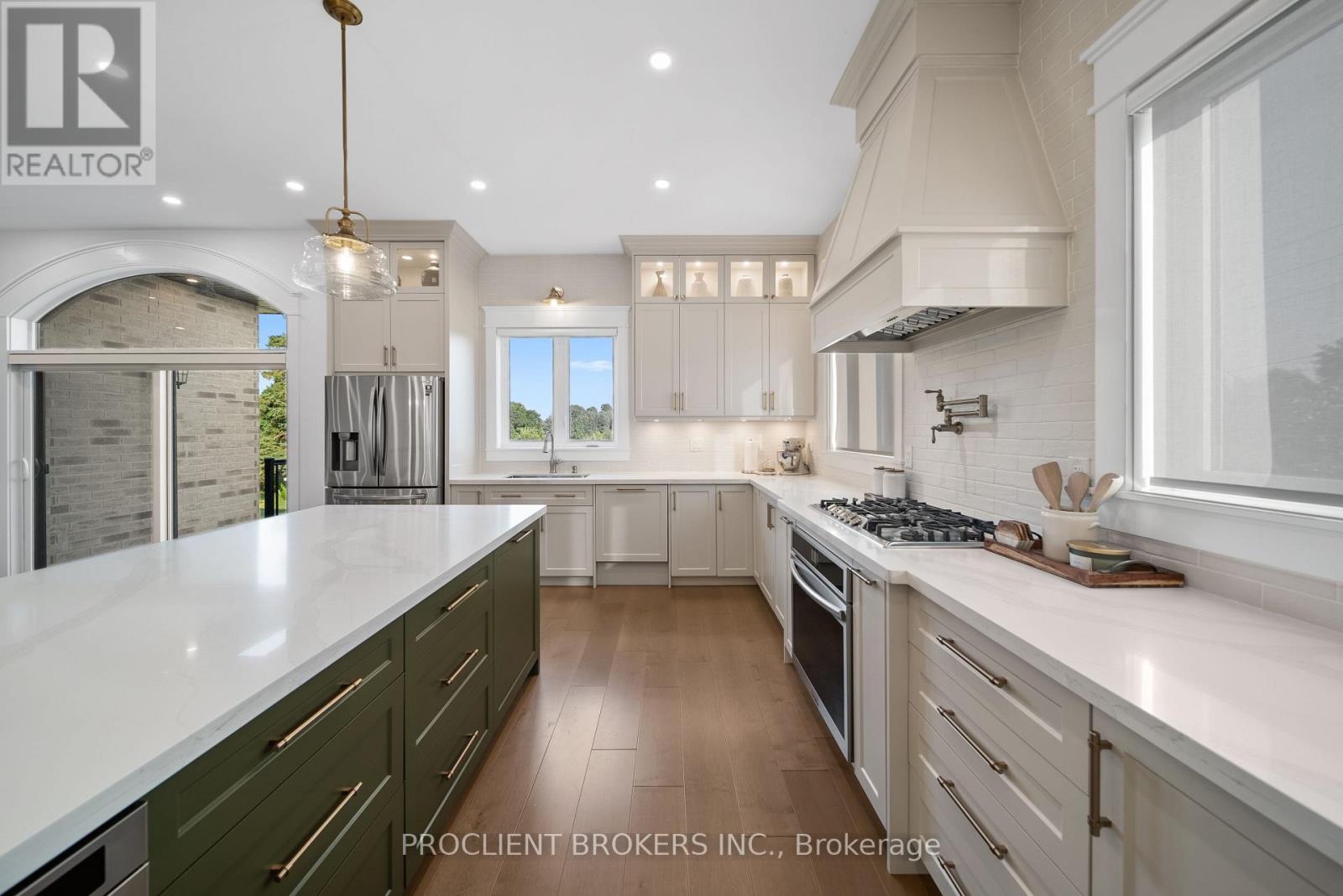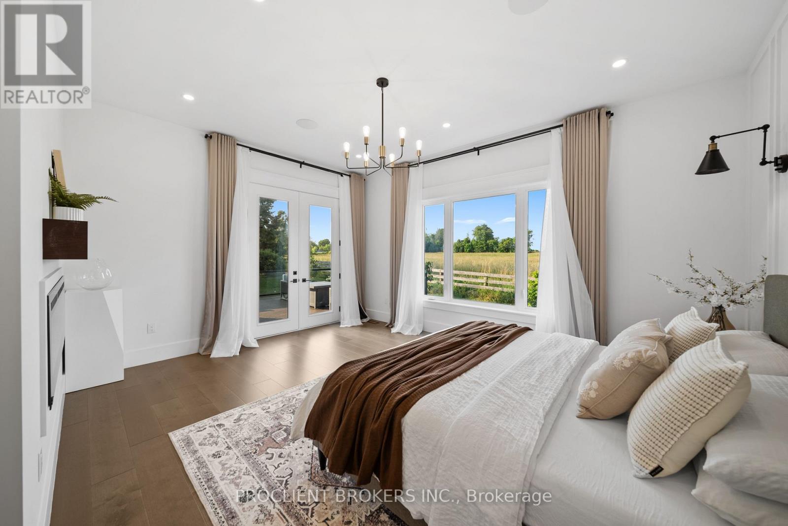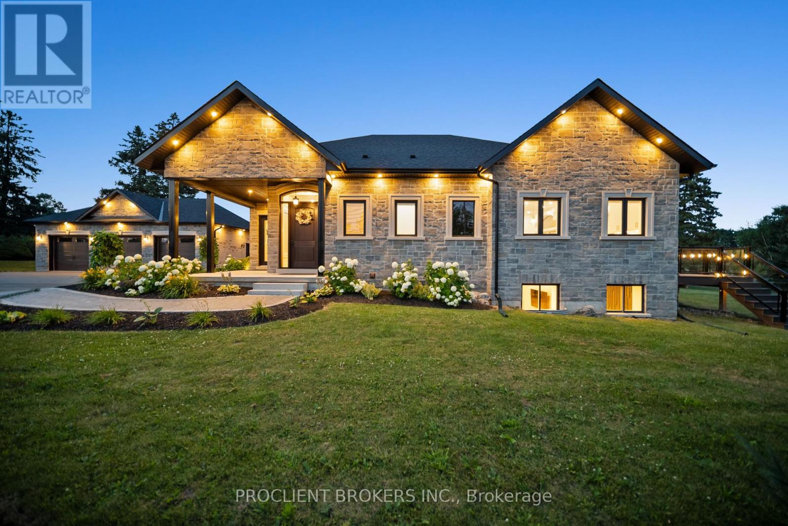 OPEN HOUSE This Sat 2-4PM-MUST SEE VIRTUAL TOUR Contemporary elegance meets estate living. Situated on a beautifully manicured 1.11-acre lot, this custom-built 2022 bungalow delivers Approx 4,700 sqft of meticulously designed living space, with 5 beds, 5 baths, and an oversized 3-car garage. Just 3 minutes from Hwy 401, this luxury residence offers seamless access while surrounded by privacy and natural beauty. Inside, you'll find 10ft flat ceilings, solid 8ft doors, and refined craftsman-style millwork throughout. The designer kitchen is a showpiece with a massive quartz island (4x9ft), floor-to-ceiling custom cabinetry, and premium built-in appliances. Ideal for everyday living and upscale entertaining. The great room stuns with a 17ft cathedral ceiling, exposed wood beams, a 42" Napoleon fireplace, built-inParadigm surround sound, and oversized patio doors leading to a glass-railed composite deck. A stylish family room offers a second 72" fireplace and in-ceiling audio for immersive ambiance. The primary suite isa private sanctuary with its own fireplace, custom walk-in closet, luxury ensuite, and French doors to the rear deck. Every bedroom on the main floor includes built-in audio and custom closets. The fully finished 9ft ceiling basement redefines modern living with engineered hardwood, a custom-built library with ladder, wet bar, and two spacious bedrooms each with its own ensuite. At its heart is a $100K+ professionally built11-channel 8-seater home theatre, fully insulated for premium acoustics. Outdoors, the property is a masterpiece: two composite decks with gas hookups, landscape lighting, a fire pit, volleyball setup, and an apple & pear orchard, complemented by fruit trees, berry patches, and grape vines. The garage is EV ready(for 2), fully insulated, with premium carriage-style doors, built-in racks, and Pro-slat tool walls ideal for car lovers or hobbyists. This is more than a home, its an experience. A retreat. A lifestyle. And it's ready for yo (41924590)