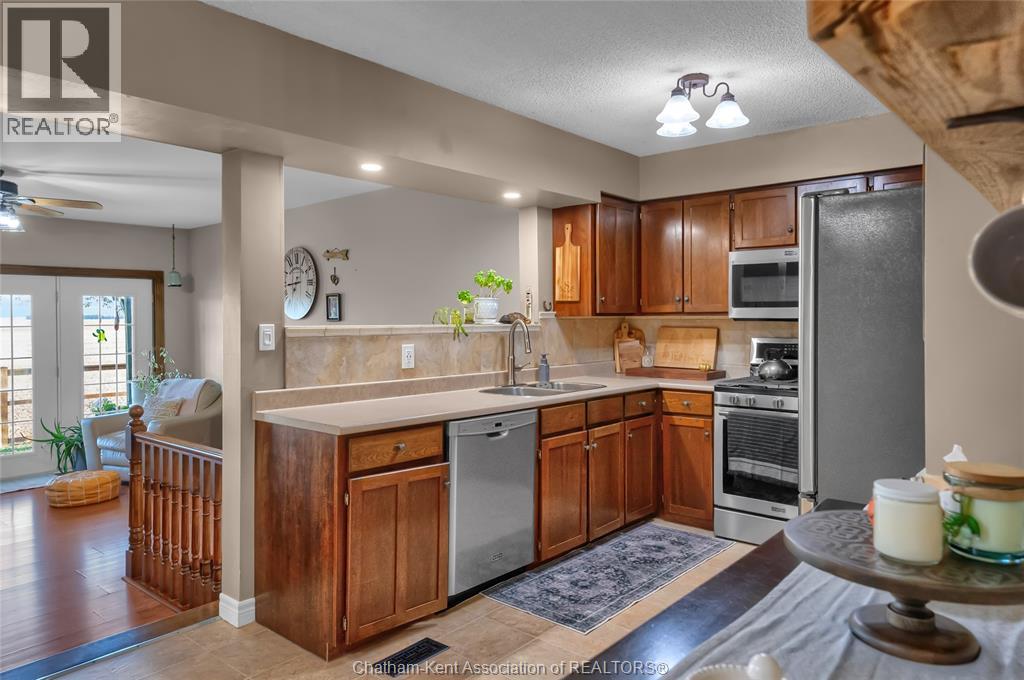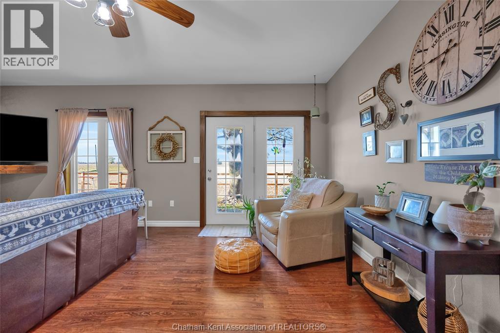 Welcome home to peaceful country living—just minutes from Chatham. This beautifully maintained ranch-style home is tucked into a small, quiet community and offers the ease of one-level living, with the added bonus of a basement that provides extra space if needed. Featuring 3 bedrooms and 2 bathrooms, including a spacious primary bedroom with its own ensuite bathroom, this home offers the perfect blend of comfort and convenience. Enjoy the warmth of the gas fireplace in the cozy living room, or step through the patio doors onto the covered outdoor deck—an ideal spot to unwind and take in the peaceful views of open fields and breathtaking sunsets, with no rear neighbour's in sight. A large, separate dining room offers plenty of space for family dinners and entertaining guests. The bright kitchen flows nicely through the main living areas, while the finished basement adds an additional family room and generous storage space. Located near walking paths and schools, this charming property offers a relaxing rural setting with easy access to all the amenities. A perfect place to call home—peaceful, practical, and full of charm. Book a showing today! (55239902)