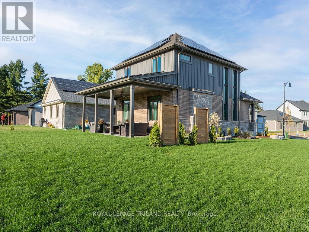 This Doug Tarry built NET ZERO, all electric home, will wow you with stunning craftsmanship & energy efficiency features including solar panels. A net zero home is a house that produces as much energy as it consumes on an annual basis. That means over the course of a year, the home's energy production equals or exceeds its energy consumption.At 2,123 sq.ft. this 2-storey home with completed lower level is designed with family in mind. The open concept main floor features a generous great room and dining area, and beautiful custom kitchen cabinetry and quartz countertops.The bold fireplace in the great room complements the modern but classic finishes. And step outside to the beautiful covered area complete with stamped concrete pad. The custom oak staircase with large windows leads you to the upper level, with 3 spacious bedrooms, 2 bathrooms and laundry closet. The basement is also finished with a full rec room and wet-bar perfect for entertaining plus another 3pc bathroom. All Appliances Included! No detail is overlooked in this former model. Doug Tarry is making it even easier to own your home. Reach out for more information regarding HOME BUYER'S PROMOTIONS!!! WELCOME HOME! (41925788)