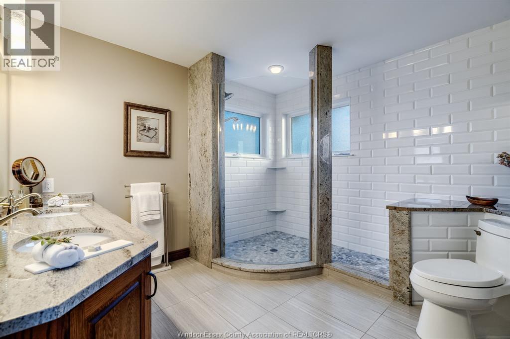 Beautifully maintained St. Clair Beach 2-storey executive home on a quiet cul-de-sac, offering 4+1 bedrooms, 3 full baths, and 2 half baths. Main level is ideal for both casual living or formal entertaining, featuring a gorgeous renovated kitchen (2011) that opens to a spacious dining area and family room with gas fireplace. Or for those special occasions, choose to entertain guests in your formal dining room. A convenient mud room with butler's pantry and powder room complements the main floor. The beautifully finished basement provides additional flexible living space, including wet bar and sauna. Upstairs, the expansive owner’s suite is a true retreat, showcasing impressive size, a second fireplace, a refined ensuite and large walk-in closet (2020). An elegant main bath (2016) and another powder room serves the additional bedrooms The second floor laundry allows for completing home tasks efficiently and effortlessly. Recent updates include roof and select windows (2023) and furnace/AC (2015). The property was professionally designed and installed by Garlatti Landscaping, featuring striking stonework and a bubbling rock feature. An entertainer's dream, the backyard boasts a large maintenance-free deck, hot tub (2024), and recessed 33’×18’ heated sports pool (2019). Ideally located near Beach Grove Golf Club and top-rated schools including Beacon Heights and St. André, this immaculately cared for home offers a rare opportunity to live in one of this areas most sought after neighbourhoods. (55240445)