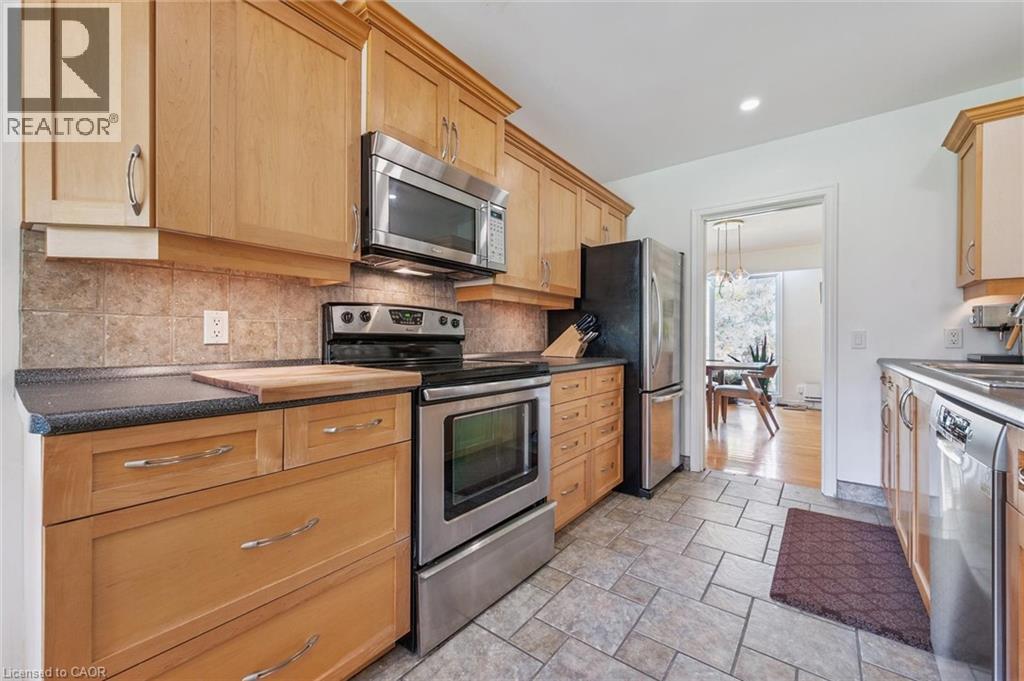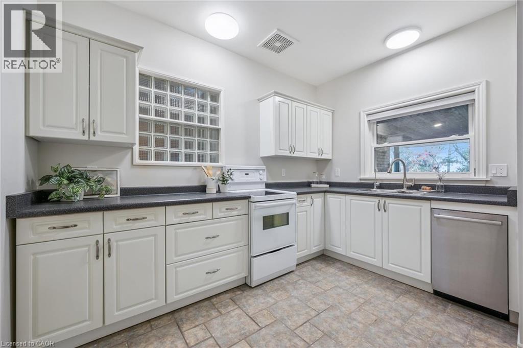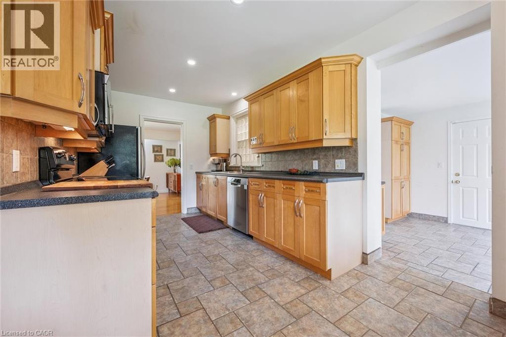Welcome to this spacious and truly unique bungalow in Guelph's highly desirable Old University neighbourhood. This property offers something rare - two homes in one, all above grade. Step through the front door into the main residence, featuring three bedrooms on the main floor and a versatile bonus room that can serve as a playroom, mudroom, or home office, conveniently located between the kitchen and the double-car garage. Original hardwood floors flow through most of the main level, complementing the large kitchen, expansive dining area, and a bright living room with floor-to-ceiling windows.The main home also includes a full basement, offering two additional bedrooms, another full bathroom, laundry facilities, and ample storage space. Now, let's talk about the second home. Added in 2002, this thoughtful addition created a beautiful main-floor apartment - perfect for in-laws, guests, or rental income. This bright, open-concept suite features one bedroom, a full bathroom, a spacious living and dining area with a gas fireplace, custom built-ins by Olympic Kitchens, a full kitchen, and its own laundry. Both homes share a lovely back deck overlooking a serene canopy of trees and established perennials. The backyard also features a powered and drywalled shed - ideal for a workshop or studio. With five bedrooms in the main house plus a one-bedroom suite, this property offers exceptional flexibility as a multi-generational home, investment property, or home with a dedicated office space. Parking is abundant, with space for two vehicles in the garage and six or more in the driveway. A rare opportunity in one of Guelph's most sought-after neighbourhoods - this is a property you'll want to see in person. (70037180)