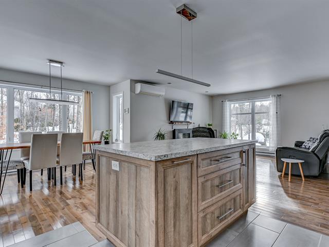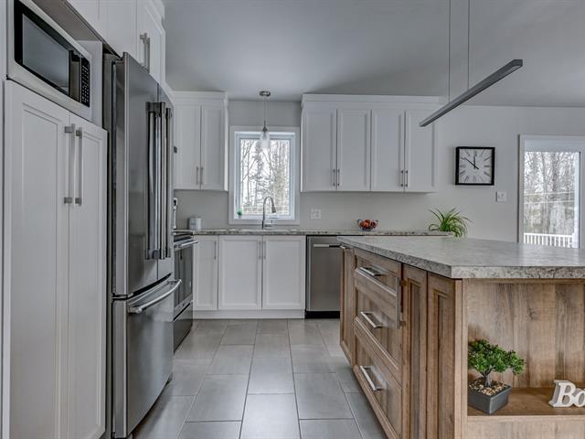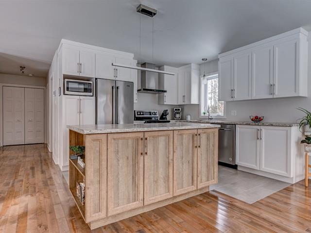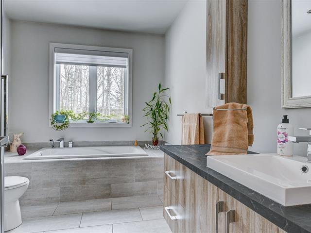 A MUST SEE! Large, bright single-story home with a beautiful double garage with mezzanine and a superb, intimate, perfectly landscaped backyard. Its larger size compared to competing properties and the addition of windows offering exceptional light are sure to charm you. The sole owners have built and maintained this property with great care. The master bedroom has a walk-in closet, the second bedroom on the ground floor is spacious, and there are two other bedrooms and a bathroom in the basement, *SEPARATE ENTRANCE TO THE BASEMENT. Wooded and sunny yard with above-ground pool. COME SEE! (46356793)