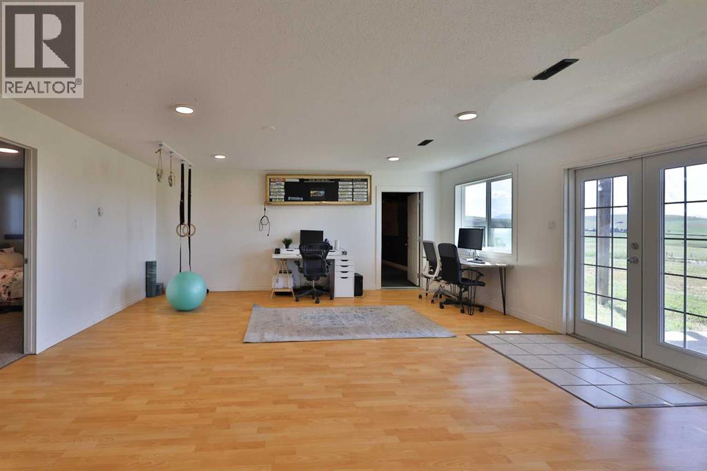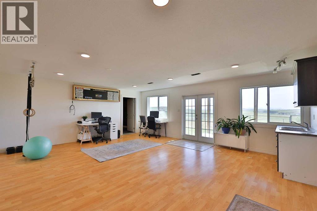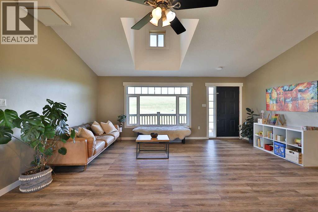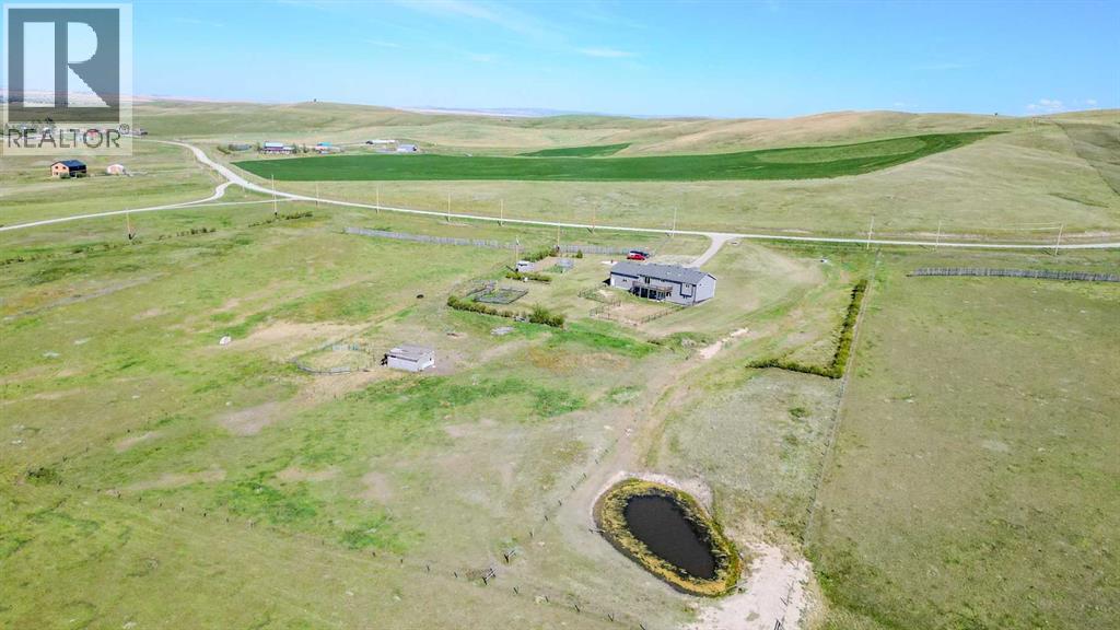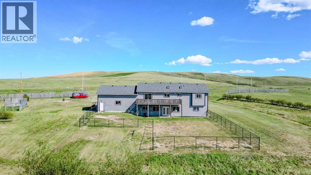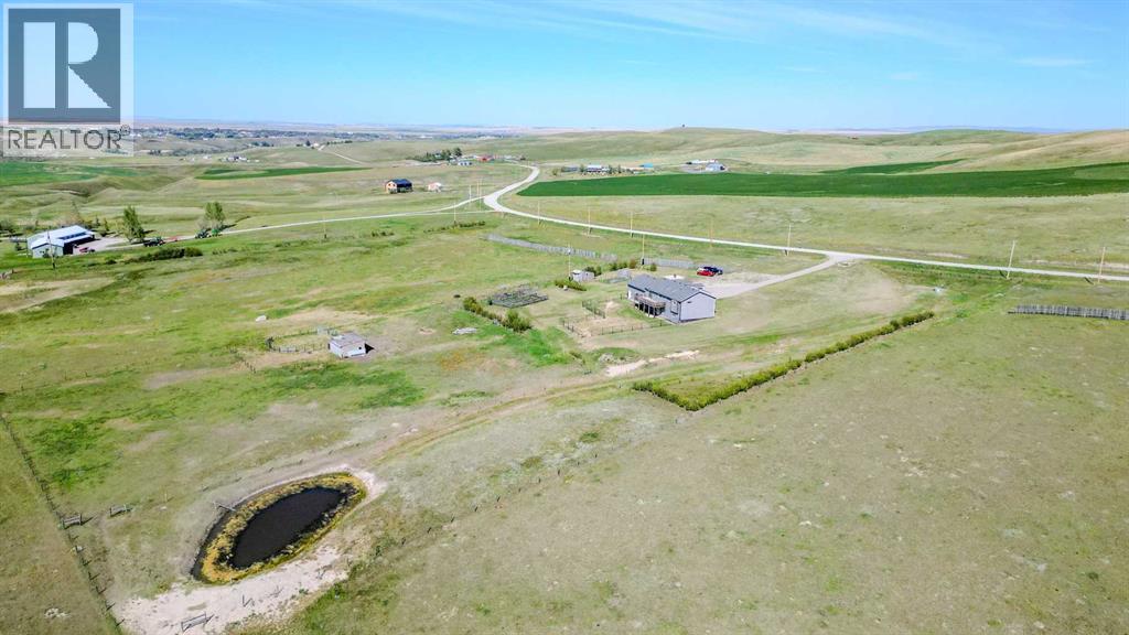 Wow—welcome to your own private retreat! This 5-bedroom, 3.5-bathroom bungalow sits on 10.01 acres and is loaded with features that make it stand out! Step inside and you’ll be greeted with vaulted ceilings, an open-concept floor plan, and tons of natural light! The kitchen flows seamlessly into the living space, creating the perfect spot for family hangouts or hosting friends.Movie night anyone? The walk-out basement is home to an incredible theatre setup that makes you feel like you’ve got your very own cinema—grab the popcorn and settle in for the big screen experience without ever leaving home! Add in a spacious game room, and you’ll quickly see how much fun this house is built for!Outside, you’ll find plenty of space to stretch out and enjoy country living. With a brand new dog fence just installed, your four-legged friends can run and play safely while you relax on the back deck and soak in one of the best views in all of Southern Alberta! The property also has room for horses, hobby animals, or simply enjoying the elbow room that acreage life provides.The home is serviced by a spring-fed cistern, giving you reliable water for the acreage lifestyle. Pair that with in-floor heating, a large attached garage, and endless outdoor potential, and this property truly checks all the boxes!This isn’t just a house—it’s a lifestyle waiting for its next chapter! Don’t let it slip away! (31515326)